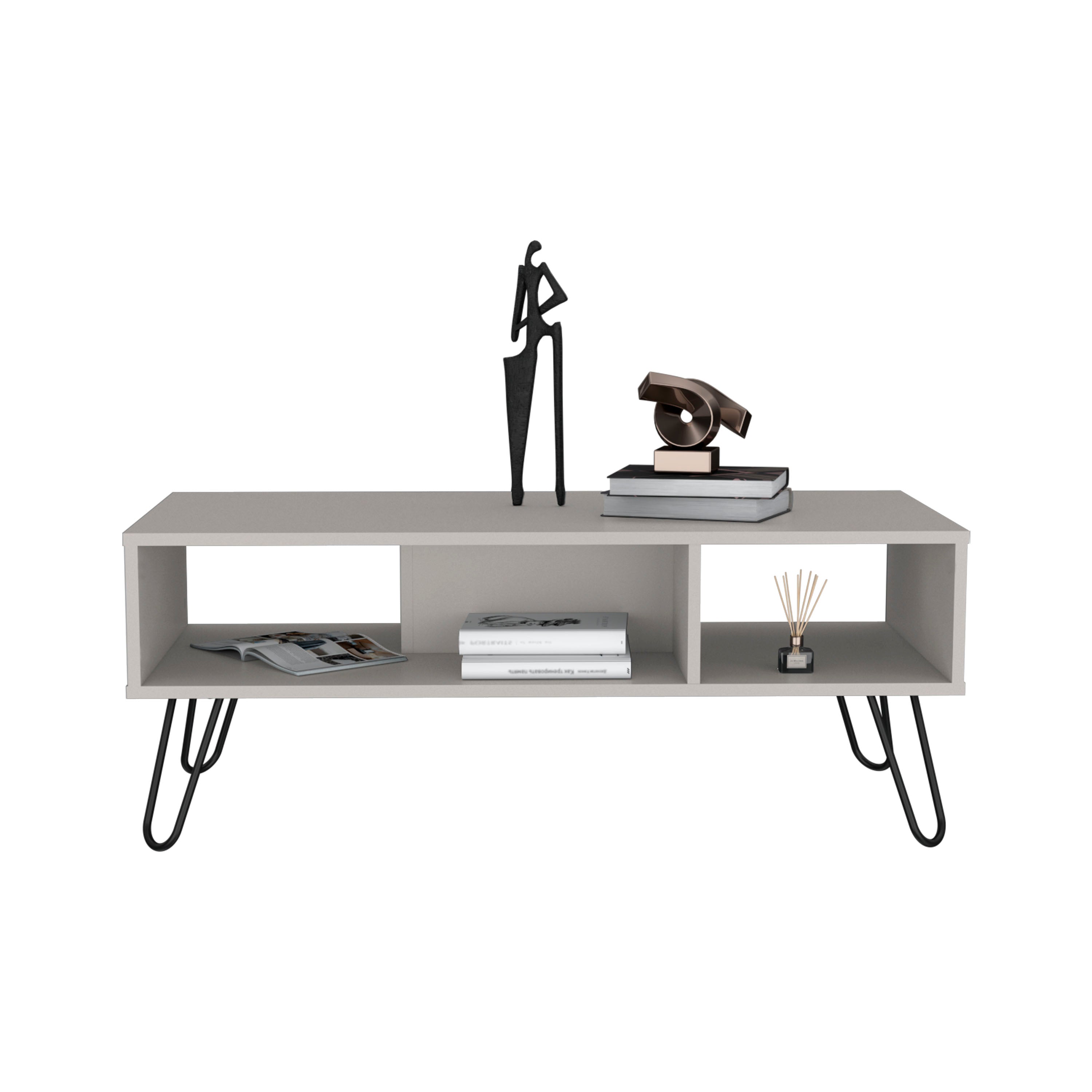 Elevate your living space with this modern, minimalist coffee table that pairs sleek hairpin legs with a clean white finish for a fresh, airy look. Designed for both style and function, it offers ample display and storage space across two open shelves, making it perfect for living rooms, family rooms, or office lounges.