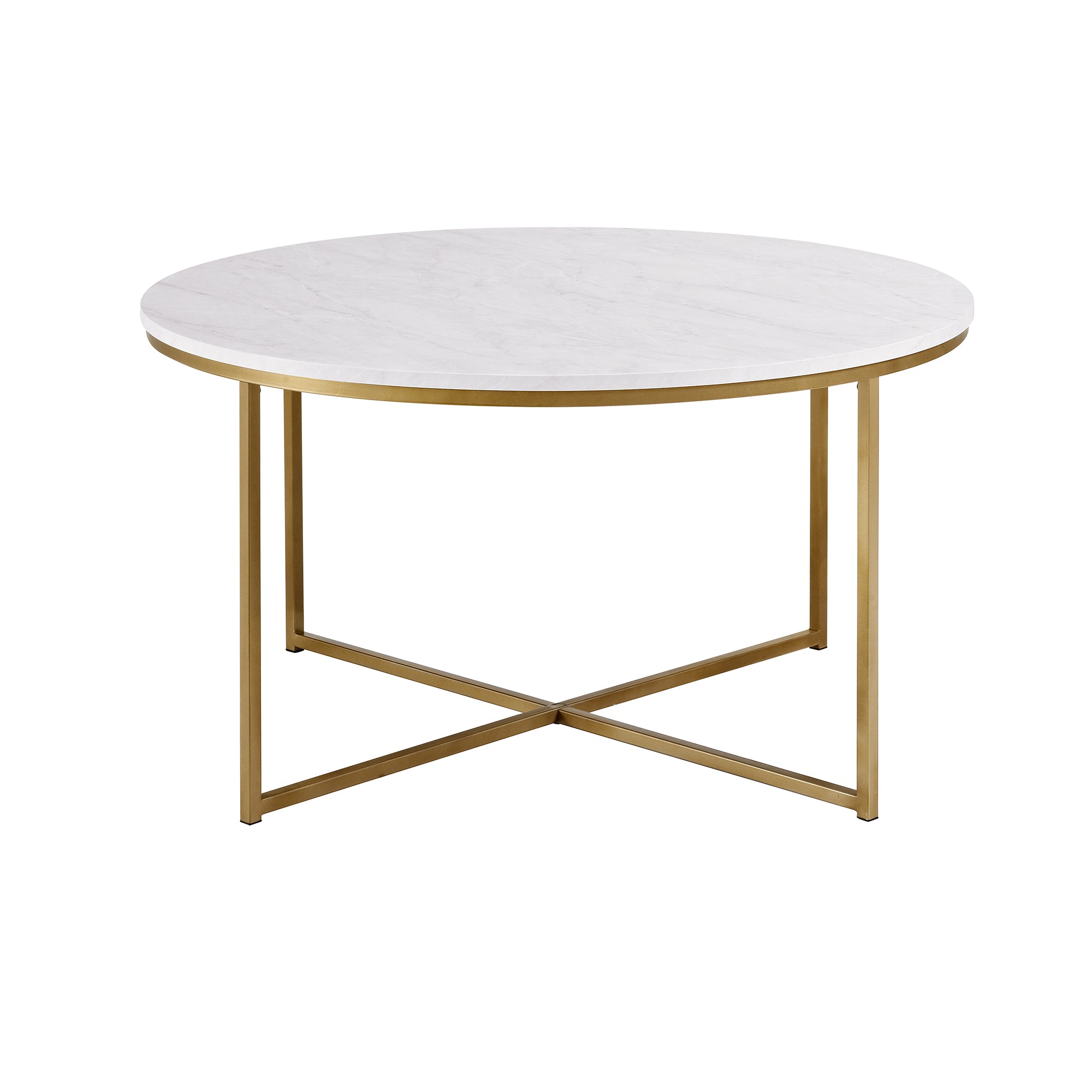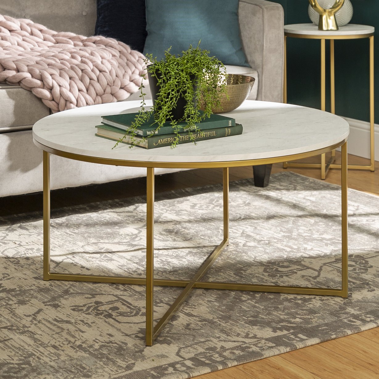 Elevate your living space with a modern-glam coffee table that blends luxe materials and sleek design. The round faux marble top and sculptural X-base create a striking focal point that complements mid-century and contemporary interiors, while a durable metal frame ensures everyday stability and longevity. Easy to assemble and easy to style, this table brings refined charm to your lounge, entryway, or reception area.