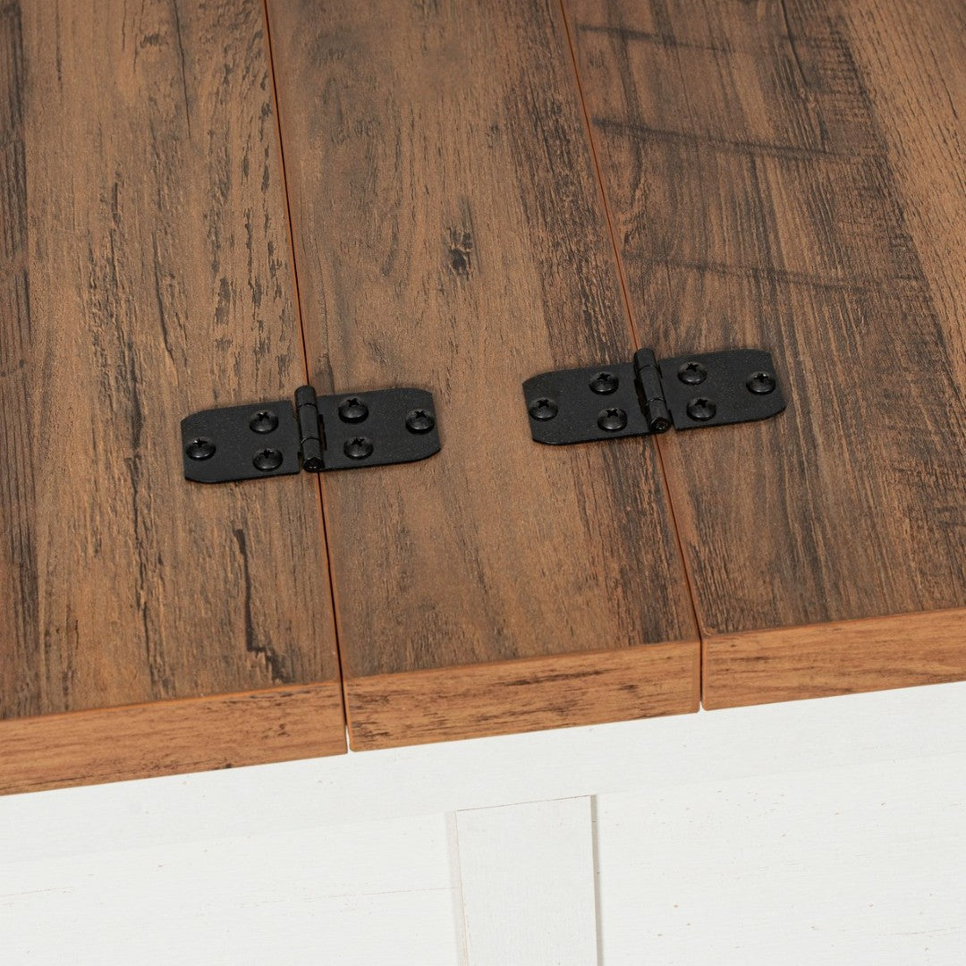 - Durable Construction: Engineered wood frame with solid wood feet and metal corner accents for long-lasting stability and farmhouse character.