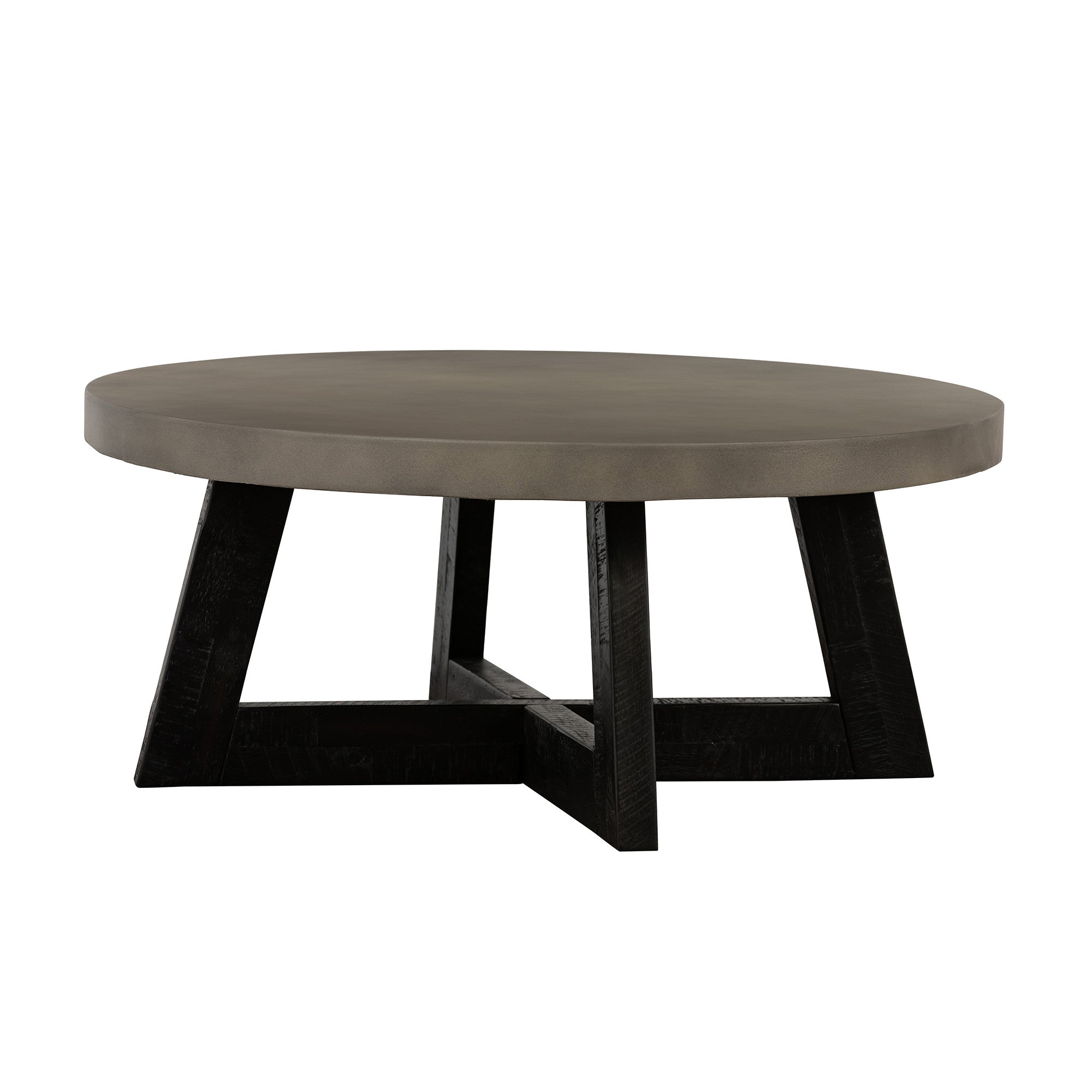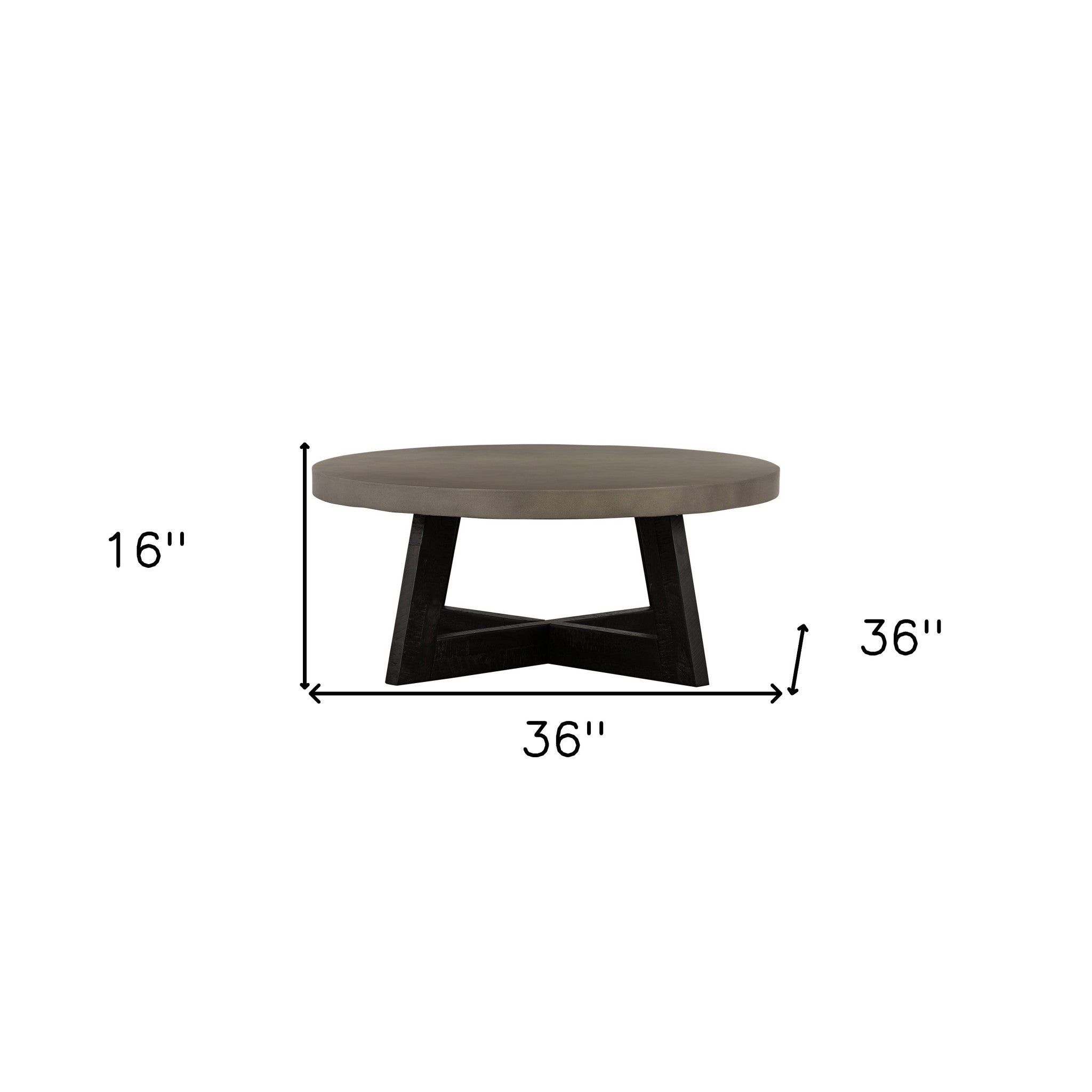 - Stylish coffee table with a gray concrete top and a sleek black solid wood base.