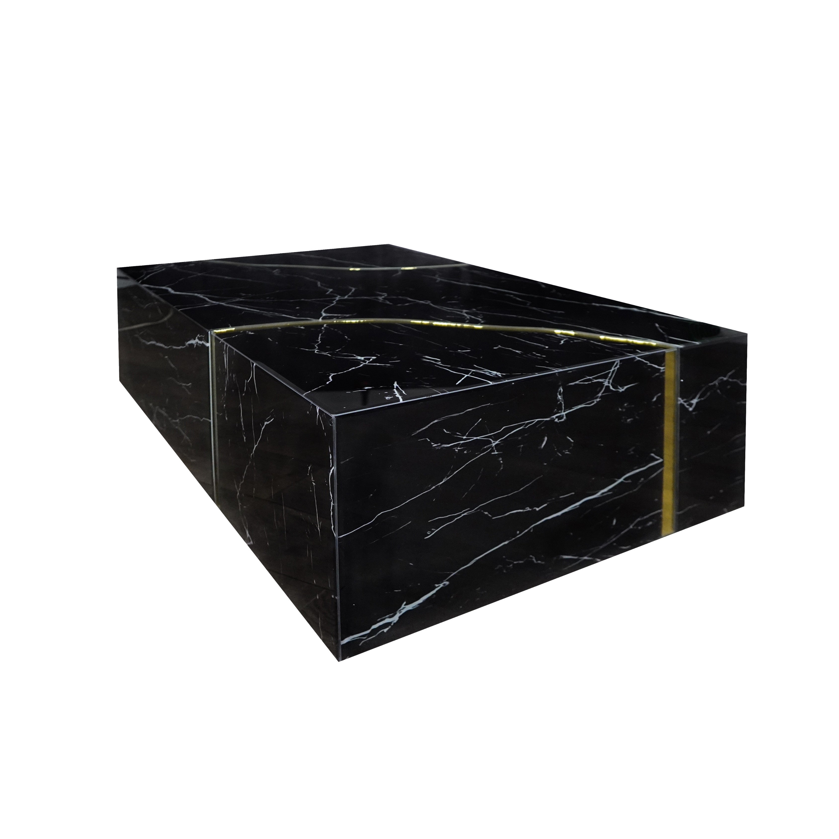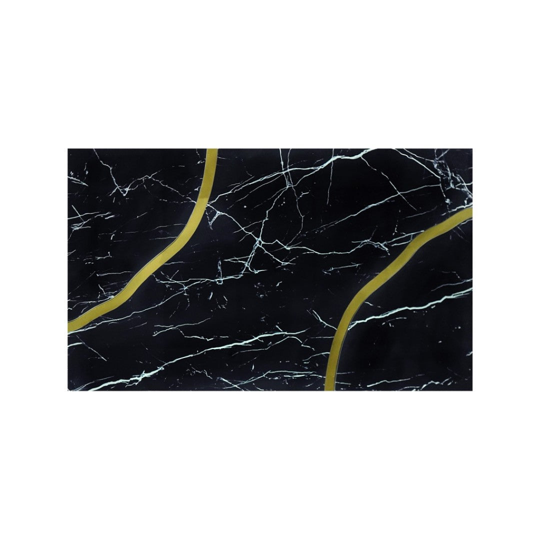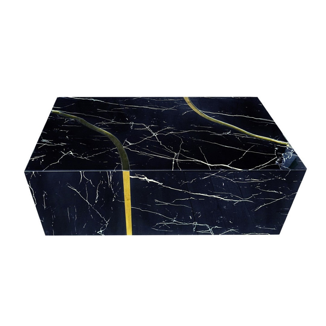 - This contemporary table features a sleek all over black that is accented by gold and features a marbleized look.