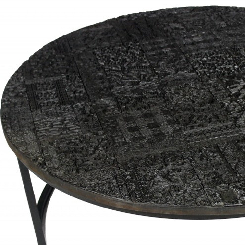 - The large table has a purposefully distressed and textured etched top surface and small table has a flat solid color surface.