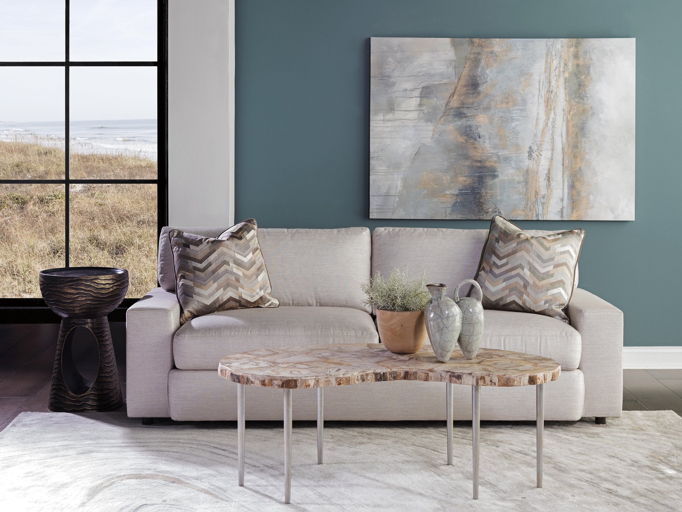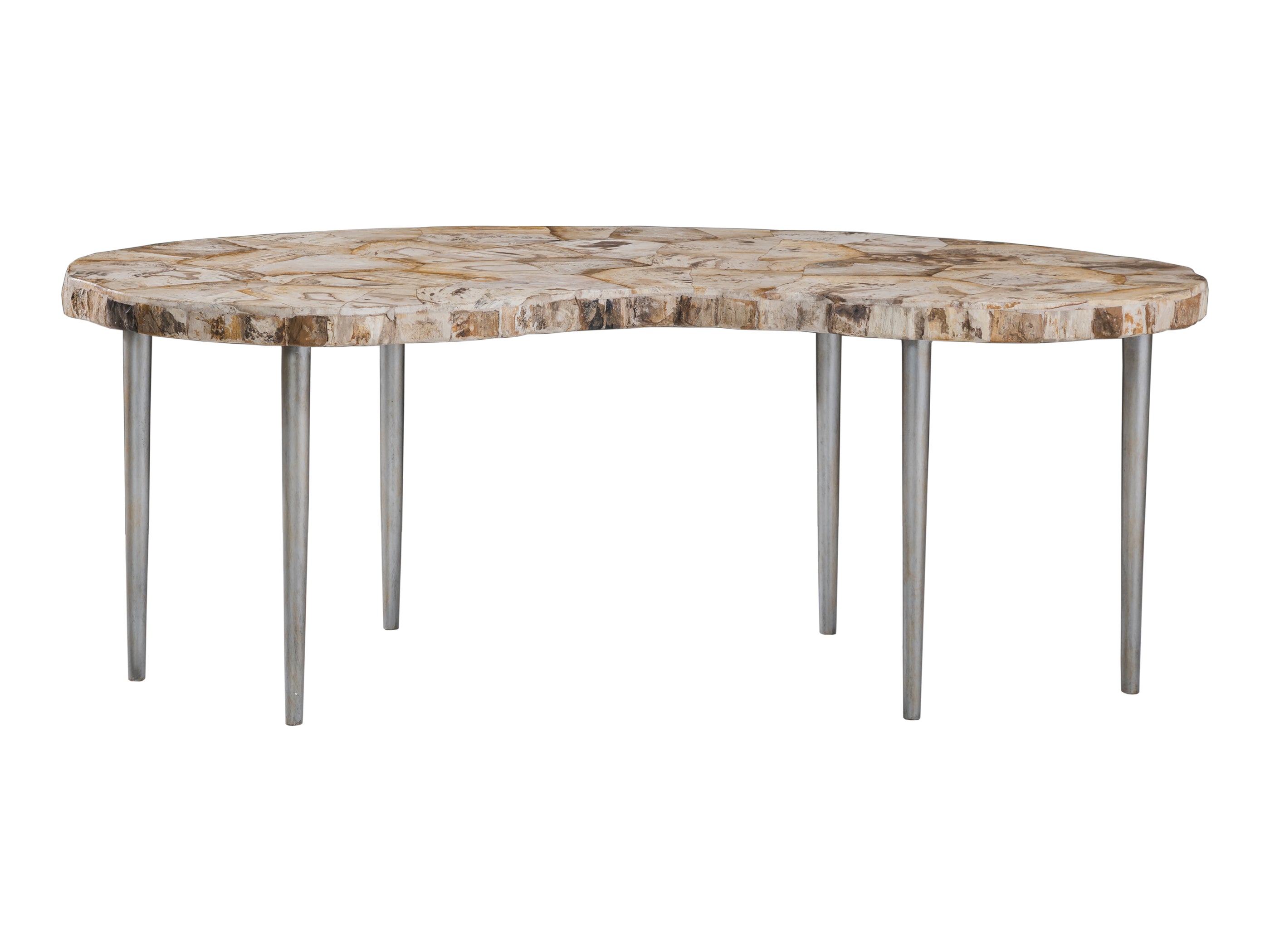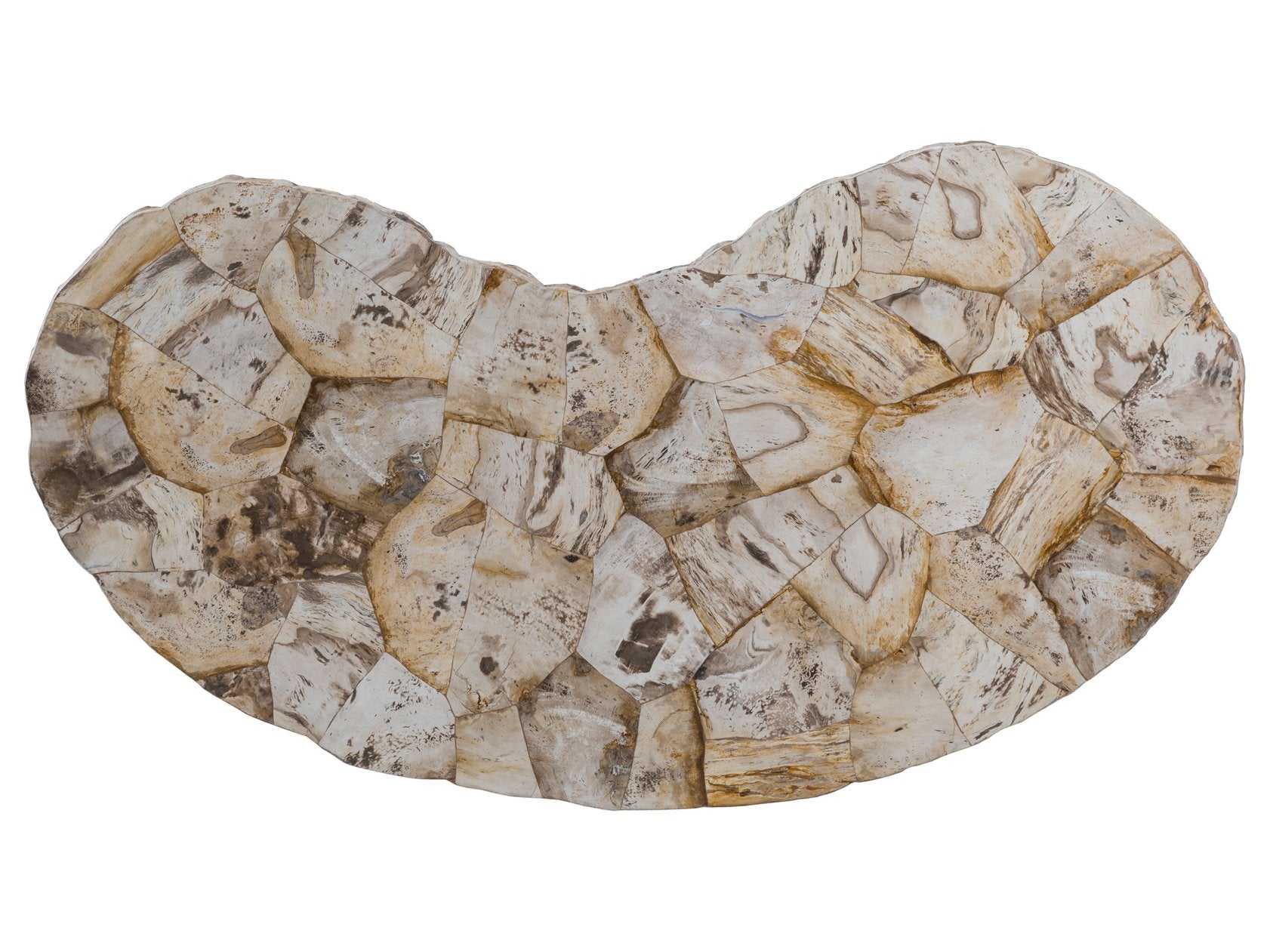 - Inlaid petrified wood top, showcasing one-of-a-kind patterns and textures