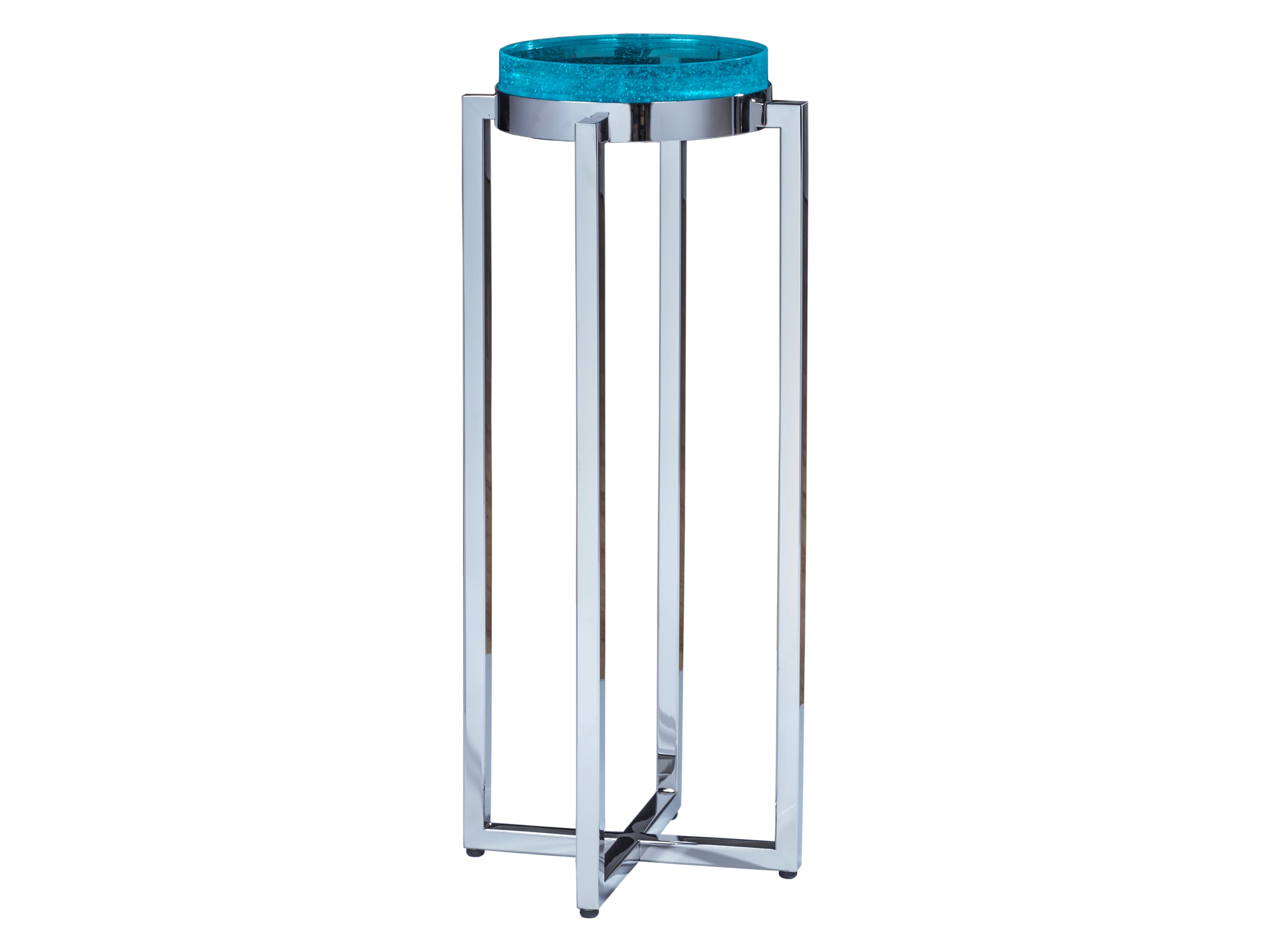 - Unique light sky blue bubble art glass top, individually cast for distinct coloration and patterns