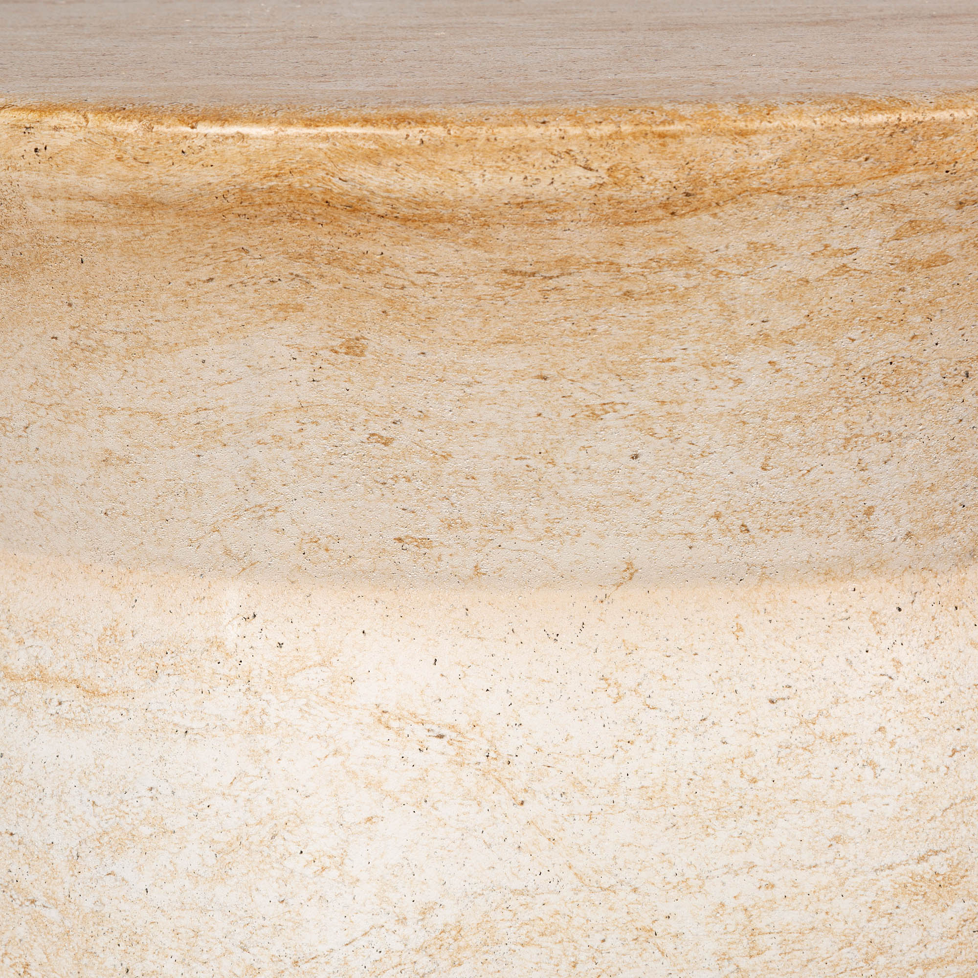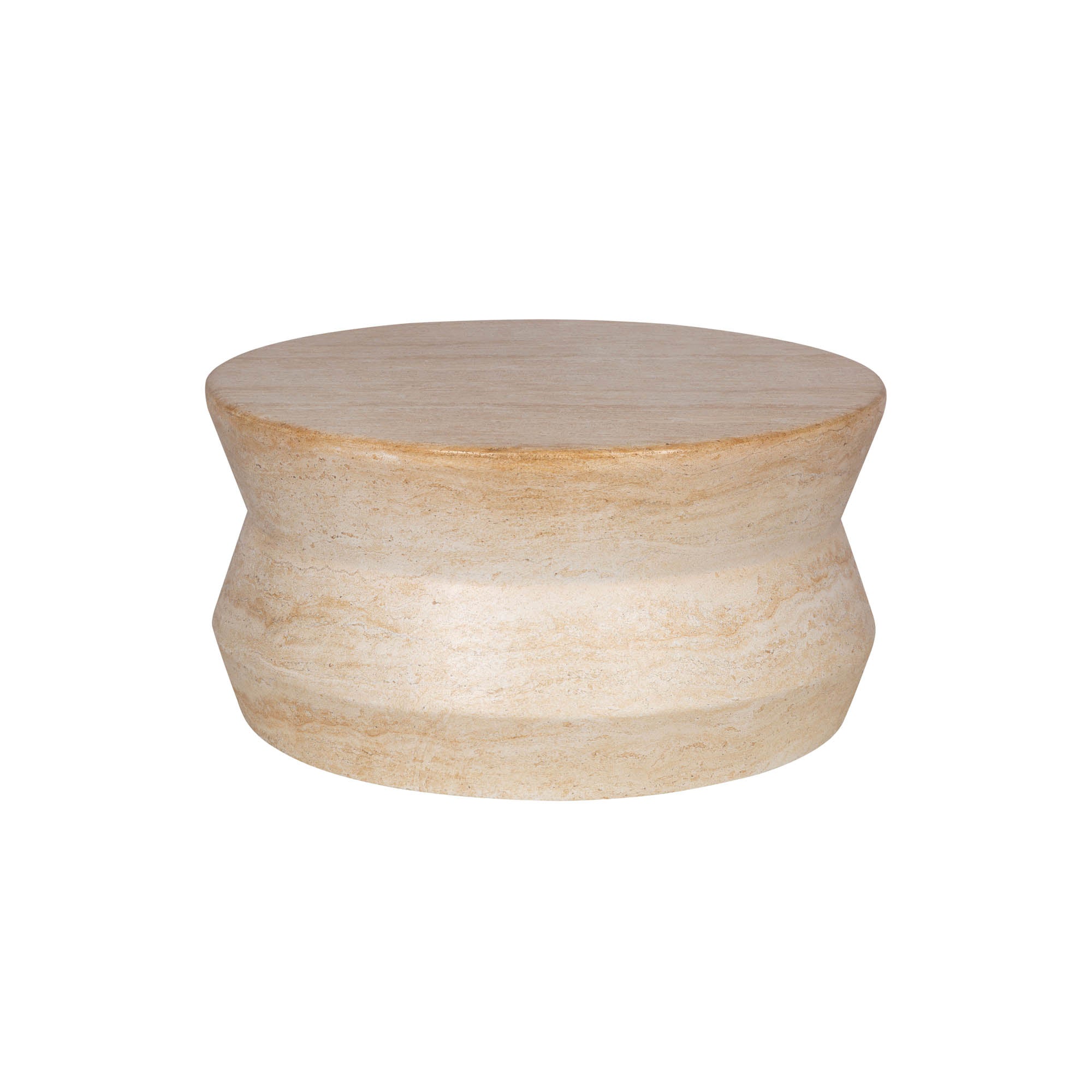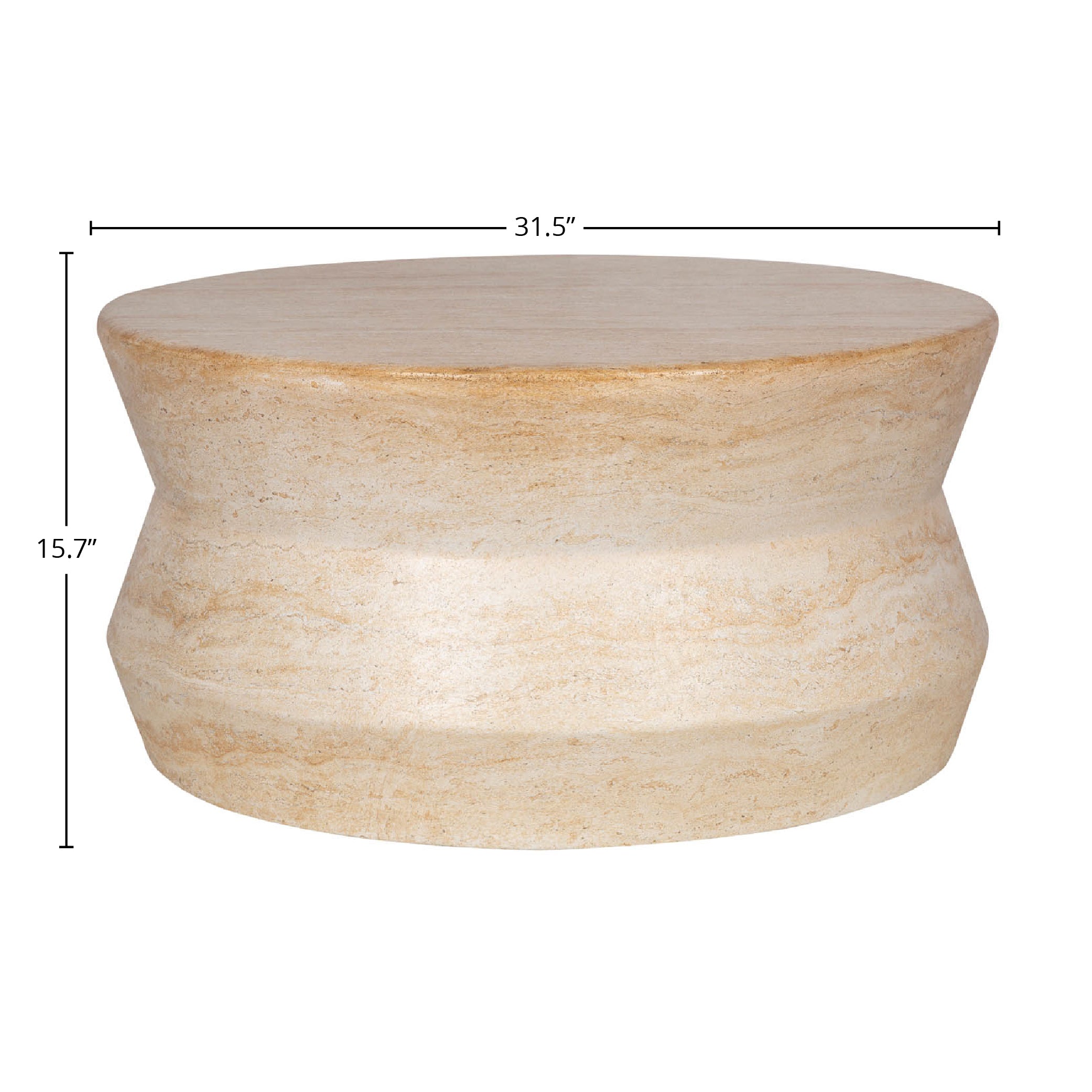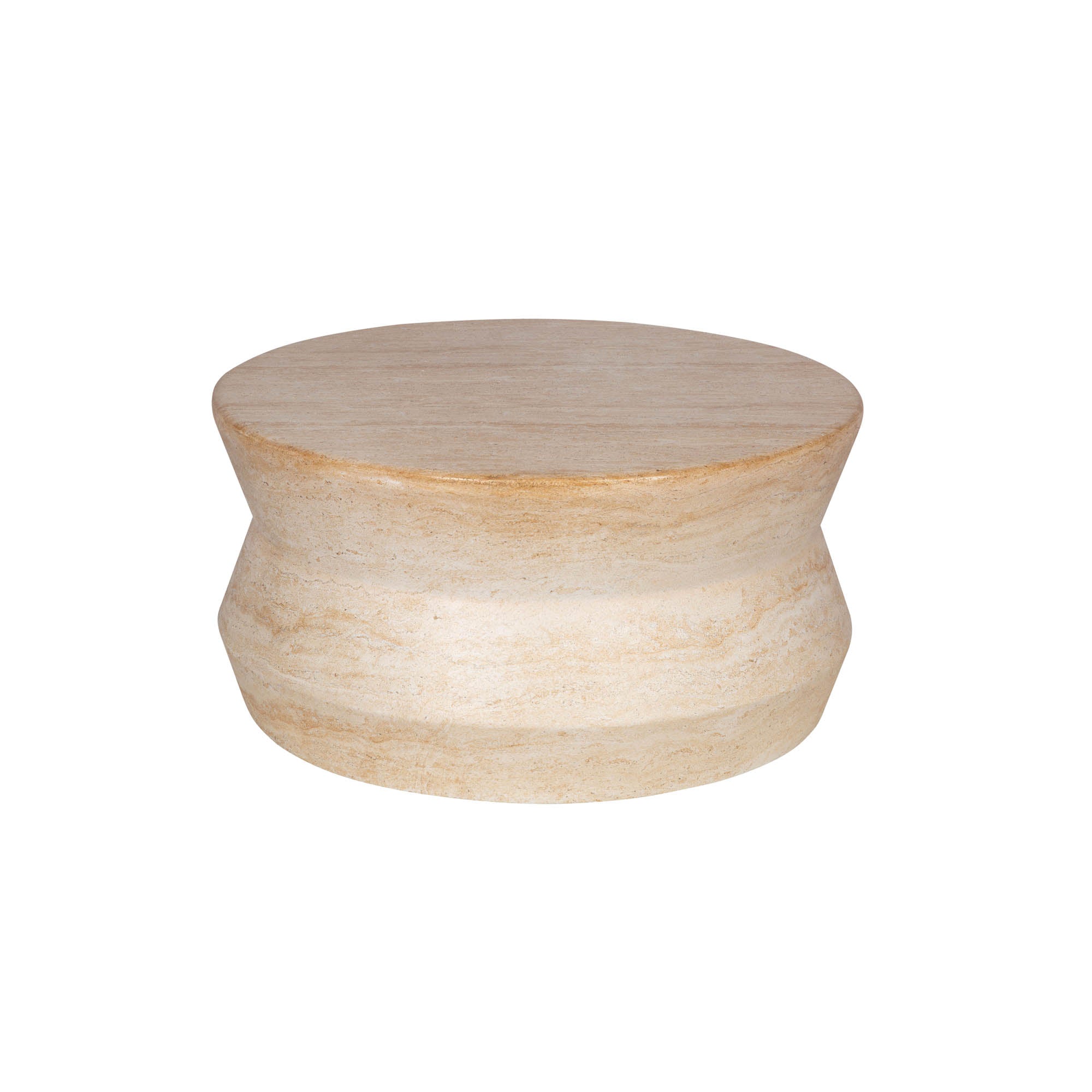 - The travertine finish lends a serene and calming aura to the coffee table.