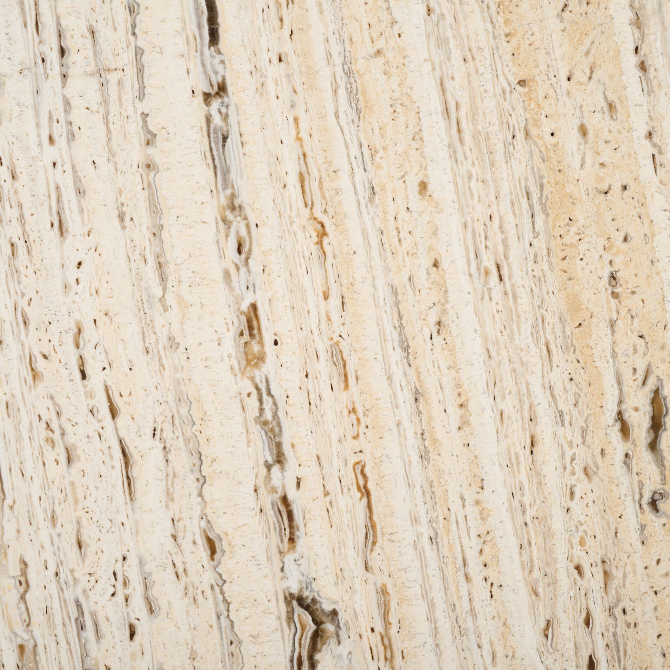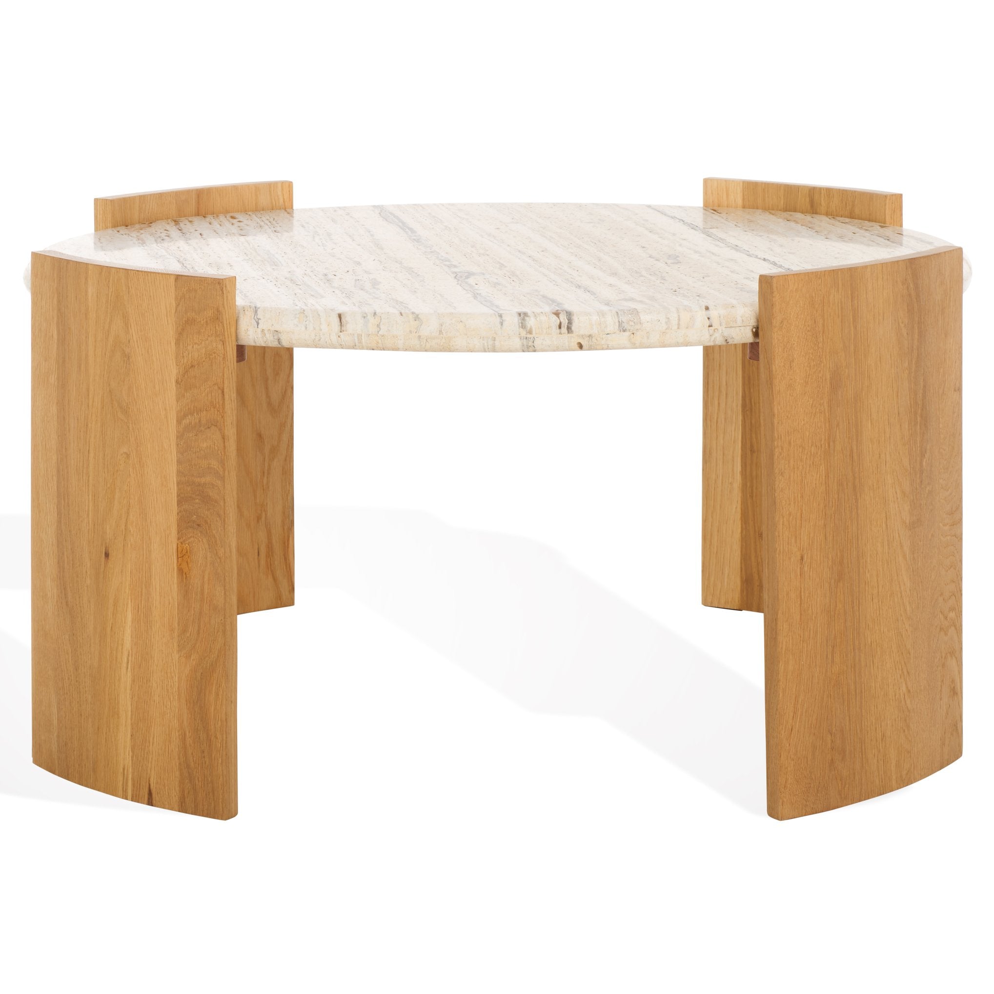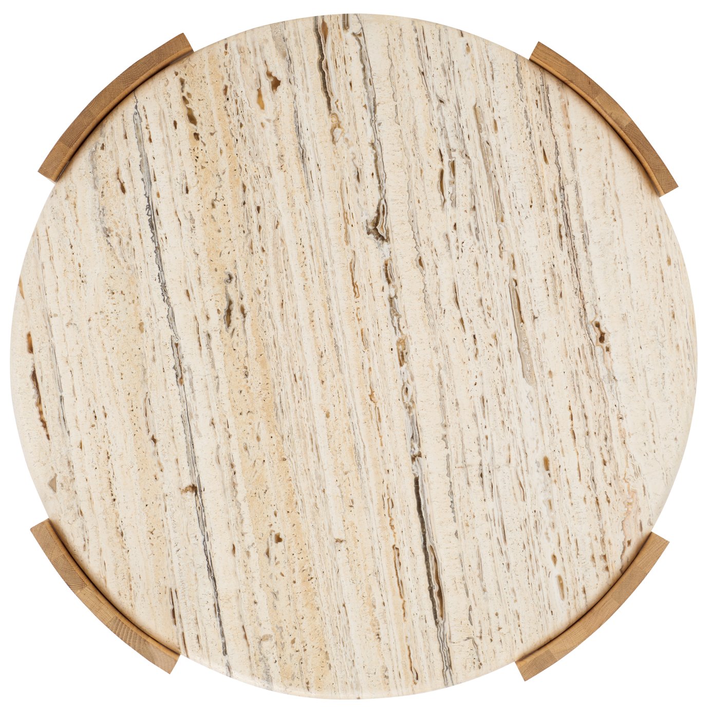 - Striking natural travertine top that adds a touch of elegance
