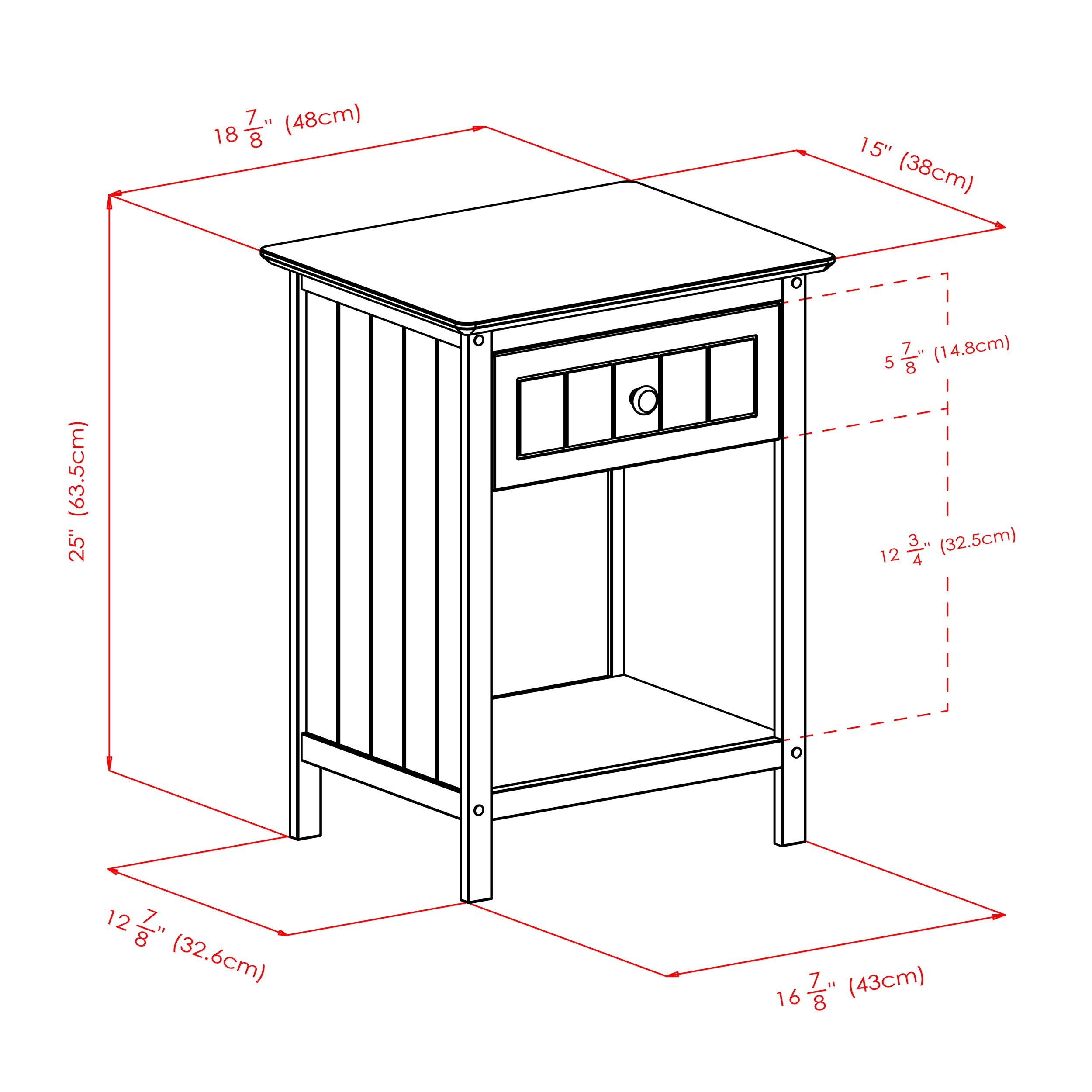 Add a little country-cottage feel to your living room, bedroom, or home office with the Blair Accent Table. The wainscoting side panels provide a warm and casual look to this all-around end table, while the large drawer and open cabinet offer plenty of storage possibilities. Made of Solid and Composite Wood in a rich Coffee finish.