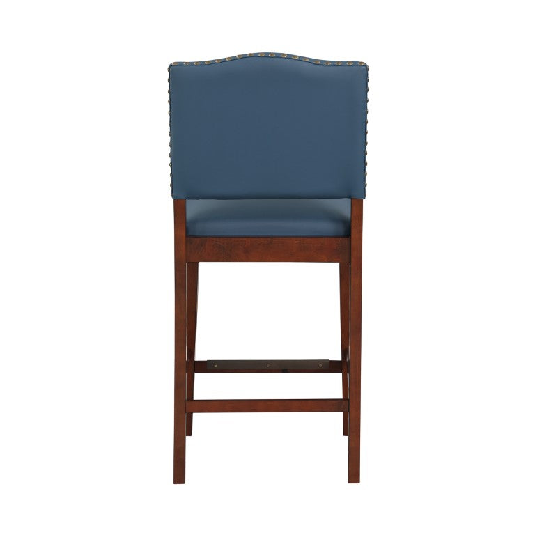 - Color/Finish: Blue Faux Leather / Warm Espresso Base