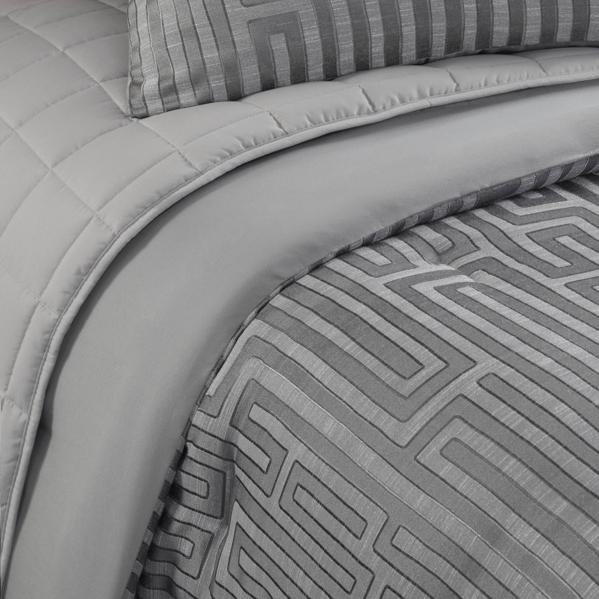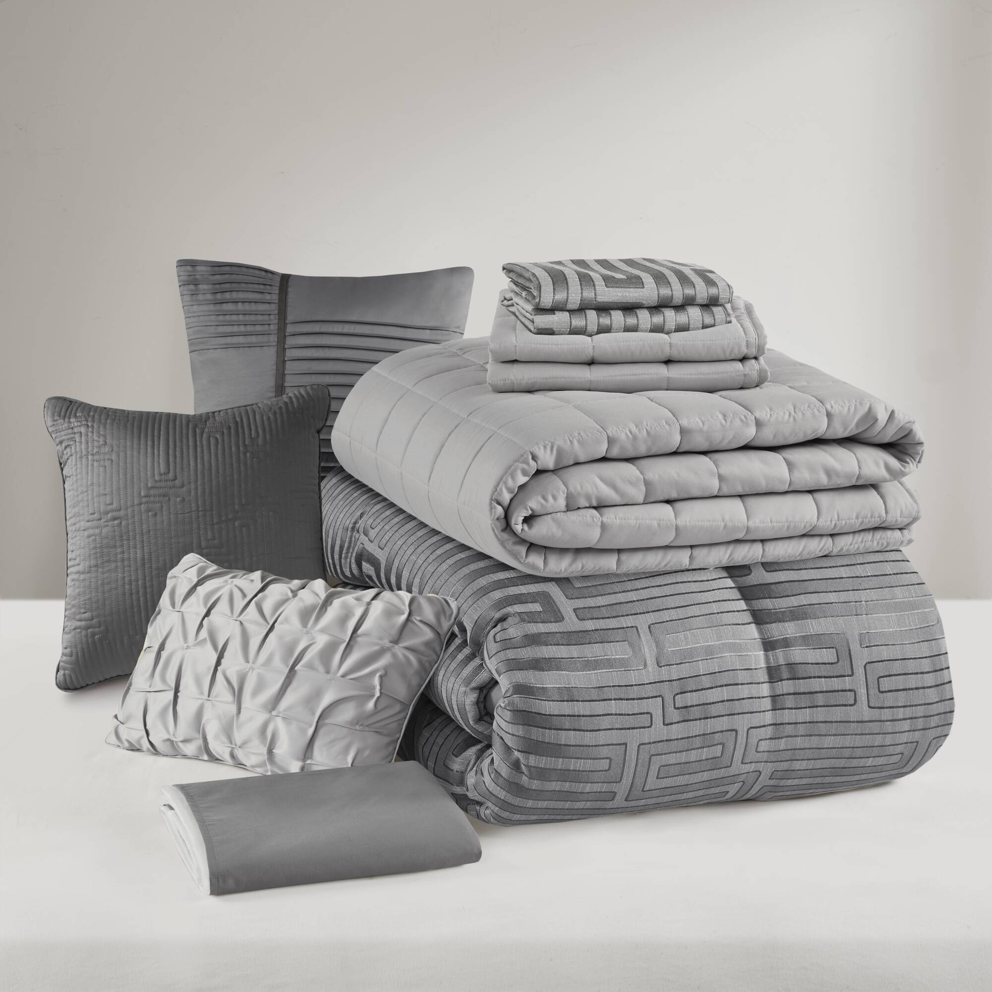 Elevate your bedroom with this 10-piece Queen luxury jacquard comforter set in a refined grey. Combining elegant jacquard texture, soft microfiber backing, and coordinating decorative pillows and quilted accents, this ensemble delivers a cohesive, hotel-quality look while providing cozy warmth and year-round comfort.