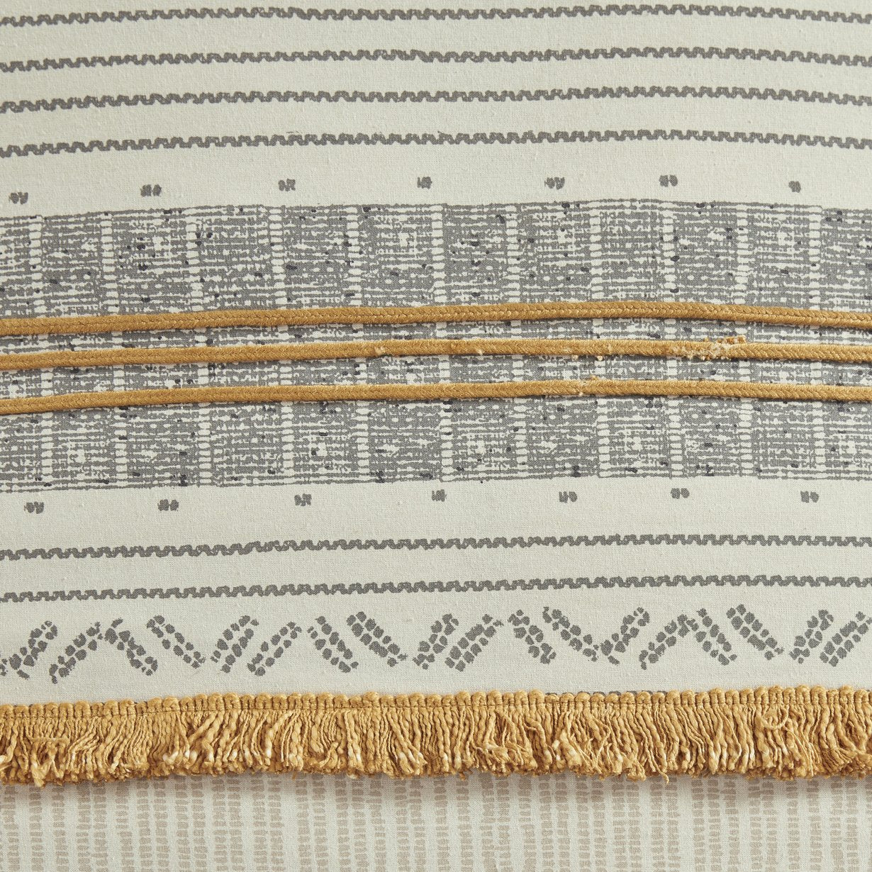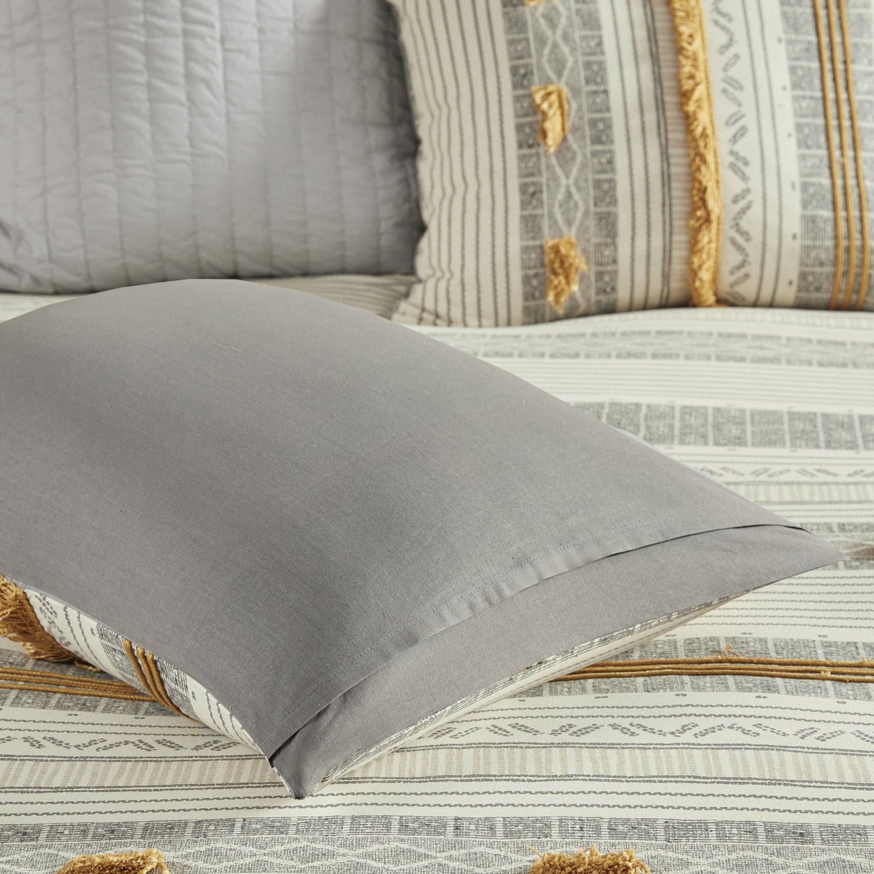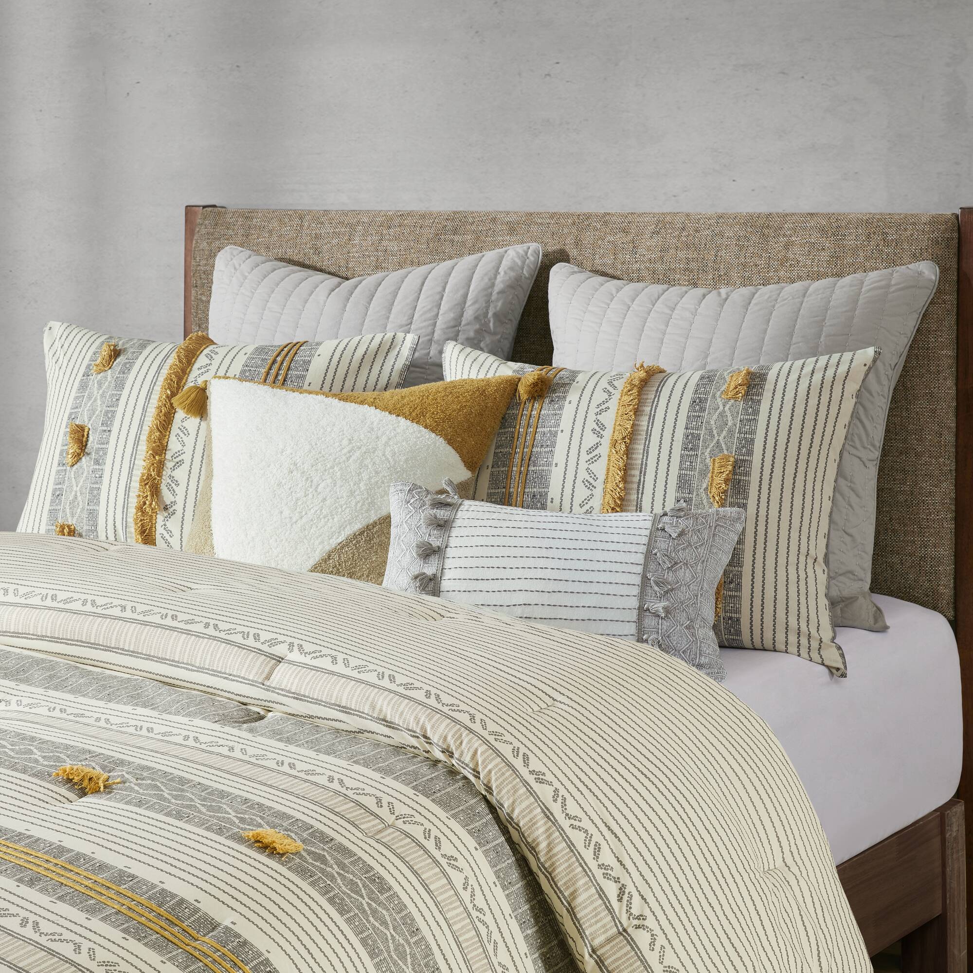 Bring fresh, casual sophistication to your bedroom with the INK+IVY Cody 3-Piece Cotton Comforter Set. Featuring a modern grey and yellow striped print with playful pompom and trim accents, this set blends cozy comfort with refined detailing—hidden bar tacks create a neat, duvet-like finish while a solid grey reverse offers versatile styling. OEKO-TEX certification ensures the materials are free from harmful substances, so you can rest easy in both style and safety.