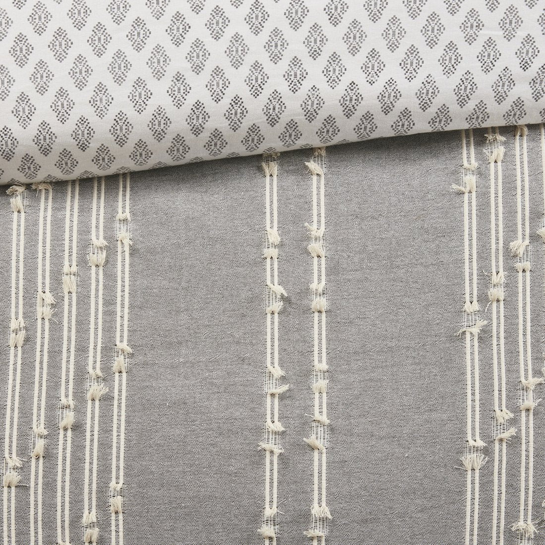 - Design details: Jacquard striped face with an ivory diamond print on a light grey reverse; hidden bar tacking across the top for a clean, duvet-like appearance
