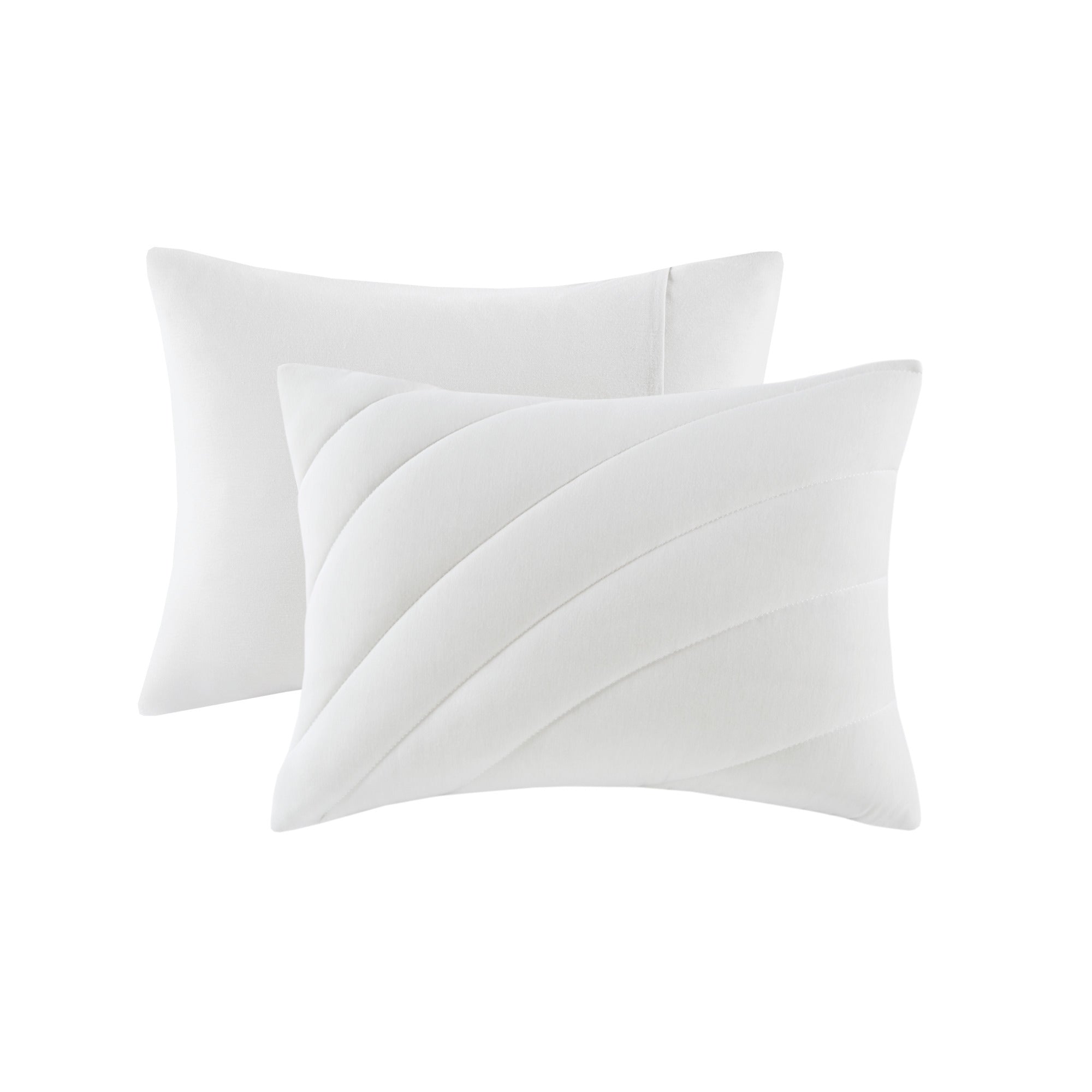 Elevate your bedroom with this soft, breathable poly jersey comforter set designed for King and California King beds. The lightweight, sewn-through construction provides consistent loft and a smooth drape, while antimicrobial treatment helps keep your bedding fresh. The crisp white finish offers a clean, versatile look that complements a wide range of decor styles.