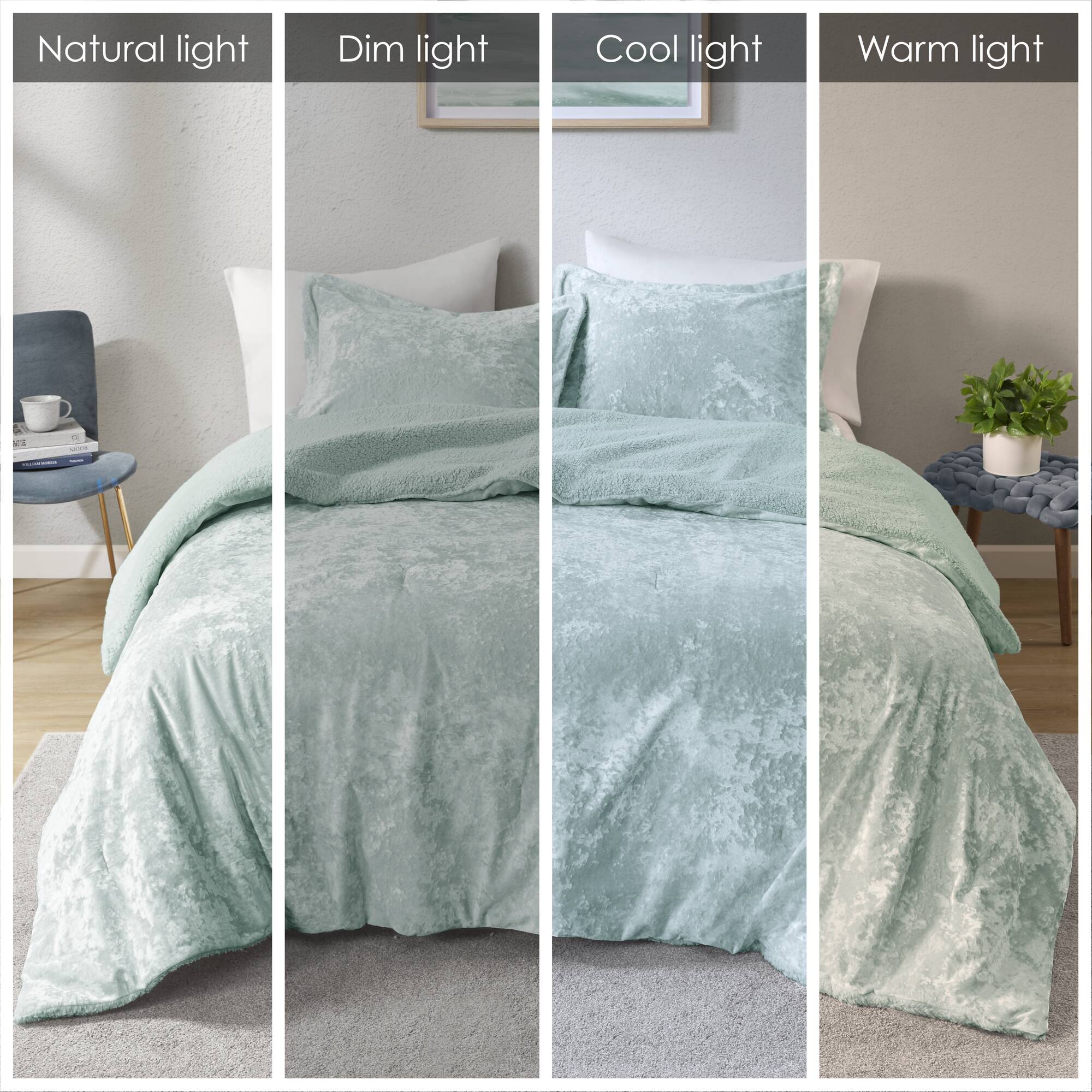 - Materials: Crushed velvet face for a soft, elegant finish; sherpa back for extra warmth and texture