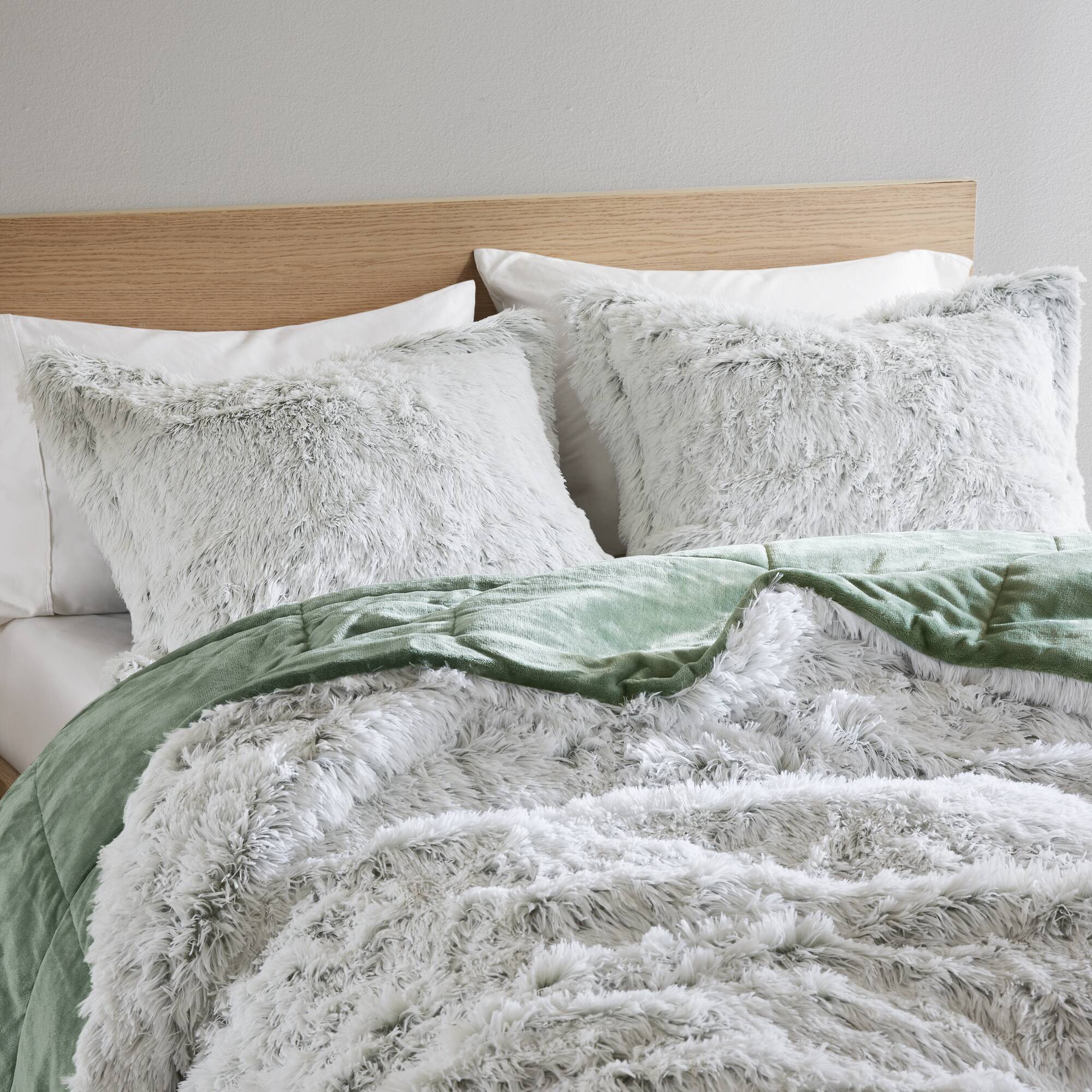 Wrap your bedroom in sumptuous texture and modern style with this 3-piece King/Cal King shaggy faux fur comforter mini set. Designed for both comfort and visual impact, the reversible comforter pairs a lush long-pile faux fur face with a soft plush reverse, while matching shams complete the coordinated look. Ideal for creating a cozy, luxe atmosphere in master suites and guest rooms alike.