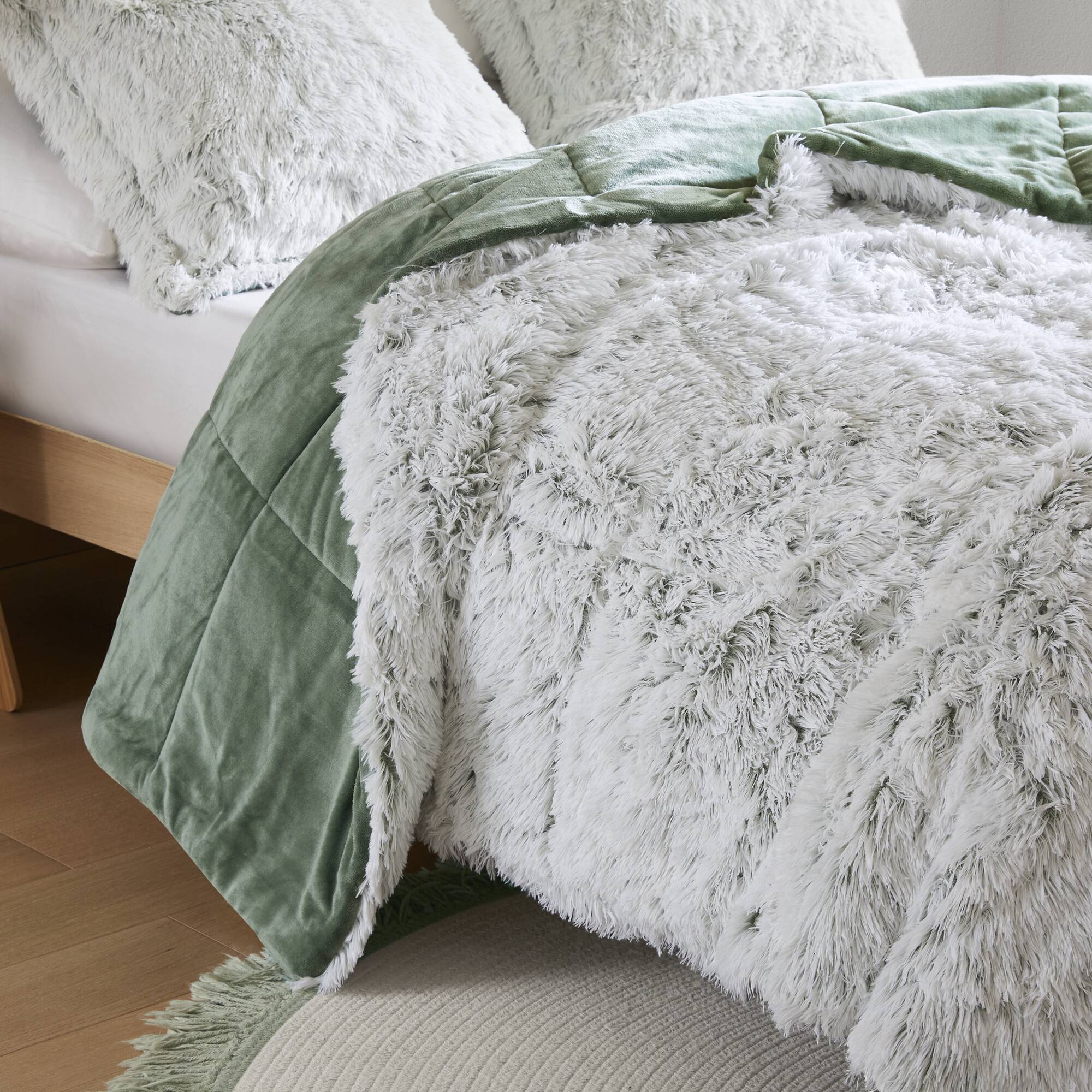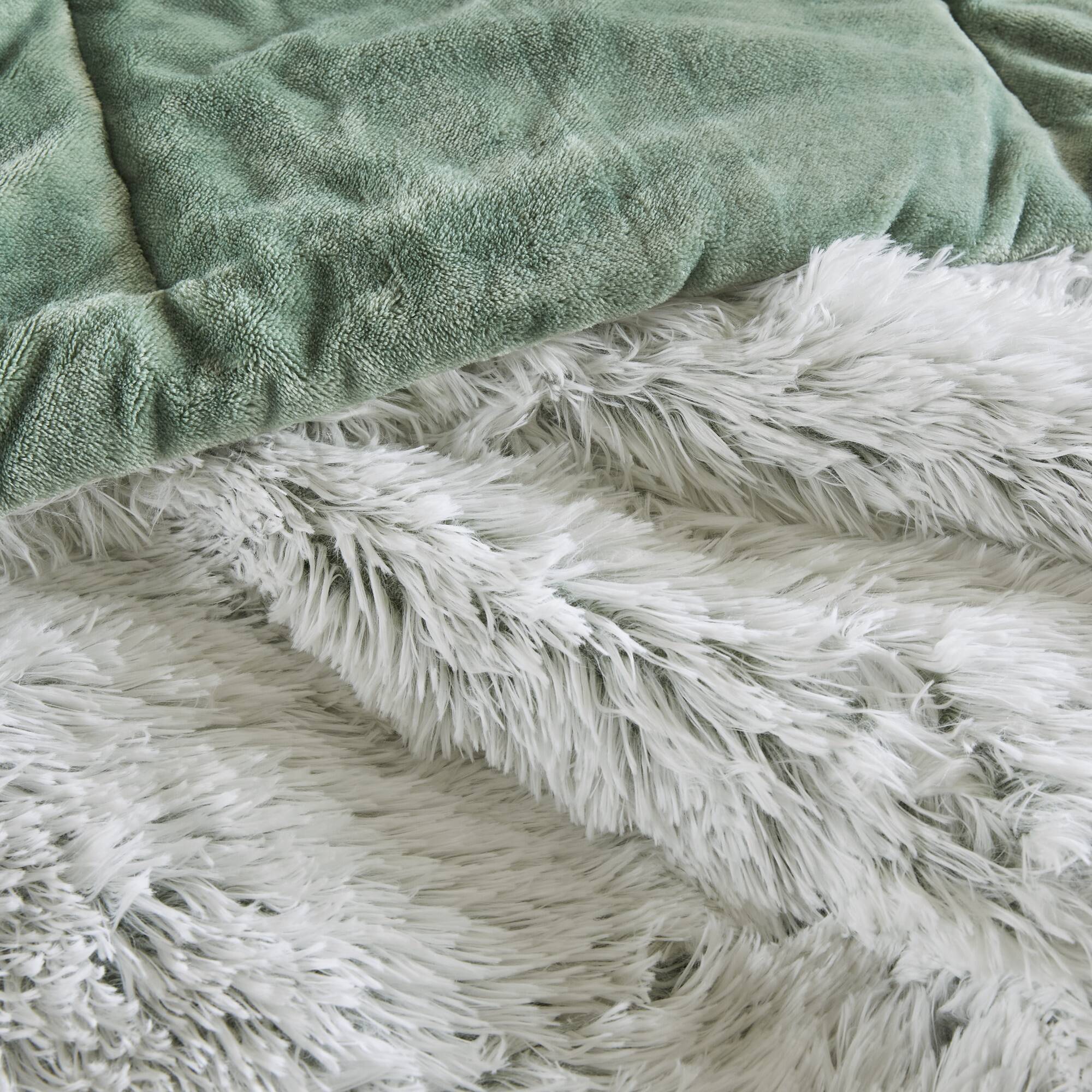 - Reversible design: Plush long-shaggy faux fur face (green/white) with a soft 100% polyester plush reverse for two distinct looks