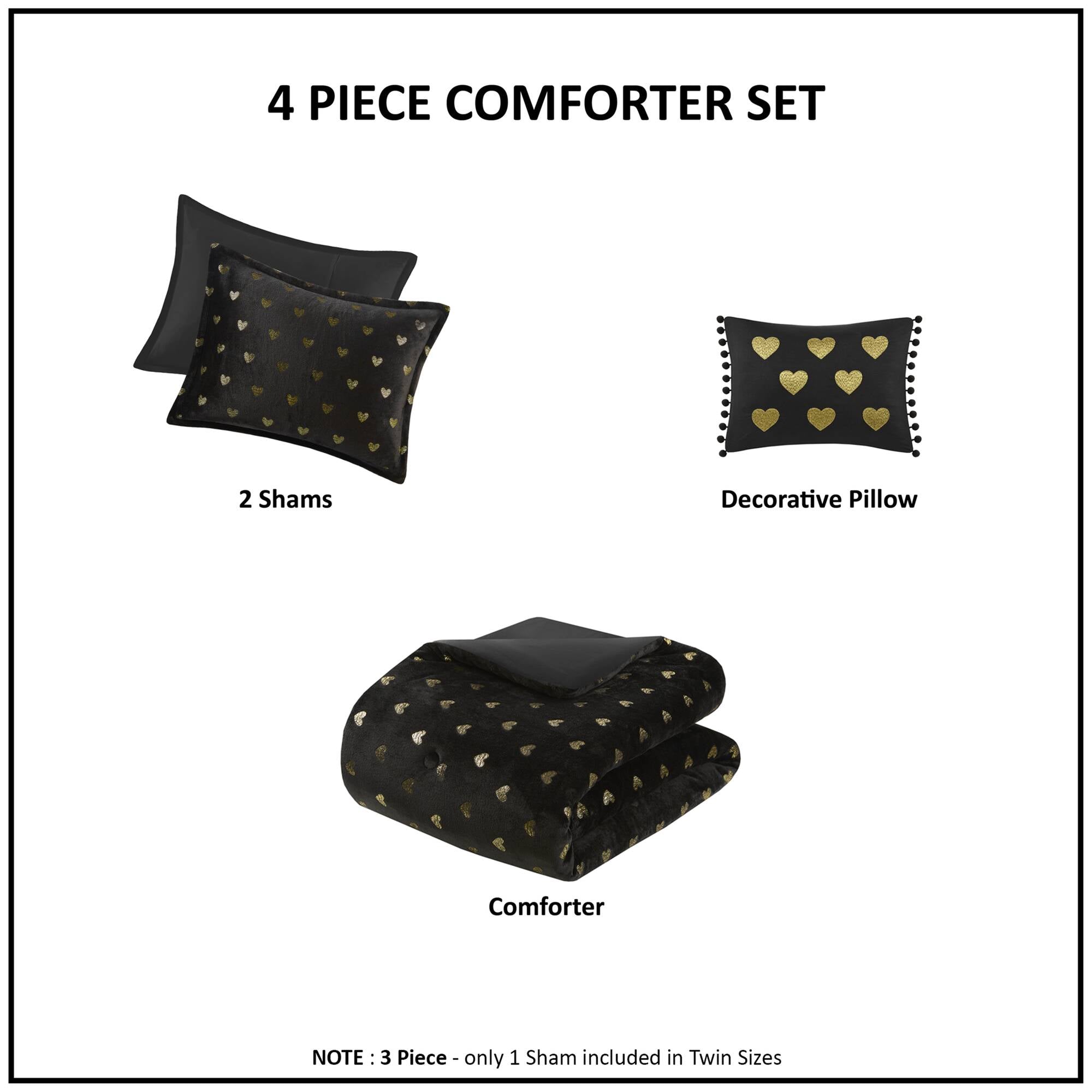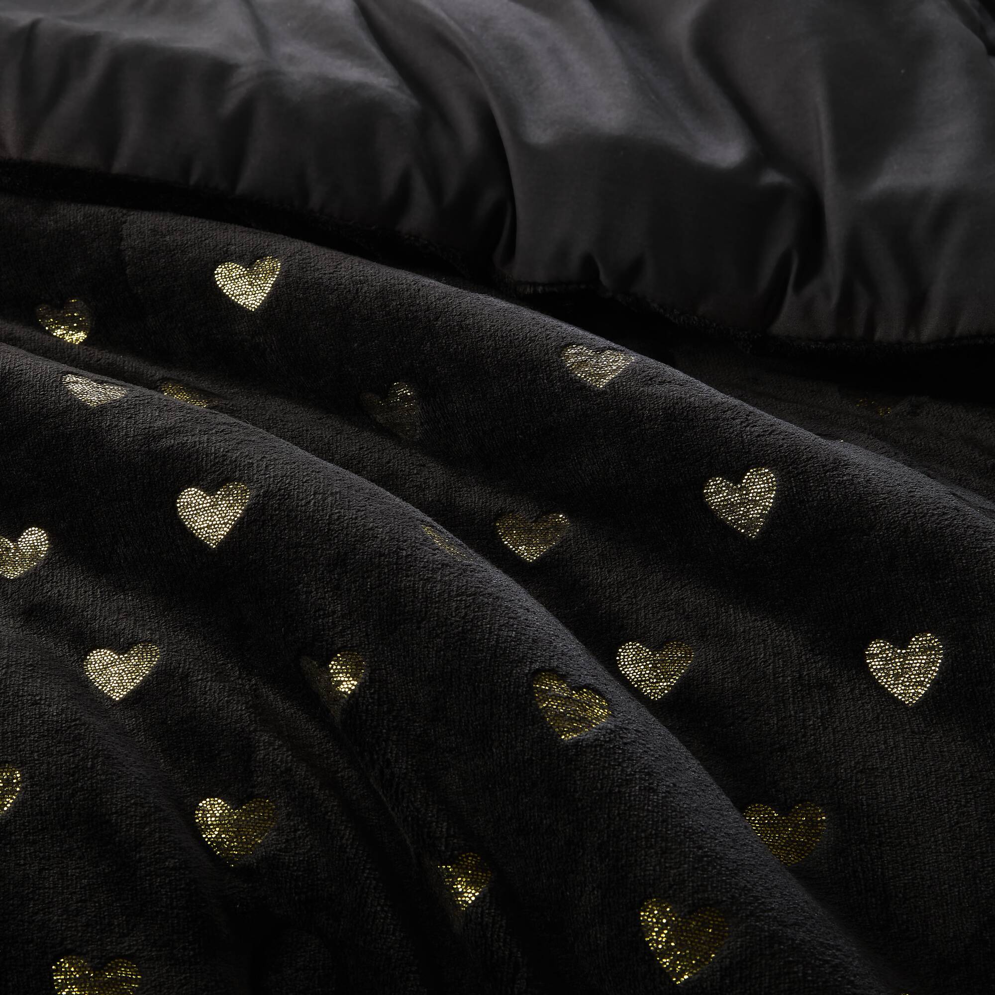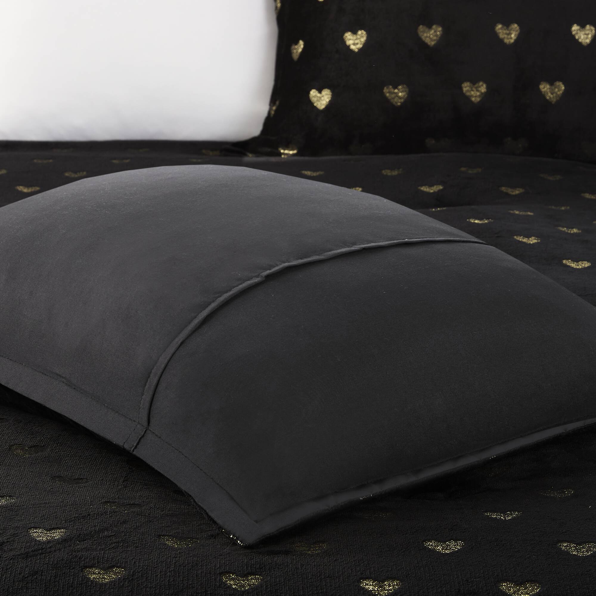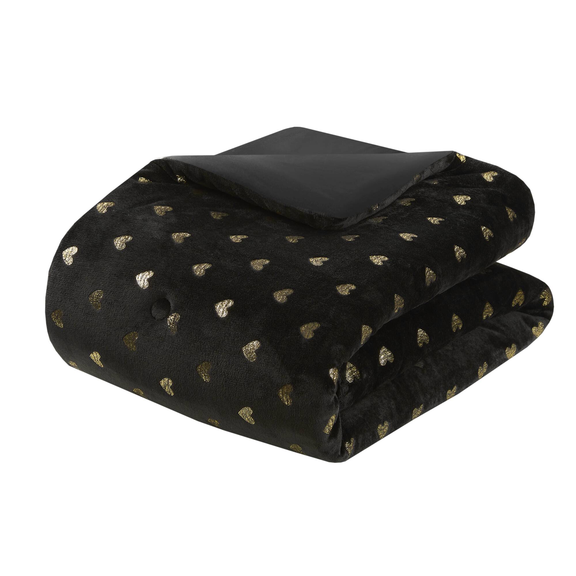 Transform your bedroom into an elegant sanctuary with this metallic printed plush comforter set. The rich black and gold palette, soft microlight plush texture, and coordinating decorative pillow deliver a luxurious look and cozy feel ideal for both modern and classic decor. Designed for easy care and everyday comfort, this Full/Queen set provides a polished, hotel-worthy finish to your bedding ensemble.