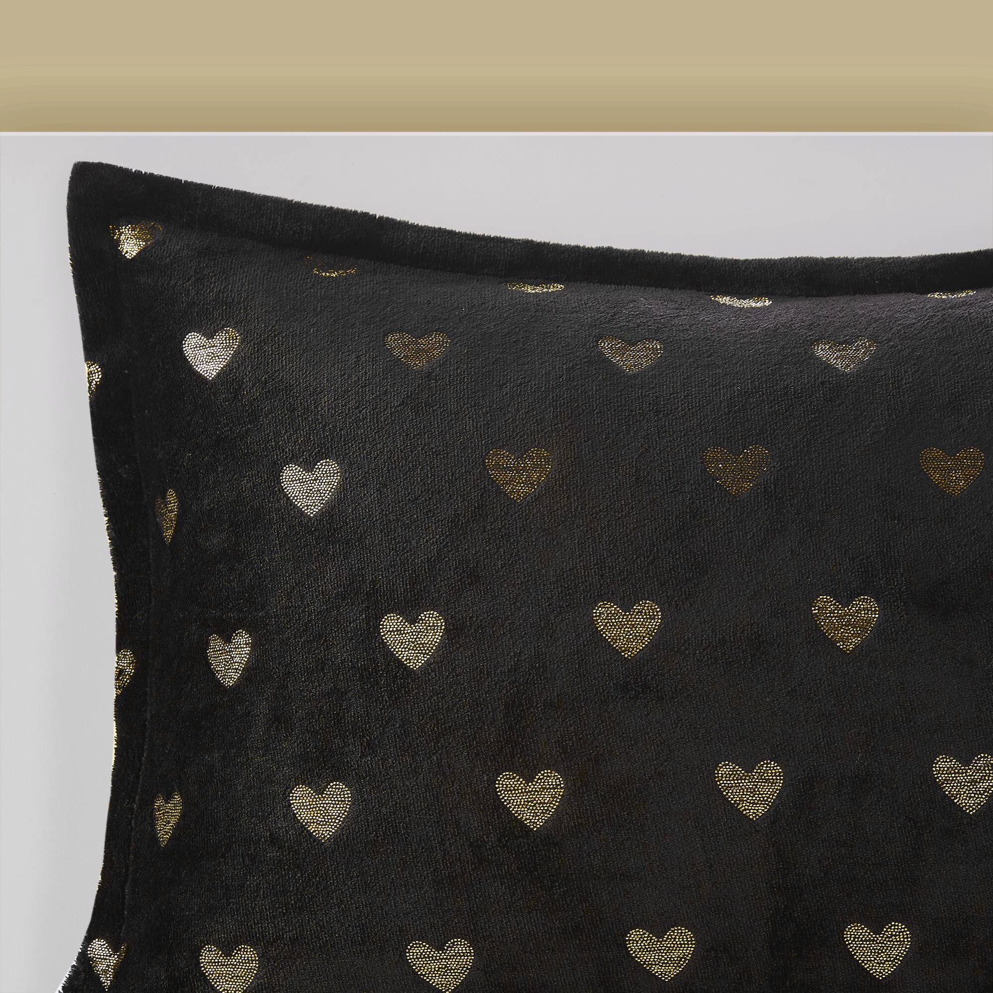 - Design Highlights: Metallic gold print on plush black background for a striking visual contrast; shams feature a tailored flange and secure overlap closure