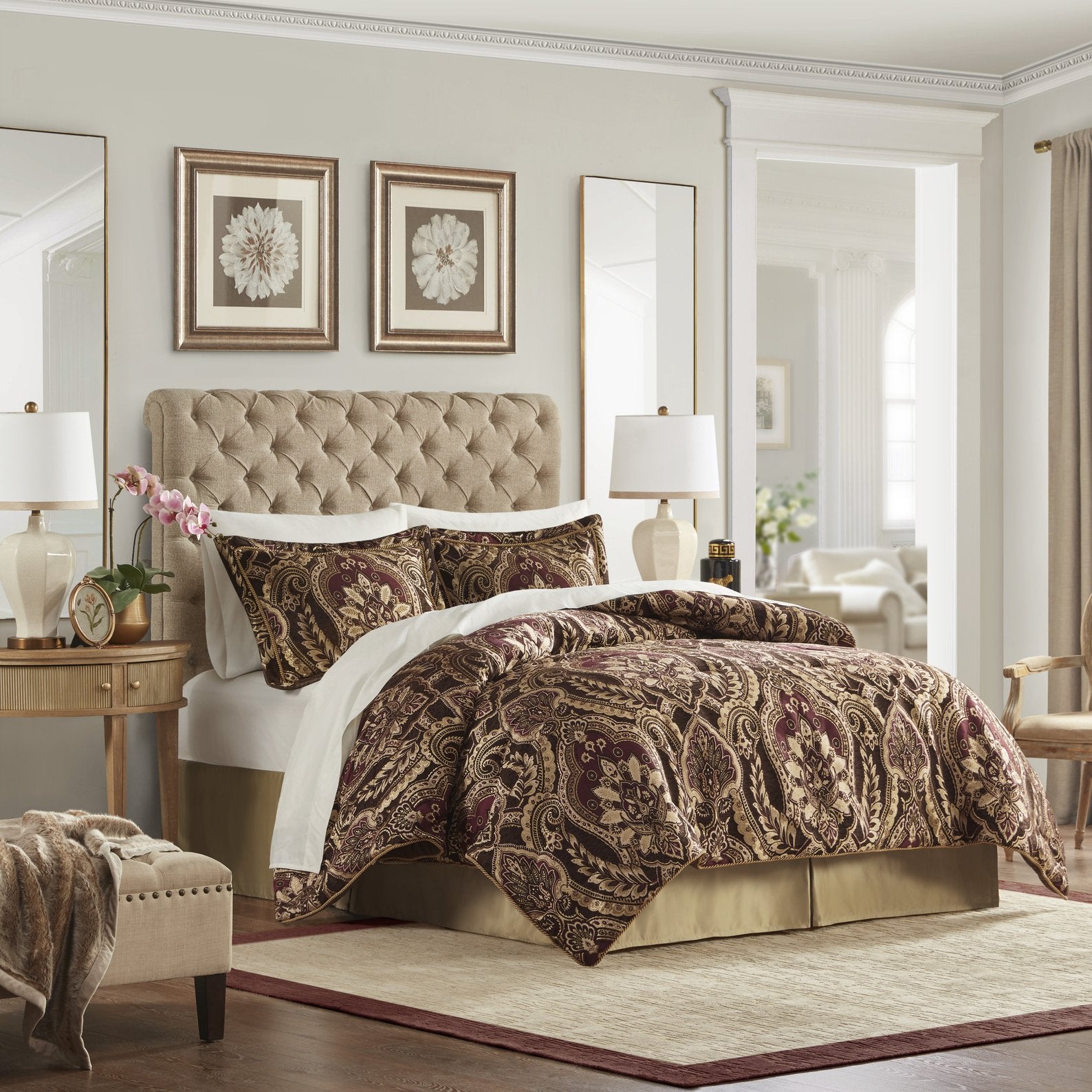 Transform your bedroom into an opulent retreat with this lavish four-piece comforter set, inspired by 17th-century French royal decor. Rich burgundy tones and intricate jacquard chenille patterns evoke the look of gilded tapestries and fine jewelry, while plush polyester construction ensures everyday comfort and easy care. Ideal for adding a touch of historic elegance to contemporary bedrooms.