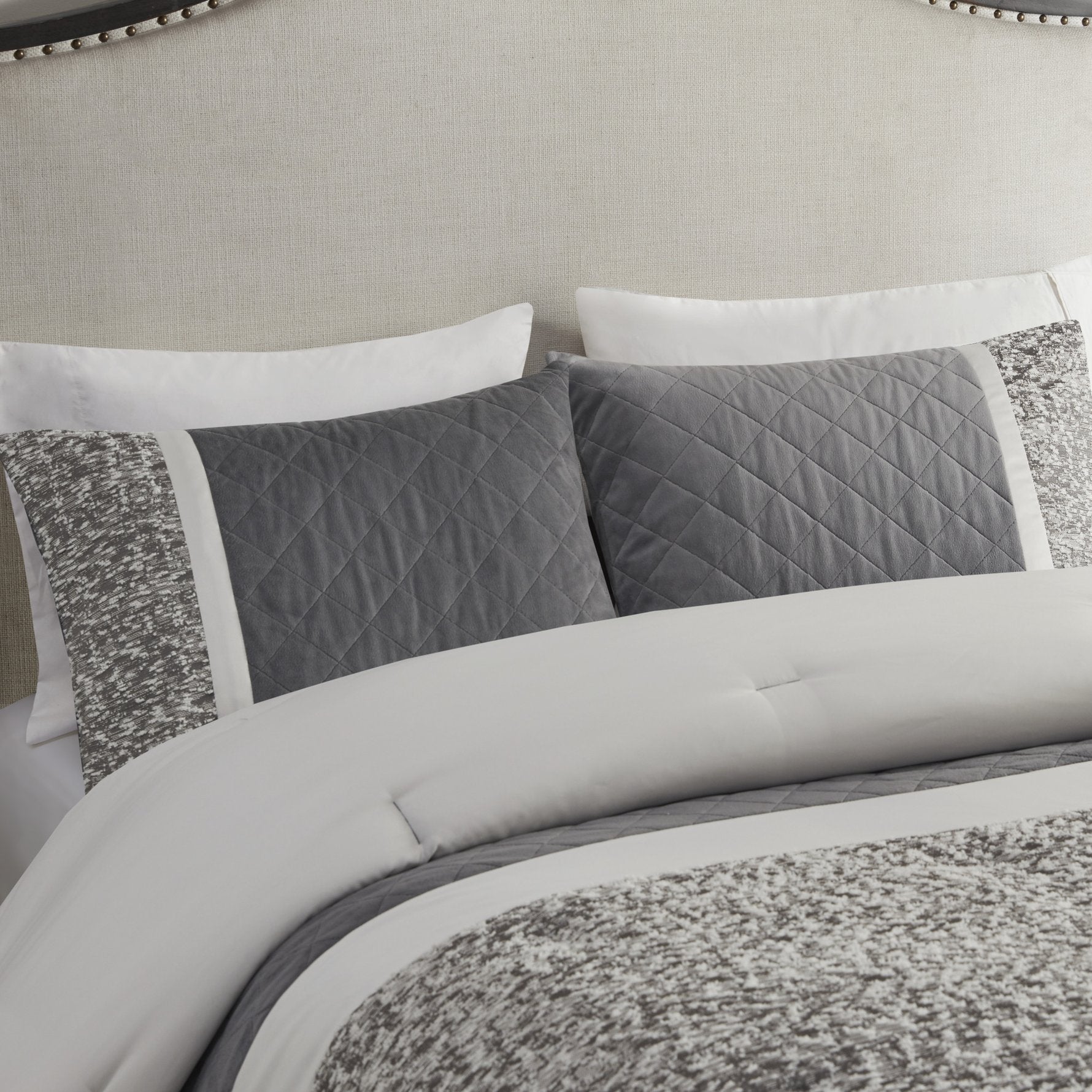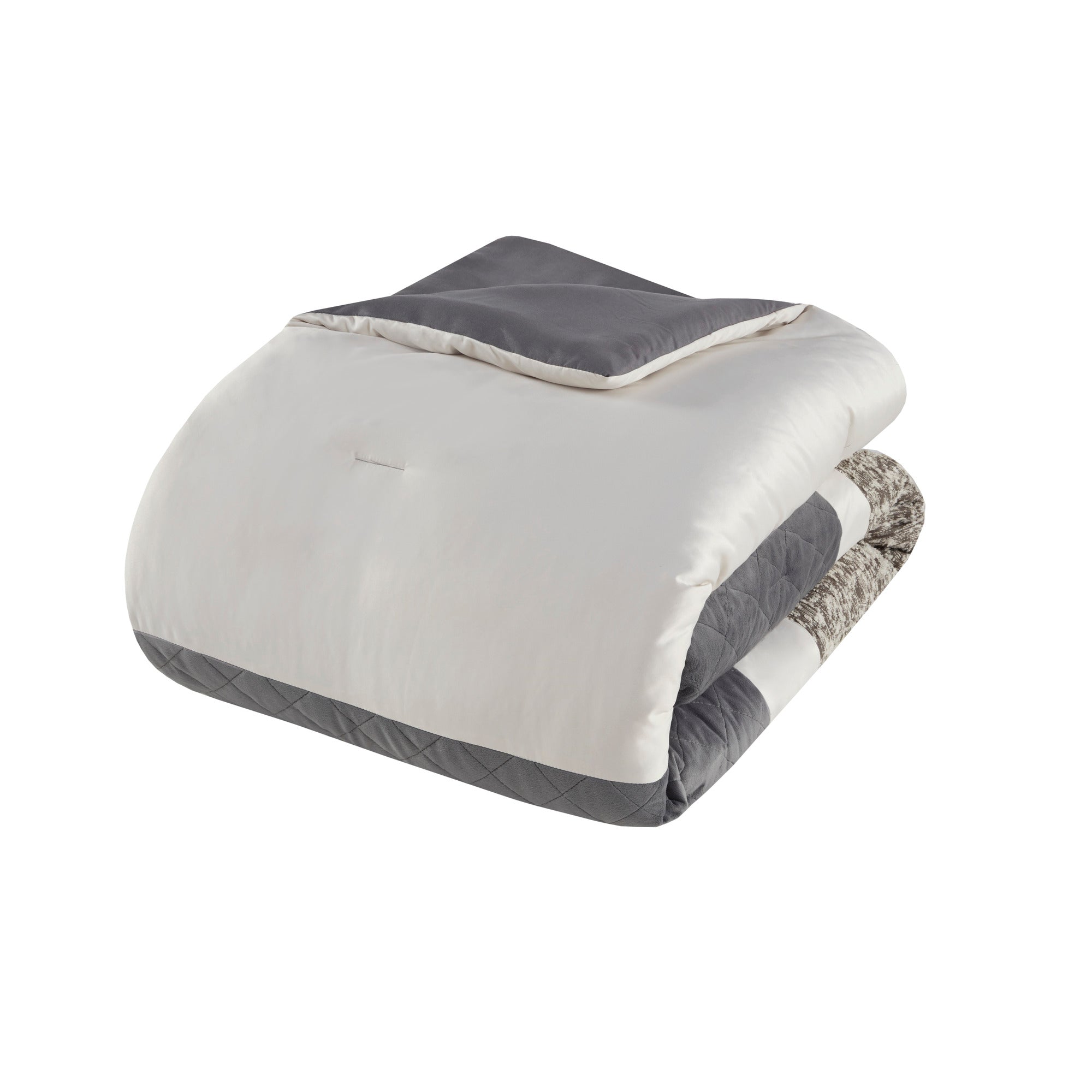 - Material Construction: Comforter and shams feature polyester jacquard pieced with charmeuse accents and a quilted mink face for texture; solid microfiber reverse provides a smooth finish