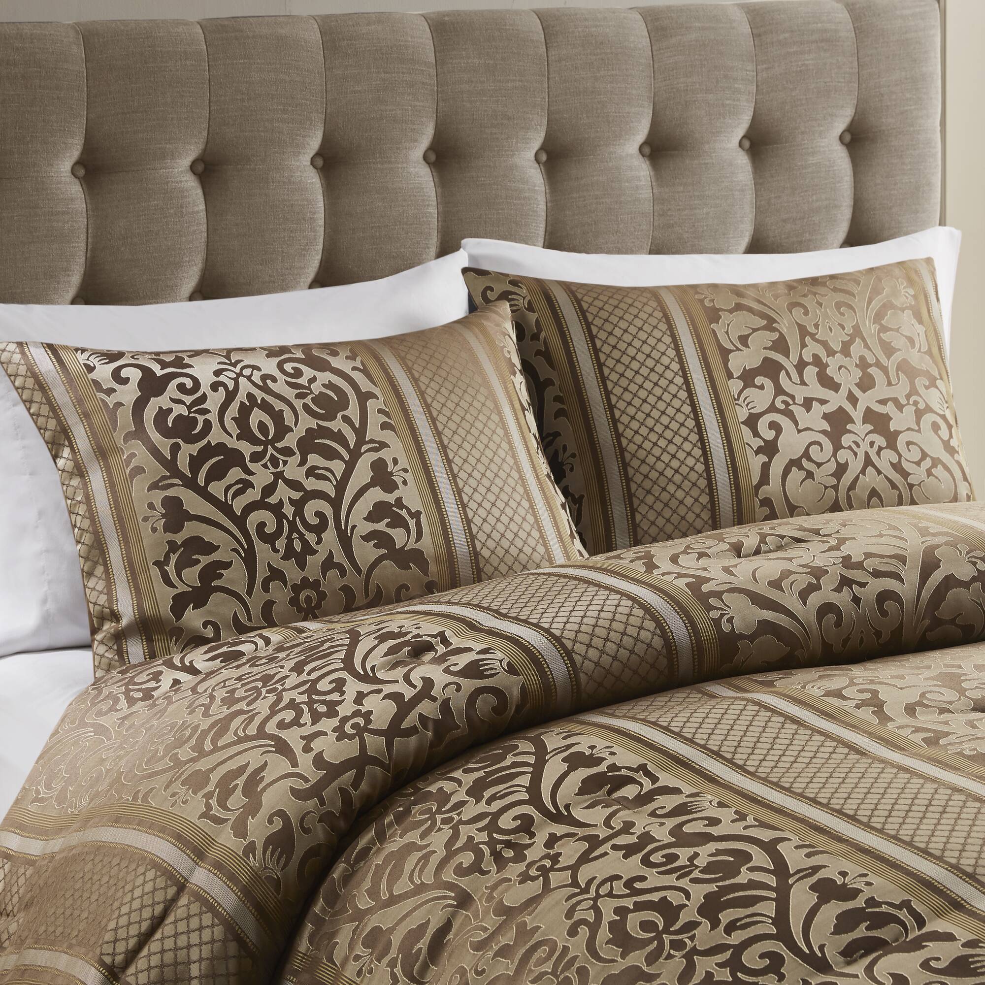 - Material: Comforter and shams: 100% polyester jacquard with a microfiber solid reverse for a soft hand and attractive texture.
