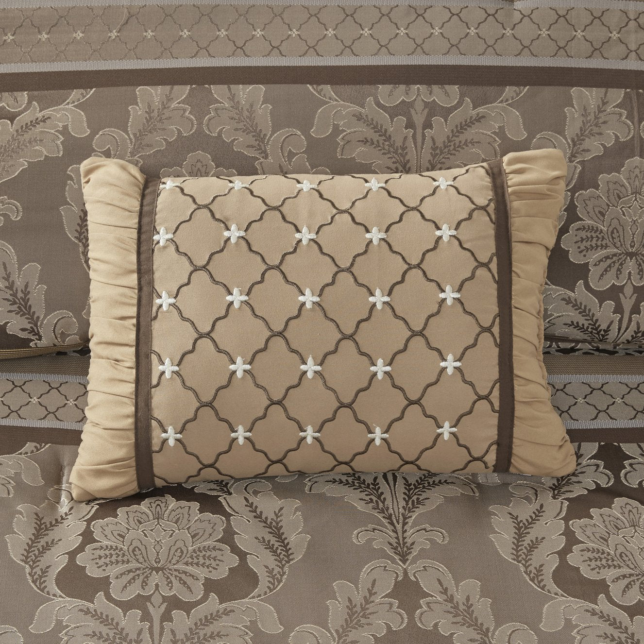 Elevate your bedroom with the Madison Park Bellagio 7-piece comforter set, blending timeless jacquard patterns with subtle lustre for a refined, hotel-inspired look. Designed for both style and comfort, this coordinated collection features a richly patterned comforter, matching shams, decorative pillows with detailed embroidery and pleating, plus a tailored bedskirt to complete the ensemble.