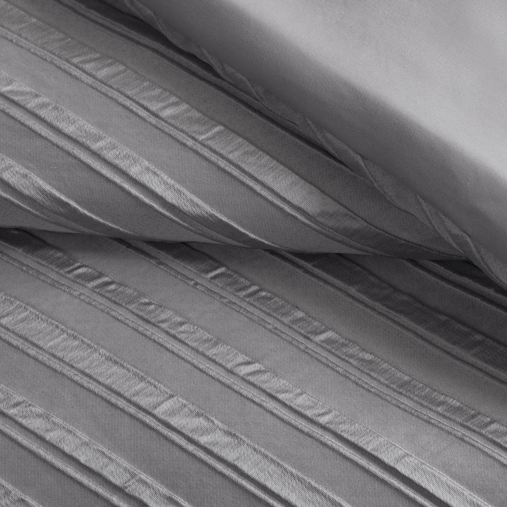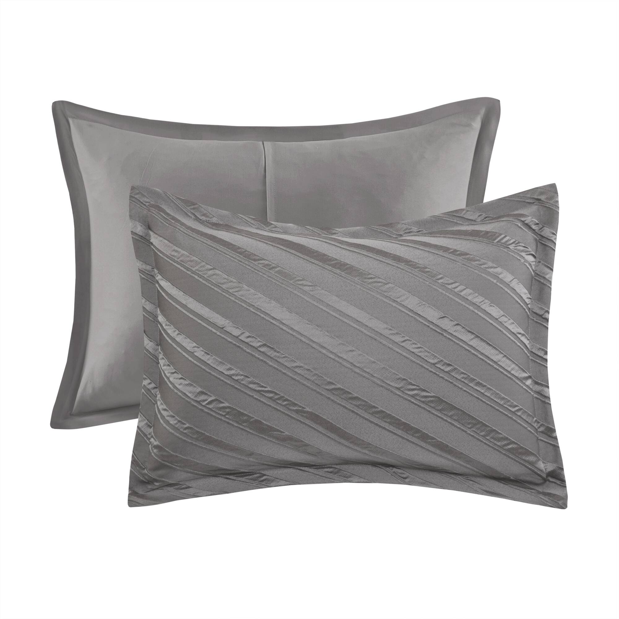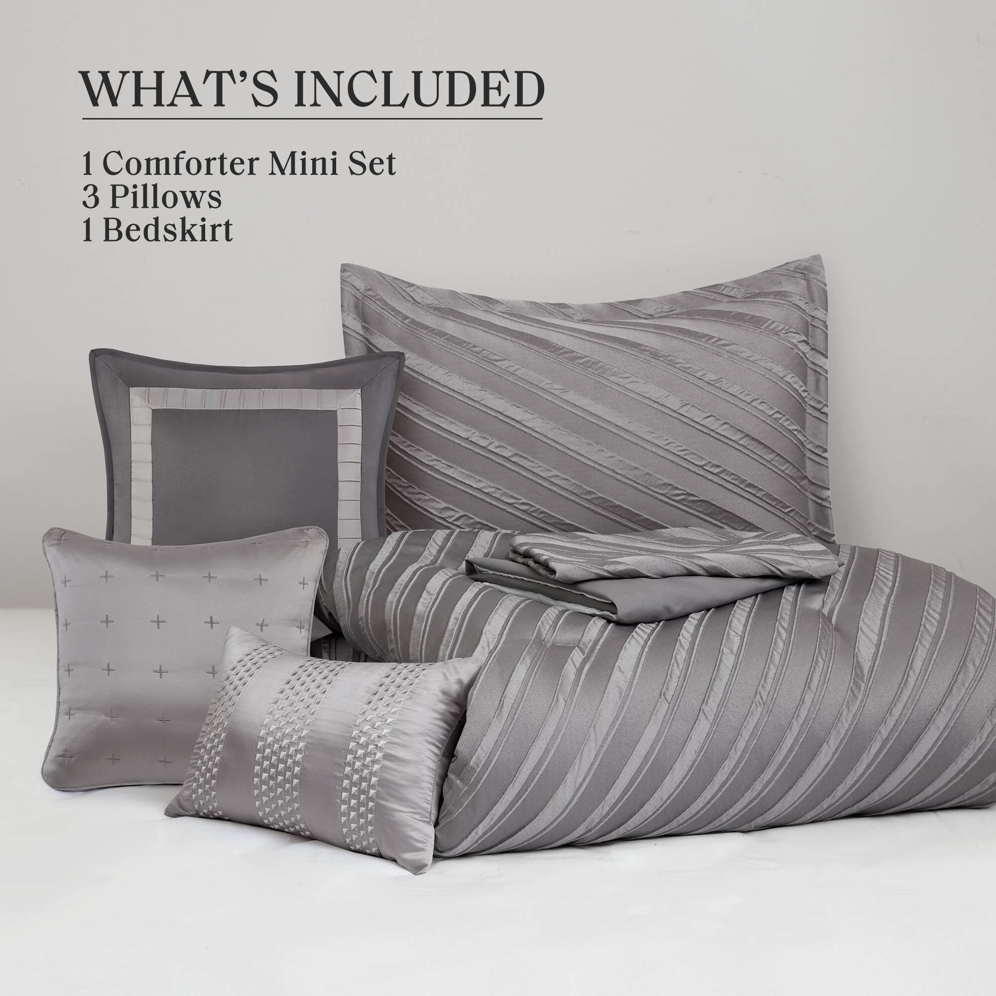 Elevate your bedroom with this elegant 7-piece king comforter set in versatile grey. Thoughtfully designed for comfort and coordinated style, the set pairs a plush, jacquard-faced comforter with matching shams, decorative pillows, and a tailored bedskirt to create a finished, hotel-quality look that's easy to care for and durable for everyday use.