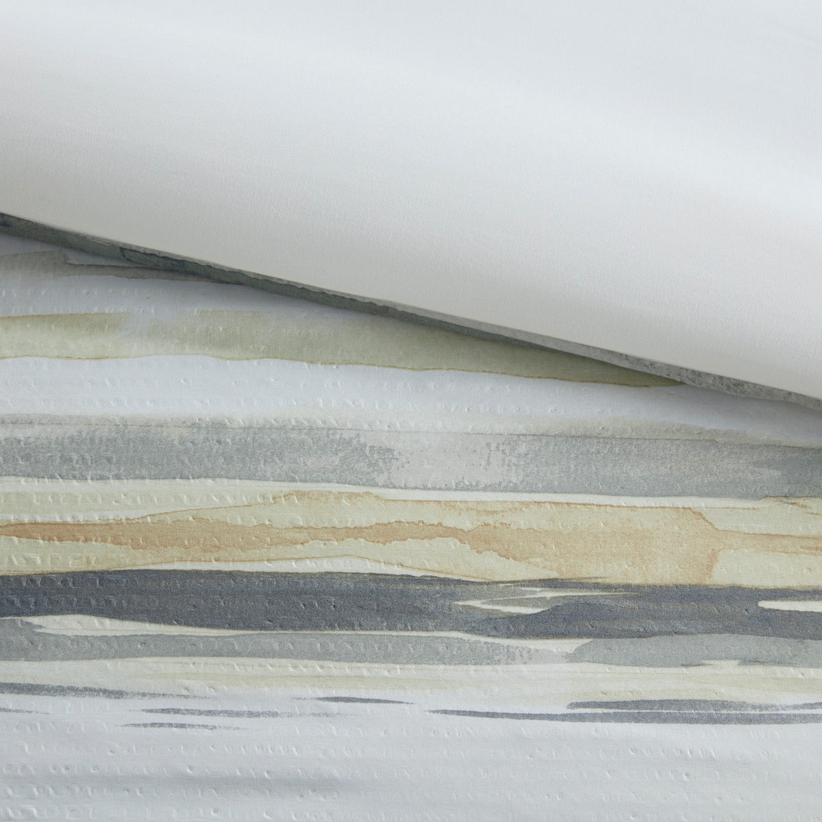 - Textured seersucker comforter features watercolor stripe in muted yellow and gray hues and an off white reverse