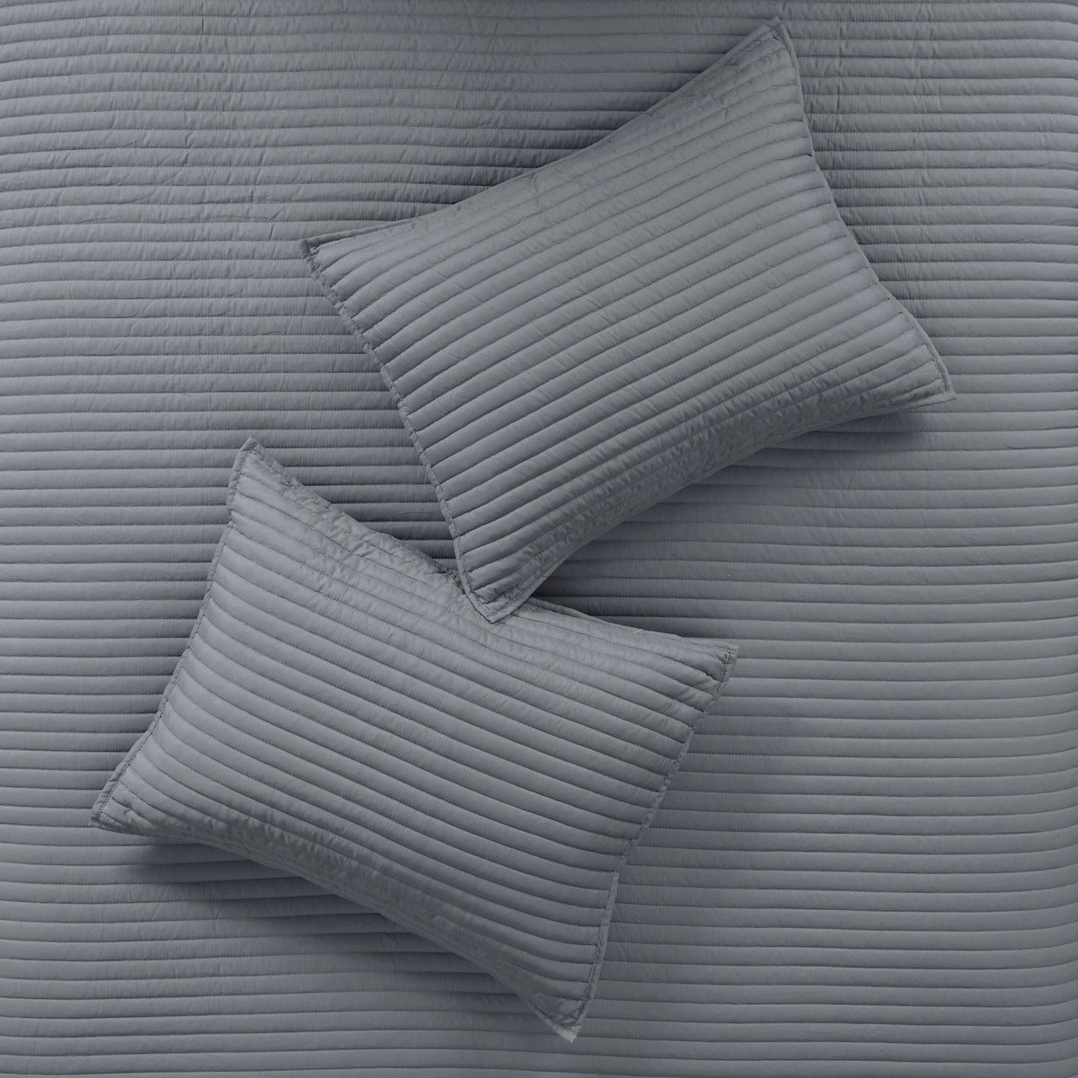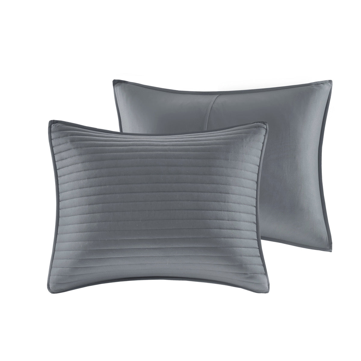 - The set includes a quilt set with channel stitch quilting in gray color