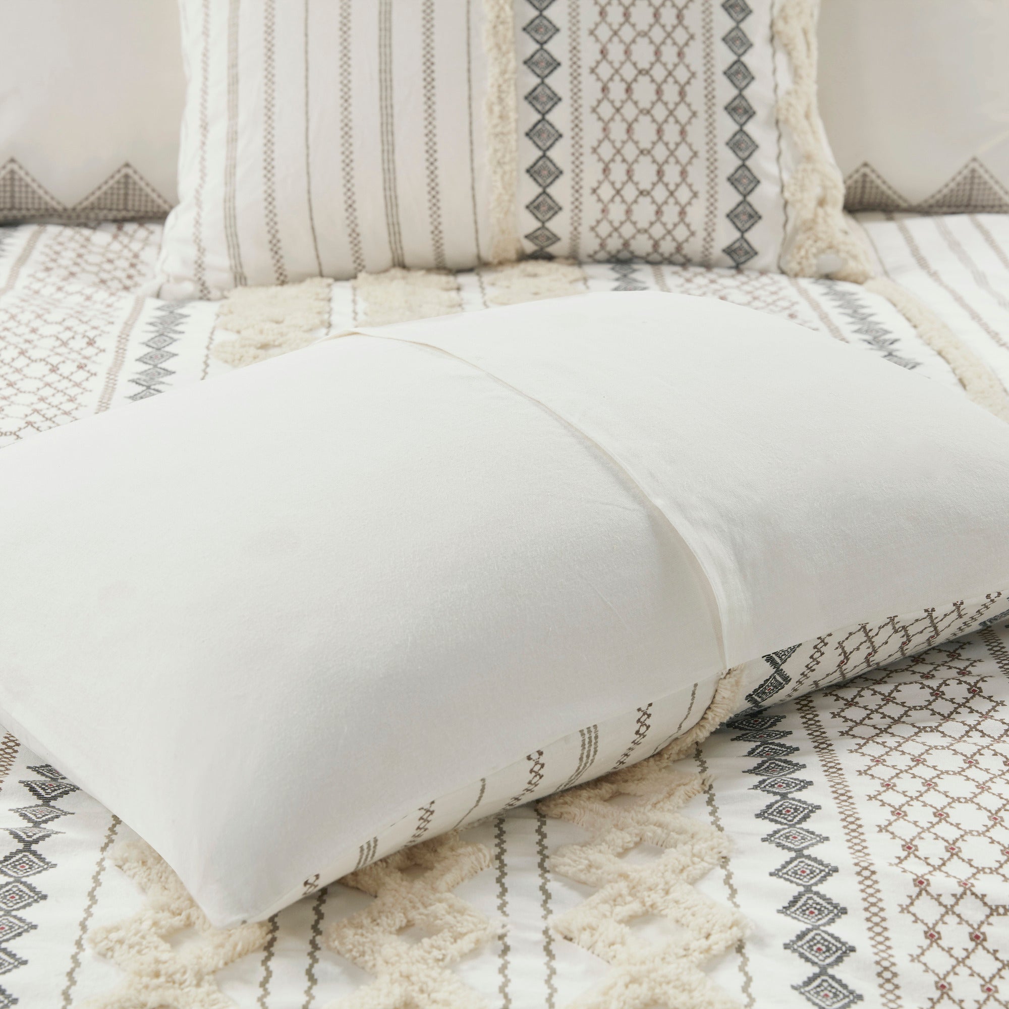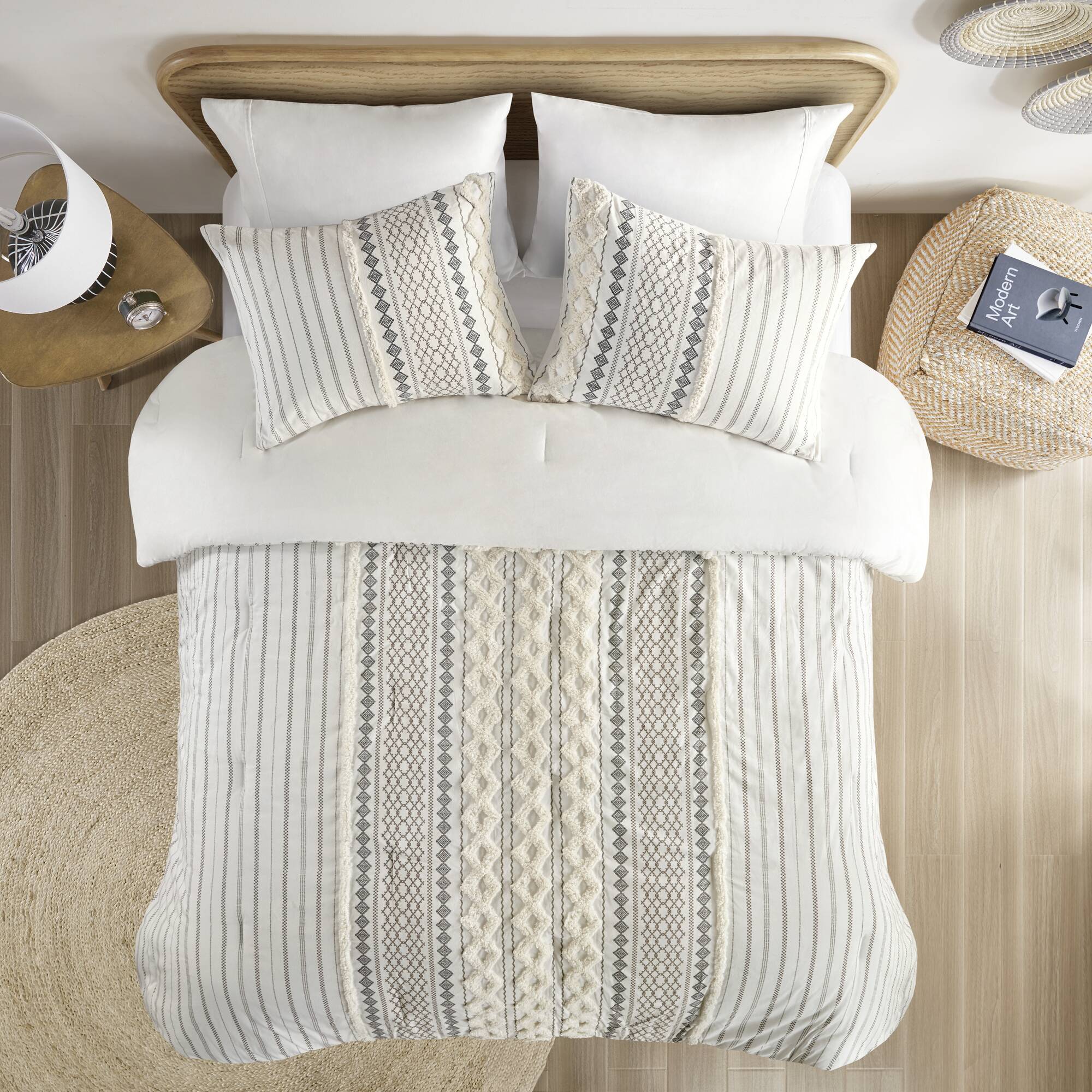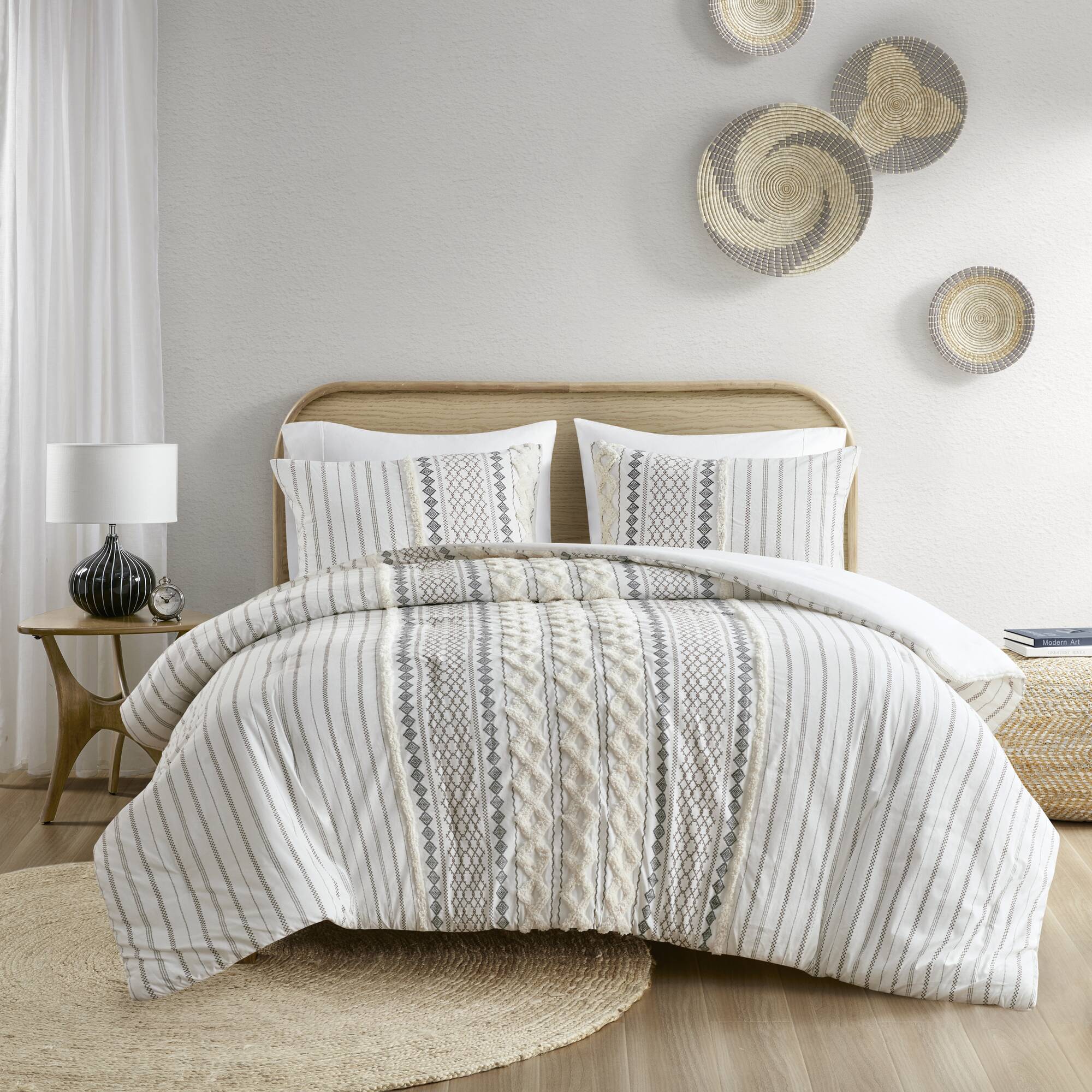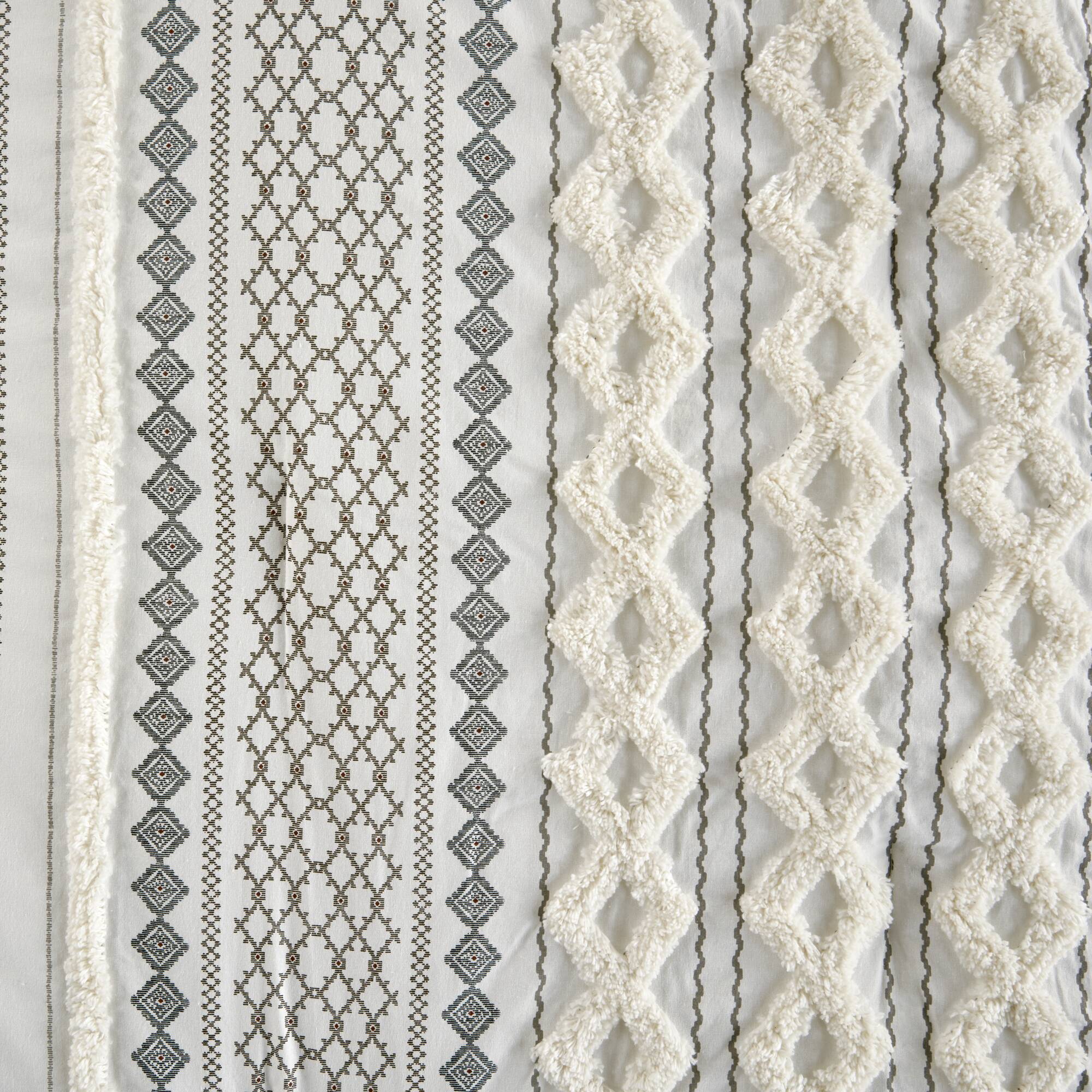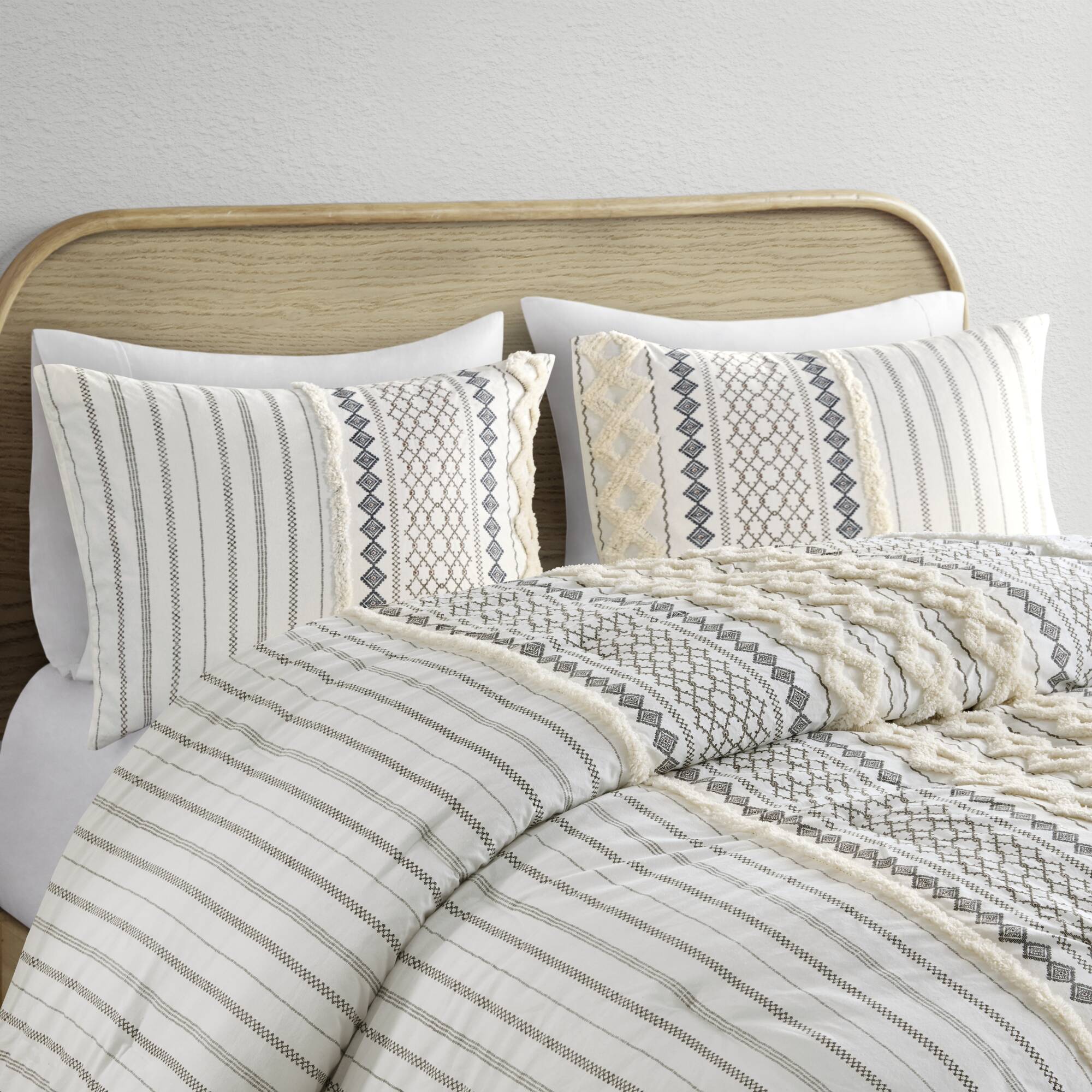 Refresh your bedroom with a cozy, mid-century modern update: this cotton comforter mini set combines soft, breathable 100% cotton with textured chenille tufting and geometric prints for a layered, designer look. Thoughtful details like visible bartacks, a solid reverse, and matching shams create a coordinated, duvet-like appearance while OEKO-TEX certification ensures the set is free from harmful substances for safe, everyday use. Machine washable for easy care, this set balances style, comfort, and practicality.