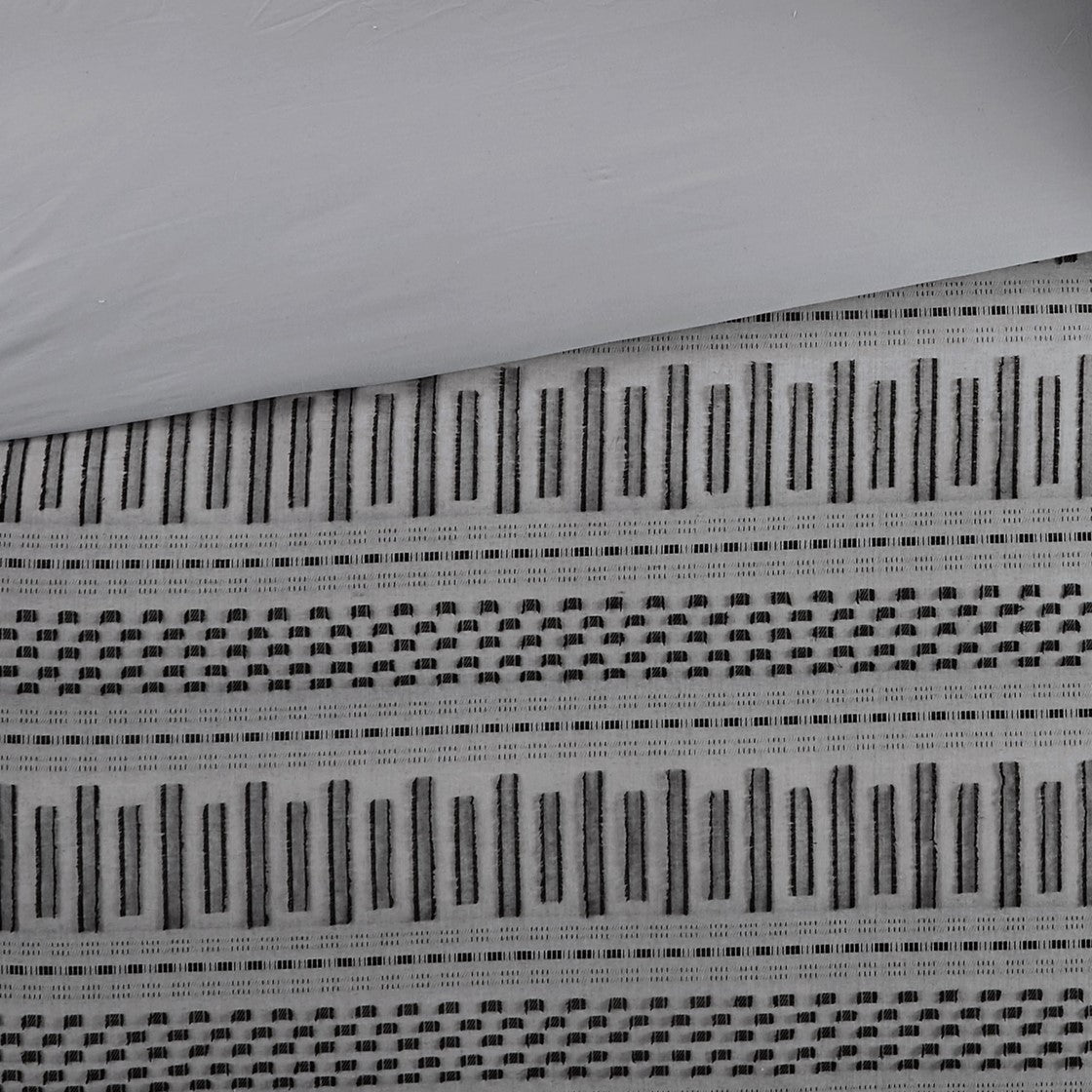 - Casual 100% cotton jacquard comforter set with eyelash look woven details in horizontal stripes