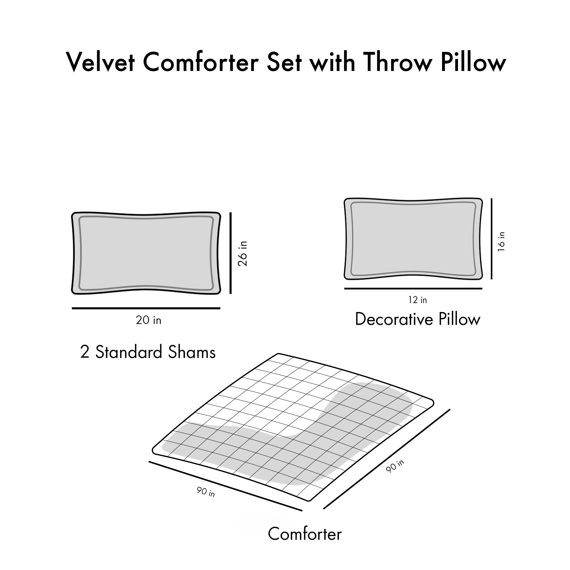 - Materials: Comforter and shams: 100% polyester crushed velvet face with diamond quilting; 100% polyester microfiber reverse. Decorative pillow: 100% polyester embroidered cover with polyester fill.