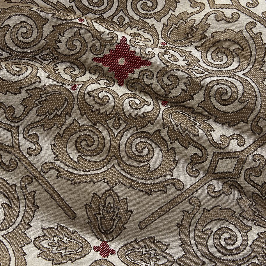 Refresh your bedroom with the Donovan 7-piece jacquard comforter set, a striking blend of modern color-blocking and refined embroidery. Rich red panels and taupe embroidered accents create a sophisticated focal point, while coordinated decorative pillows and king shams complete the layered, hotel-ready look. Designed for easy care and everyday comfort, this set delivers style and convenience in one package.
