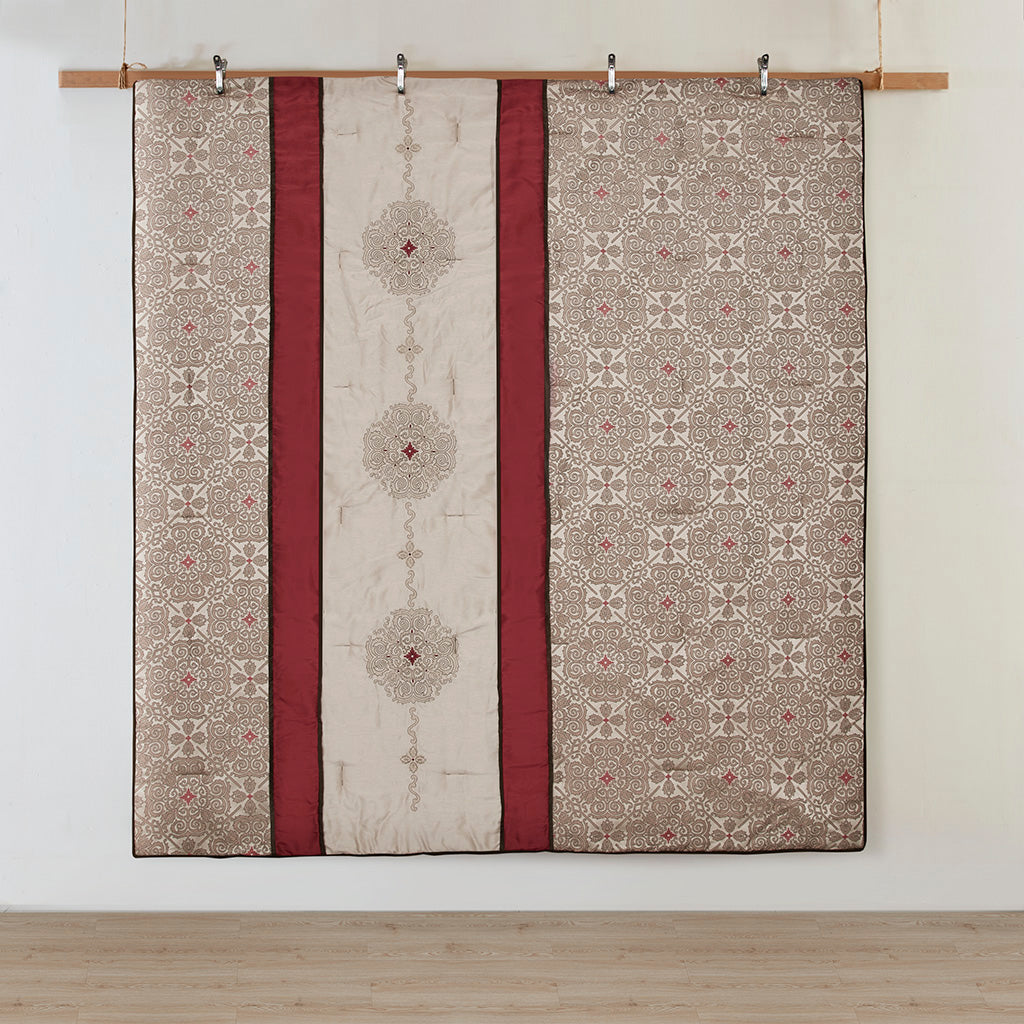 - Design Highlights: Modern color-blocked red stripes with taupe embroidery for textural contrast; coordinated pillow set enhances depth and visual interest.