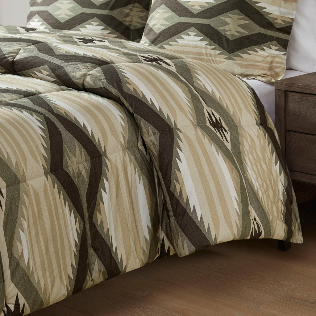 Wrap your bedroom in warm, lodge-inspired style with this southwest-designed King comforter set. Featuring a softspun, flannel-like texture and a cozy sherpa decorative pillow with a bear motif, the set combines lasting comfort with rustic visual impact. OEKO‑TEX certified and machine washable, it delivers easy care and year-round comfort while the bold pattern offers a distinctive focal point for mountain, cabin, or farmhouse décor.