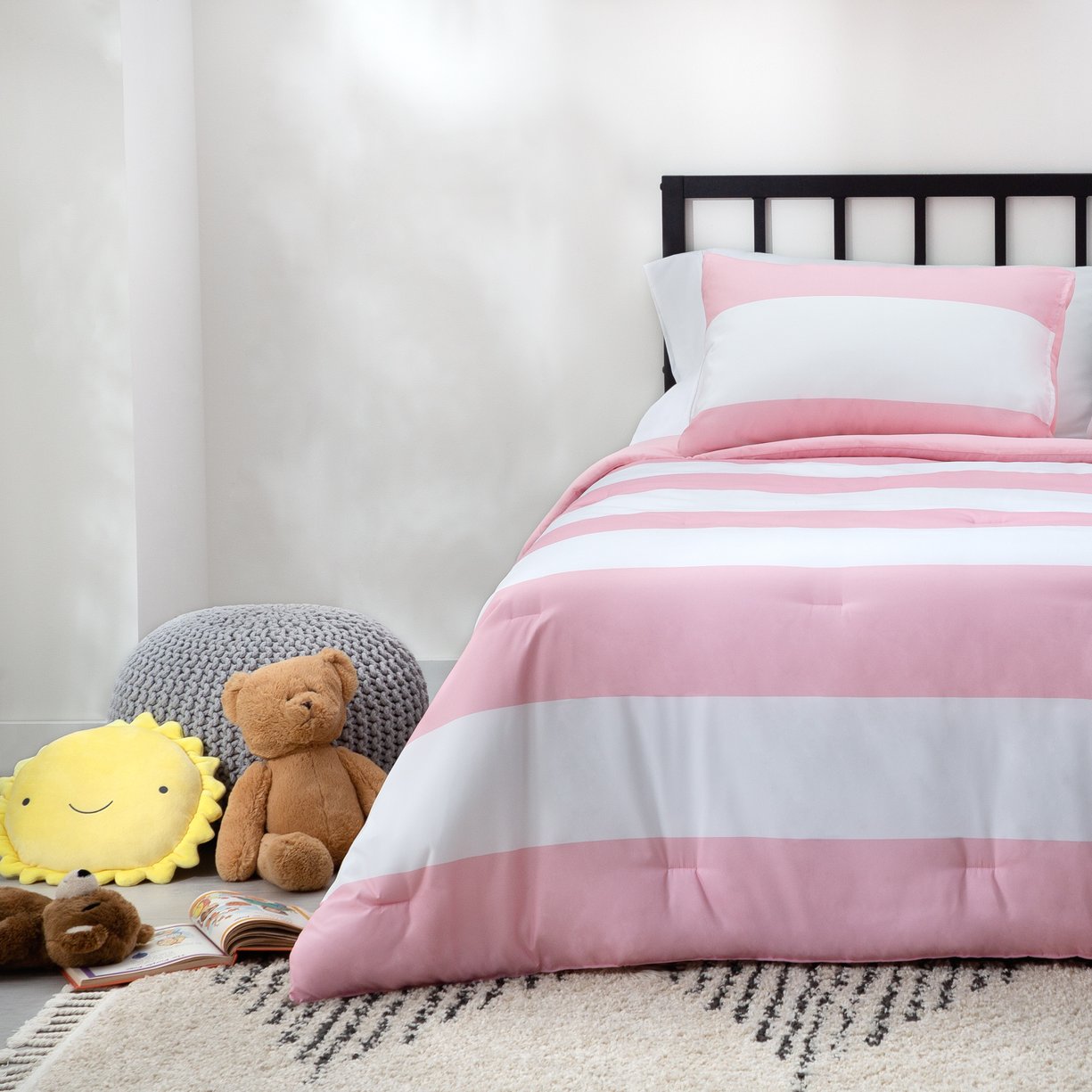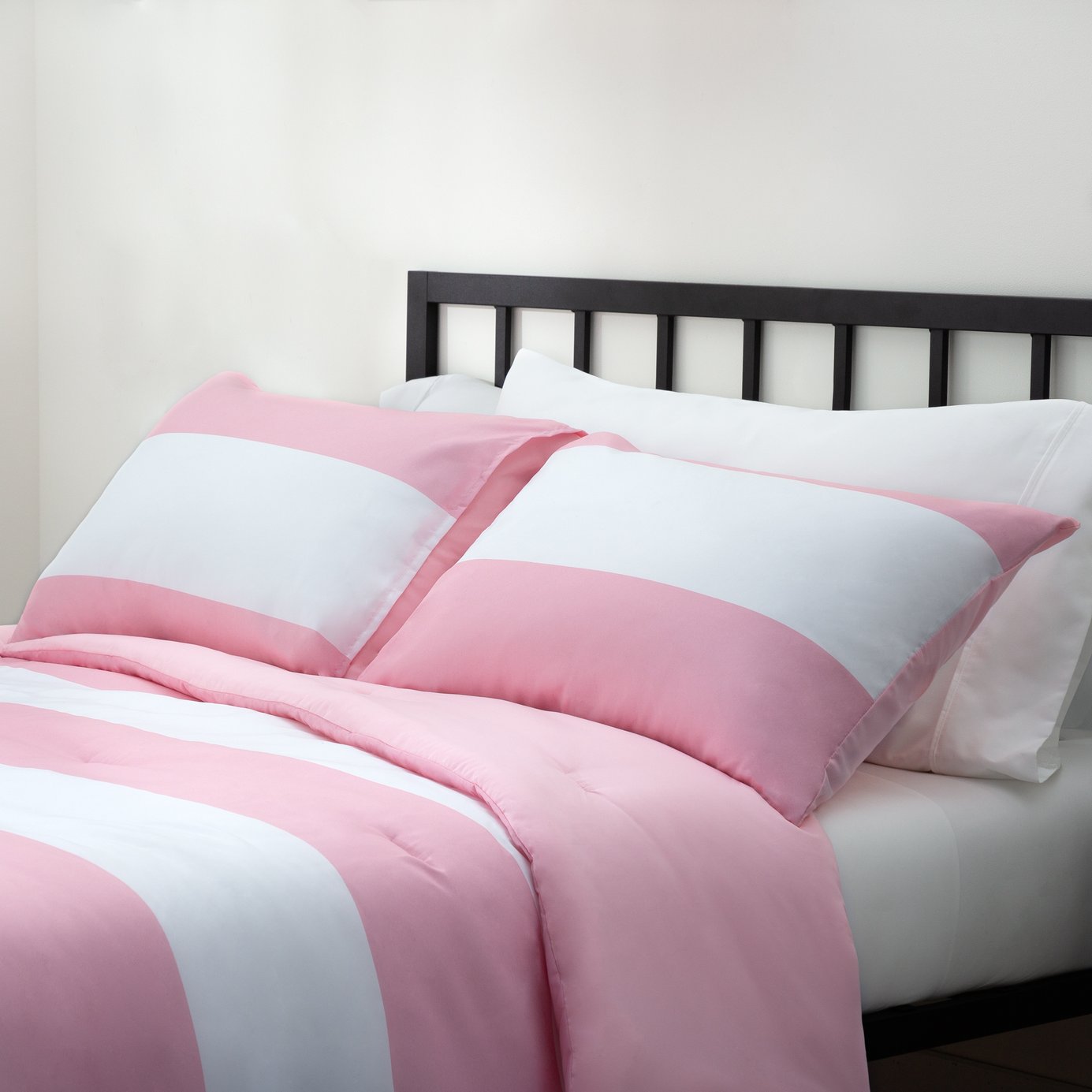 Elevate your bedroom with a soft, stylish comforter that pairs modern rugby stripes with cozy, hypoallergenic fill. This reversible comforter delivers a polished, layered look with matching shams and a plush feel that's perfect for year-round comfort and easy care.