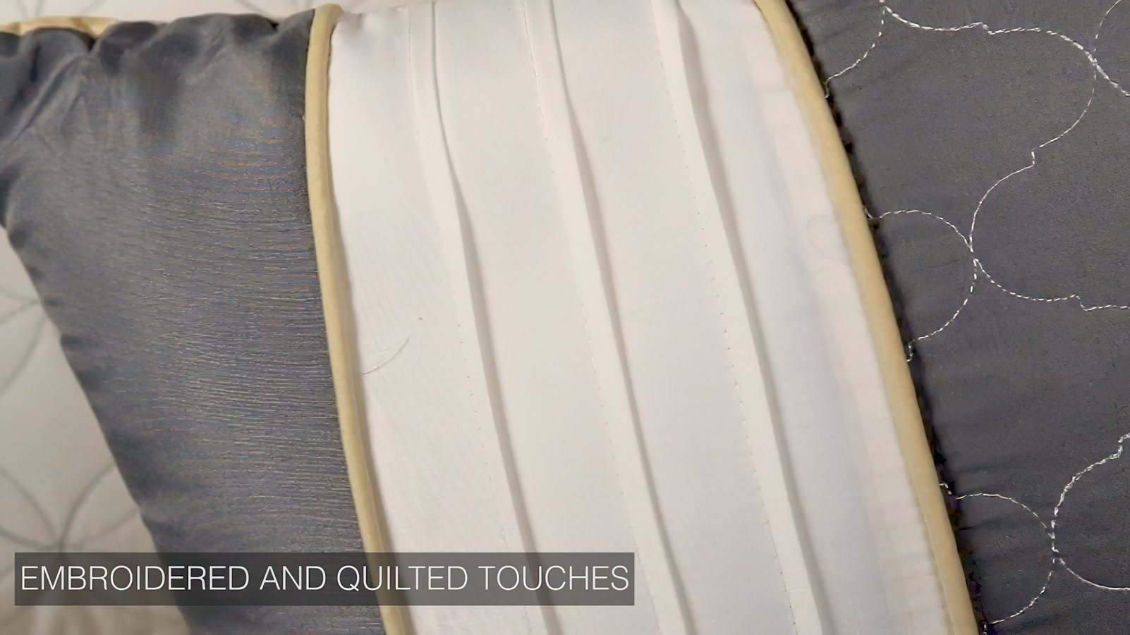 - Set includes: 1 Comforter, 2 Shams, 3 Decorative pillows and 1 Bed skirt