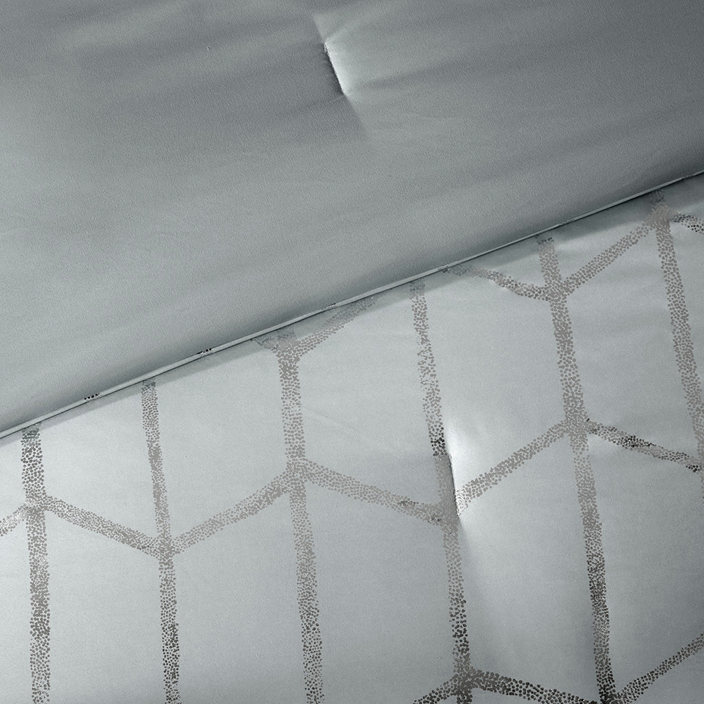 Refresh your bedroom with the Raina comforter set—a modern, metallic-accented ensemble that blends vibrant aqua tones with geometric silver print for a bold yet polished look. Ultra-soft brushed microfiber and embroidered, typography-accented decorative pillows add tactile luxury, while an antimicrobial treatment helps keep the fabric fresh longer. Perfect for Twin and Twin XL beds, this coordinated set arrives ready to style after simple fluffing or steaming.