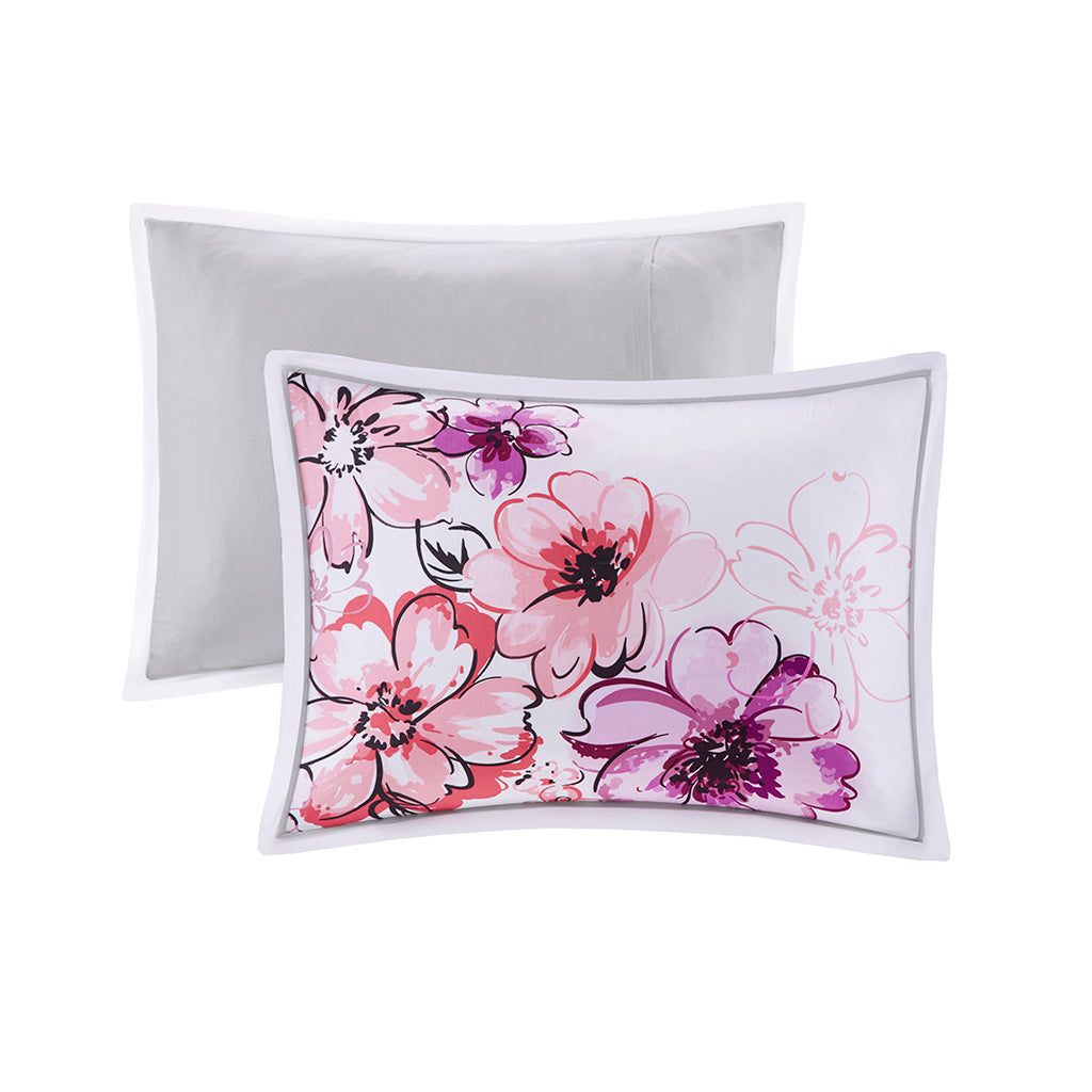 Refresh your bedroom with the Intelligent Design Olivia comforter set—an energetic, modern update that layers vibrant asymmetrical florals with a neutral grey reverse for versatile styling. Thoughtfully designed details like embroidered and textured decorative pillows add depth and a boutique look, while antimicrobial treatment helps keep the fabric fresher longer. Ideal for Twin or Twin XL beds, this set balances visual impact with everyday practicality.