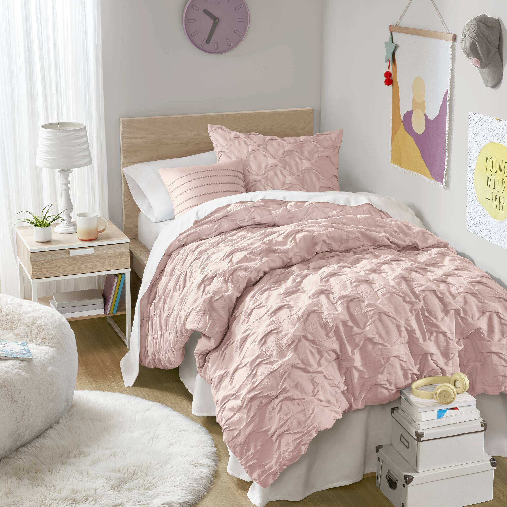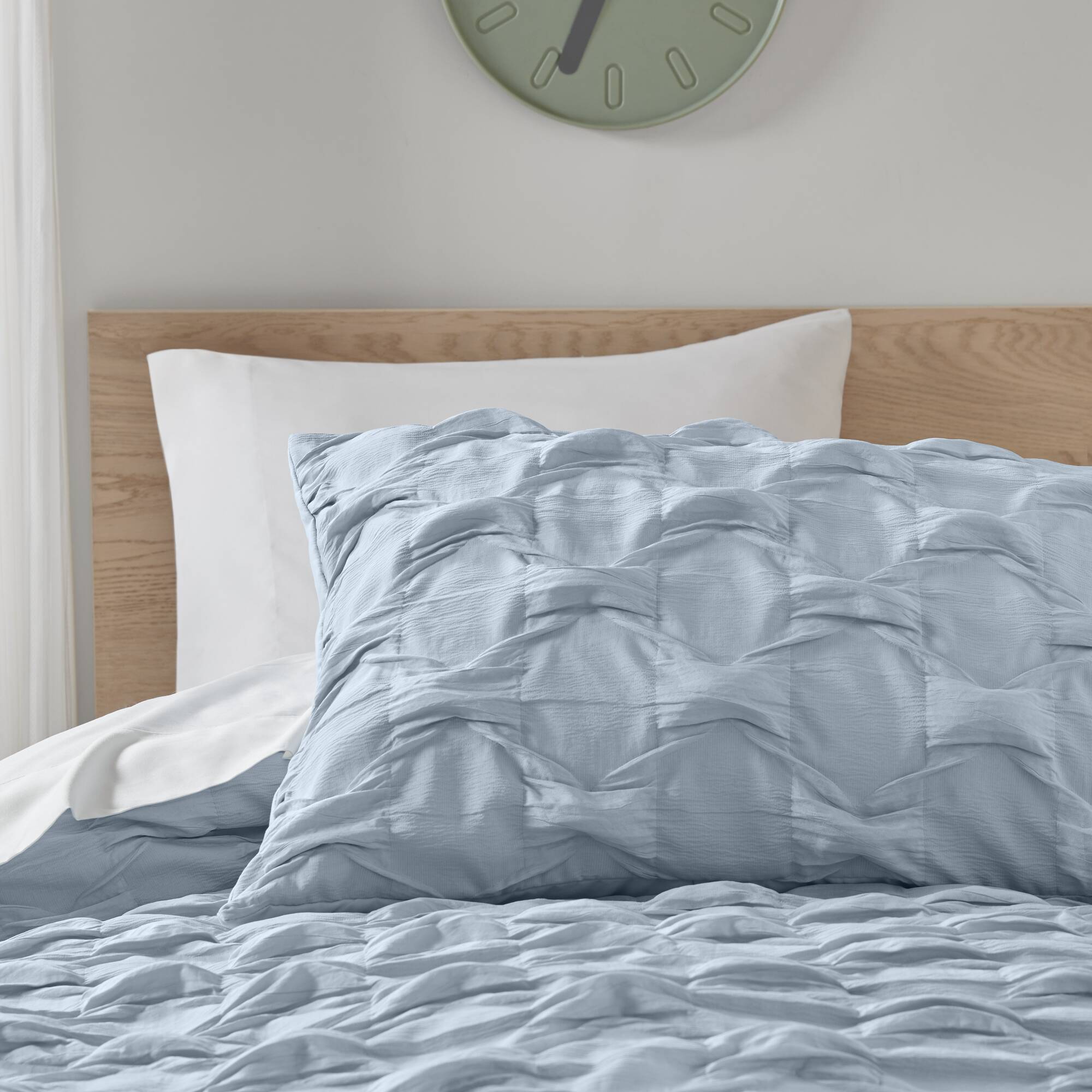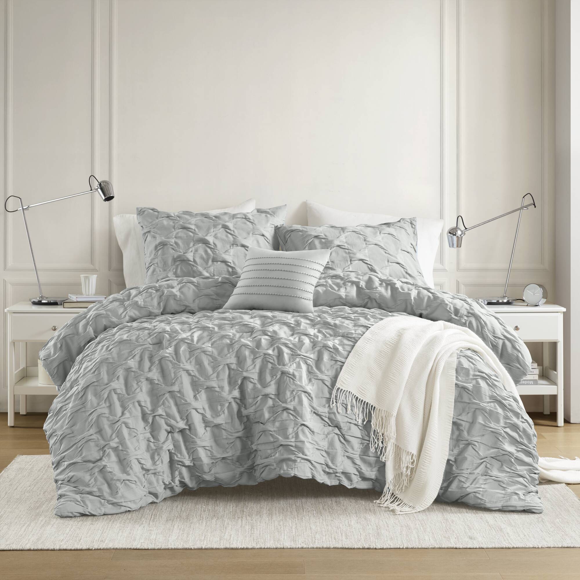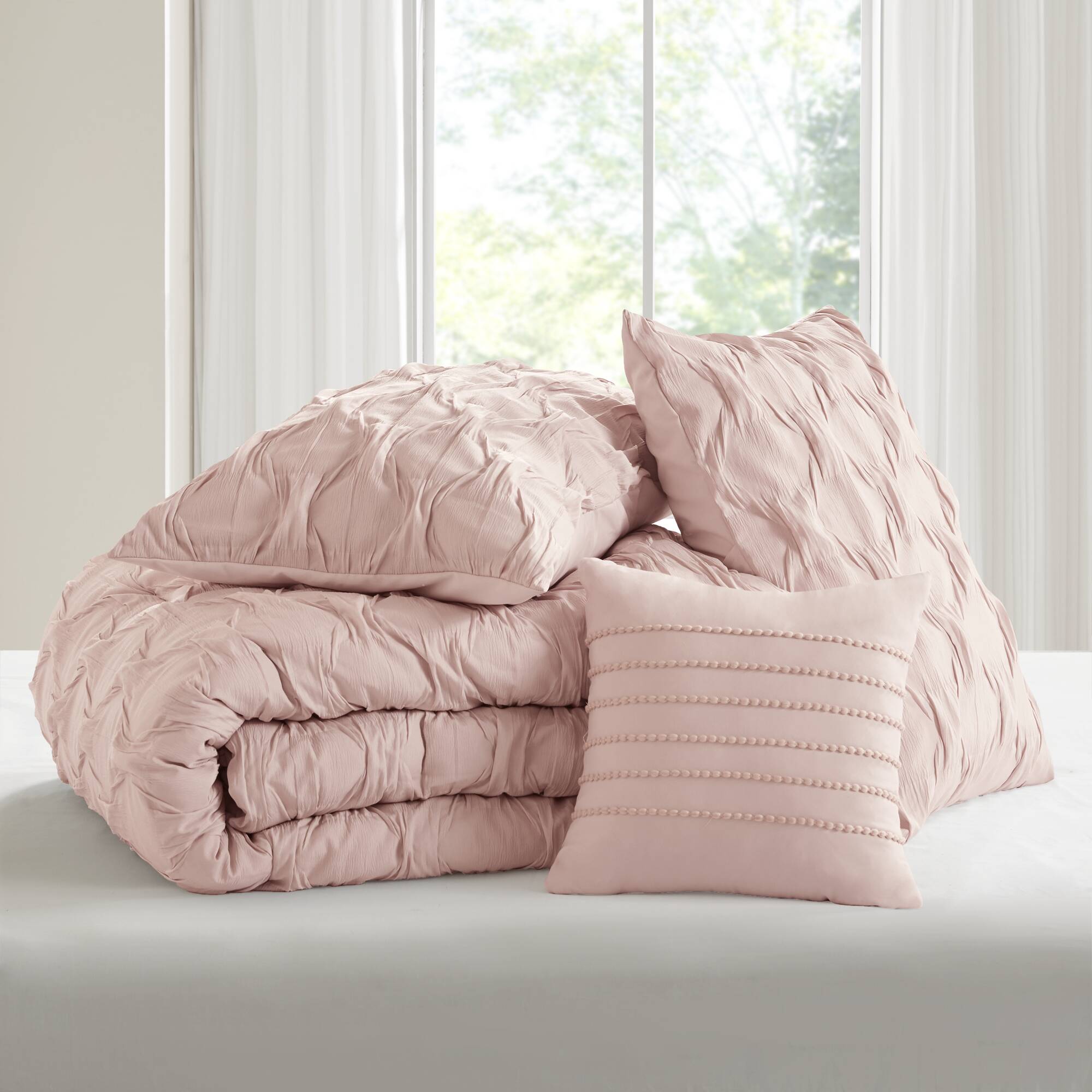 Transform your bedroom into a stylish sanctuary with a comforter set that pairs casual elegance and year-round comfort. Featuring a chic ruched ogee pleat pattern and crinkle-textured fabric, this set adds refined visual interest while remaining soft, breathable, and easy to care for.