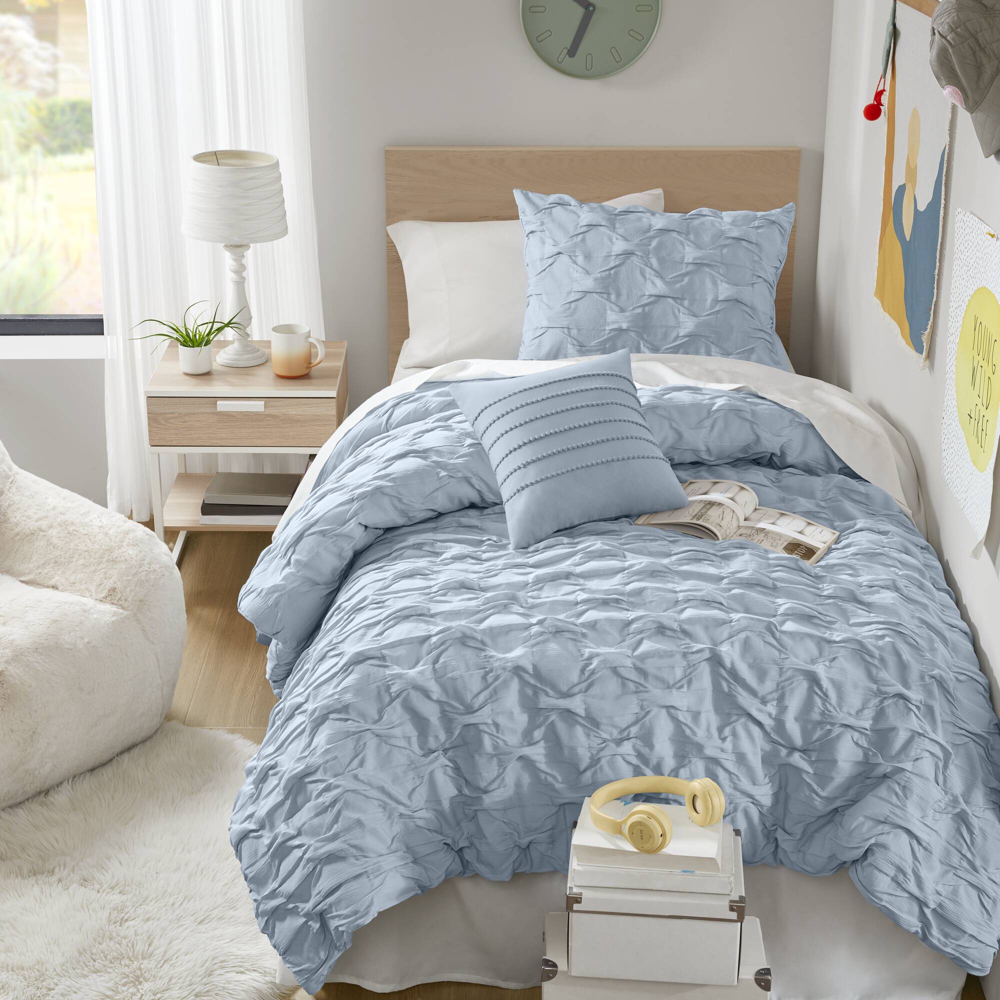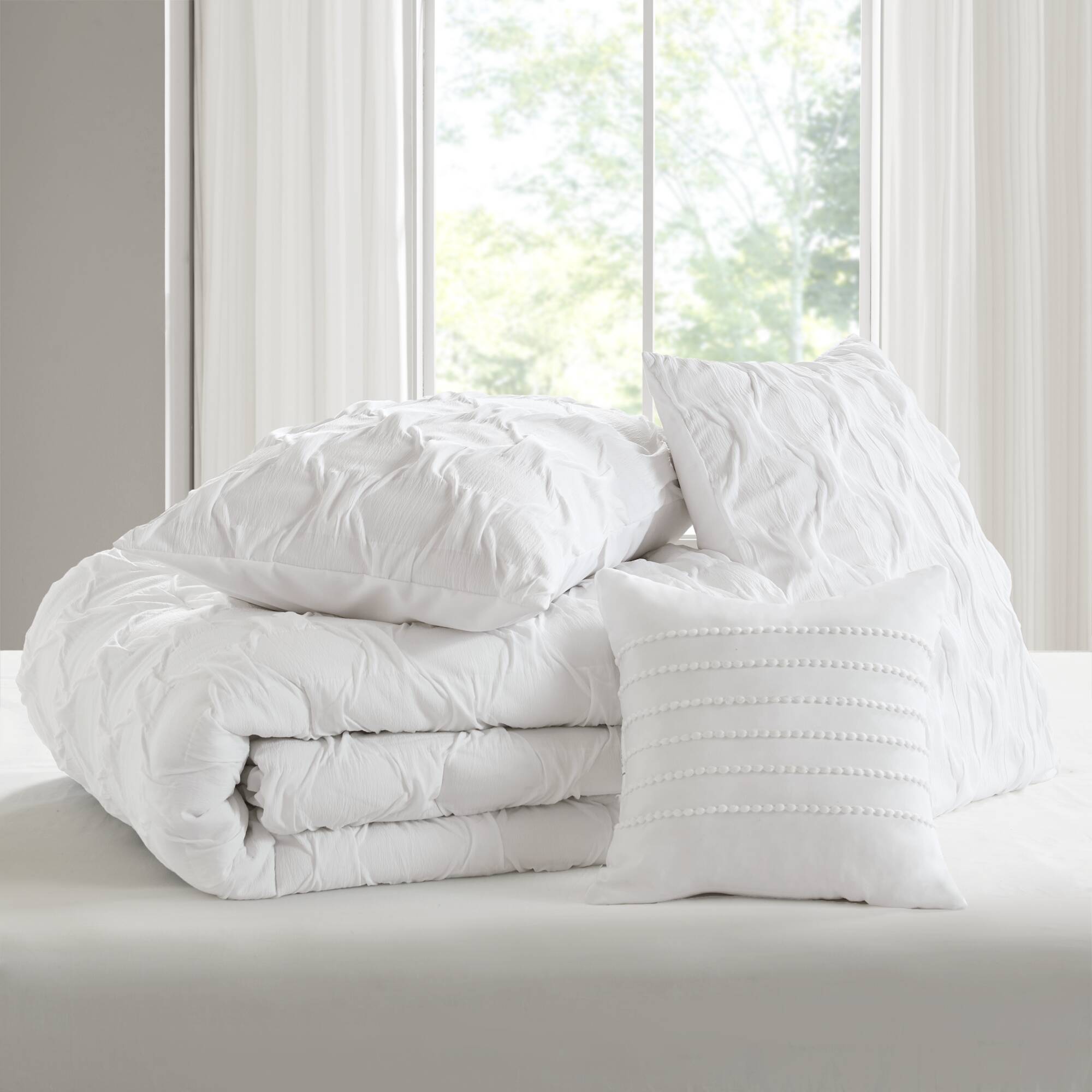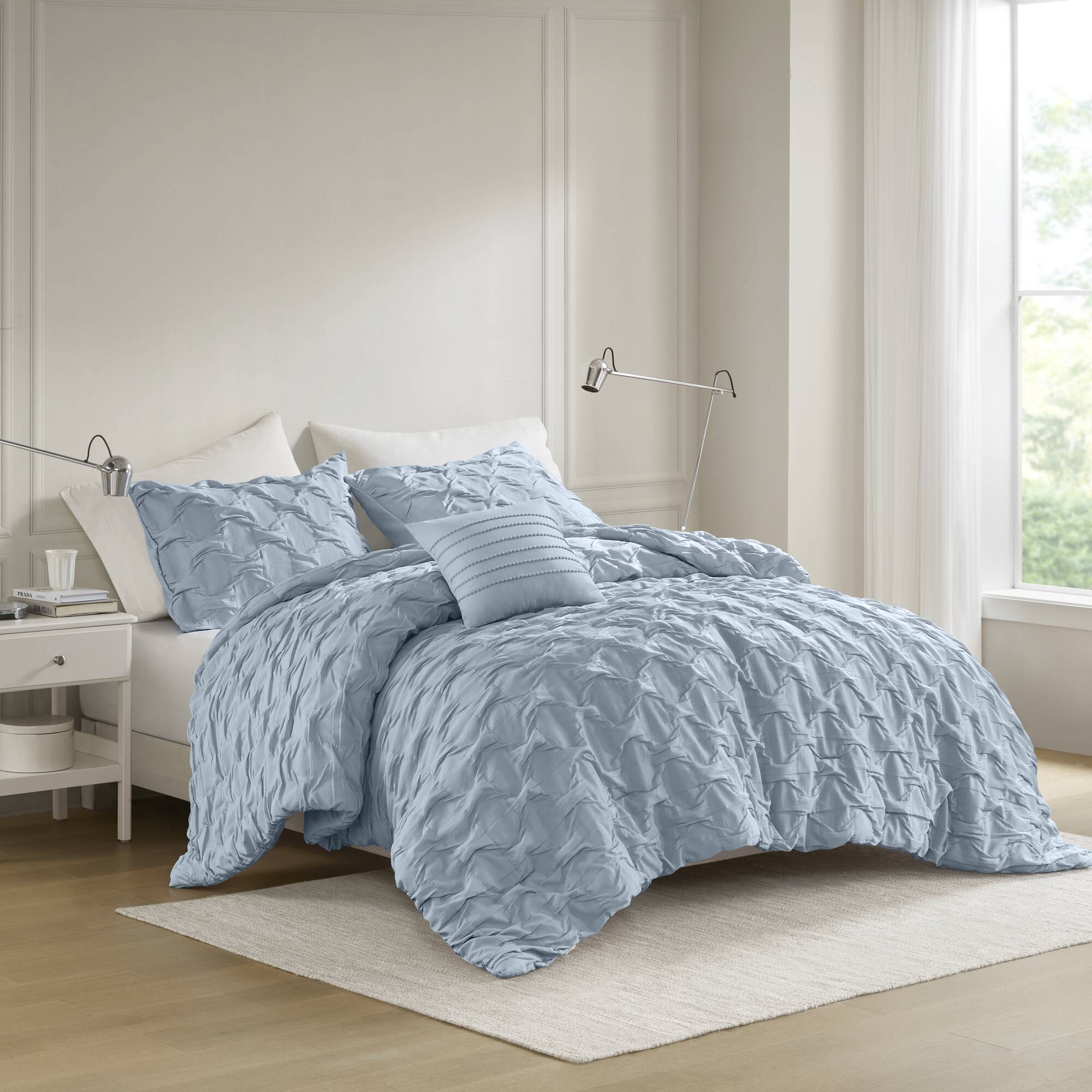 Transform your bedroom into a stylish sanctuary with a comforter set that pairs casual elegance and year-round comfort. Featuring a chic ruched ogee pleat pattern and crinkle-textured fabric, this set adds refined visual interest while remaining soft, breathable, and easy to care for.