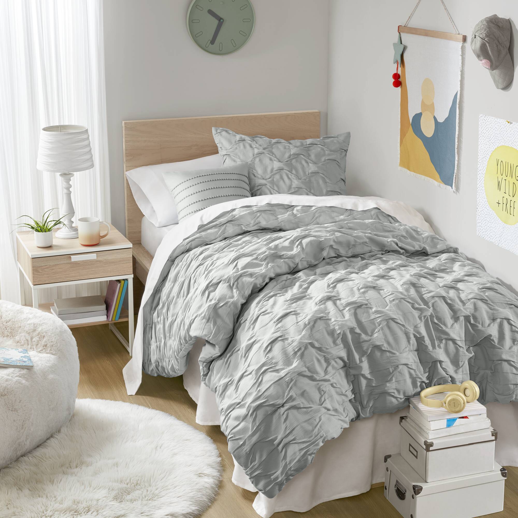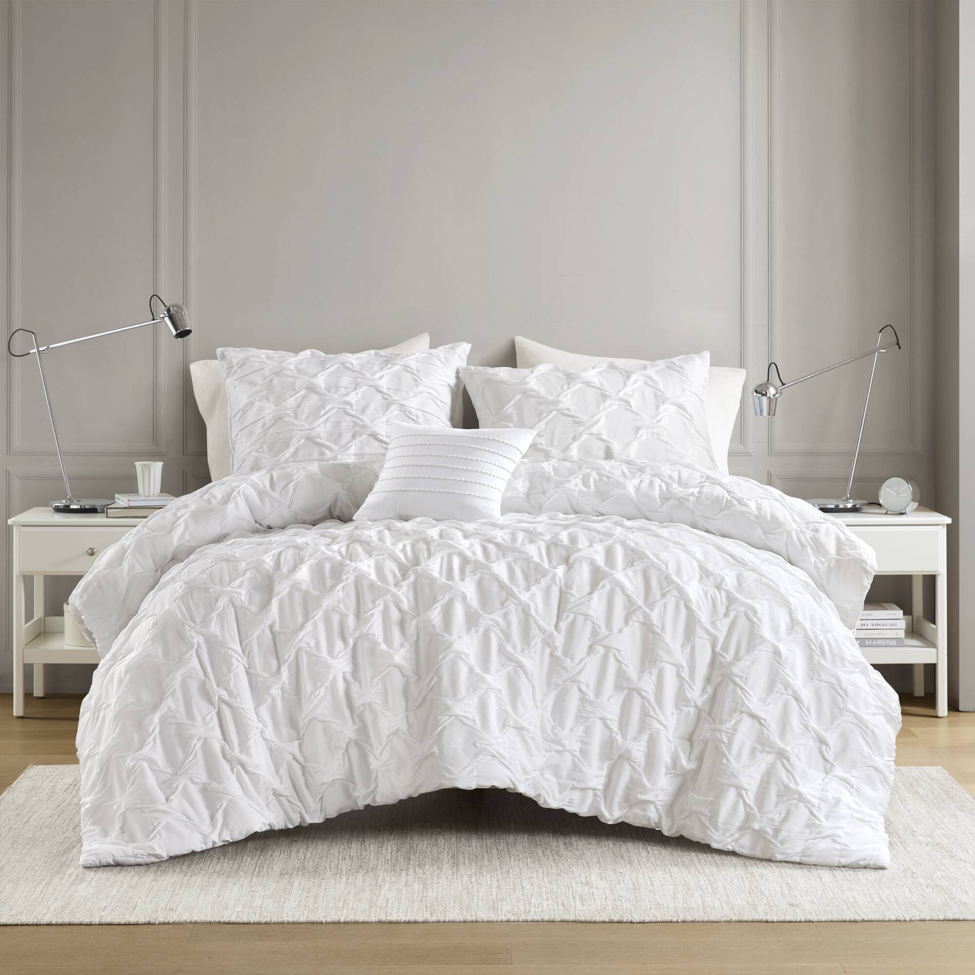 Transform your bedroom into a stylish sanctuary with a comforter set that pairs casual elegance and year-round comfort. Featuring a chic ruched ogee pleat pattern and crinkle-textured fabric, this set adds refined visual interest while remaining soft, breathable, and easy to care for.