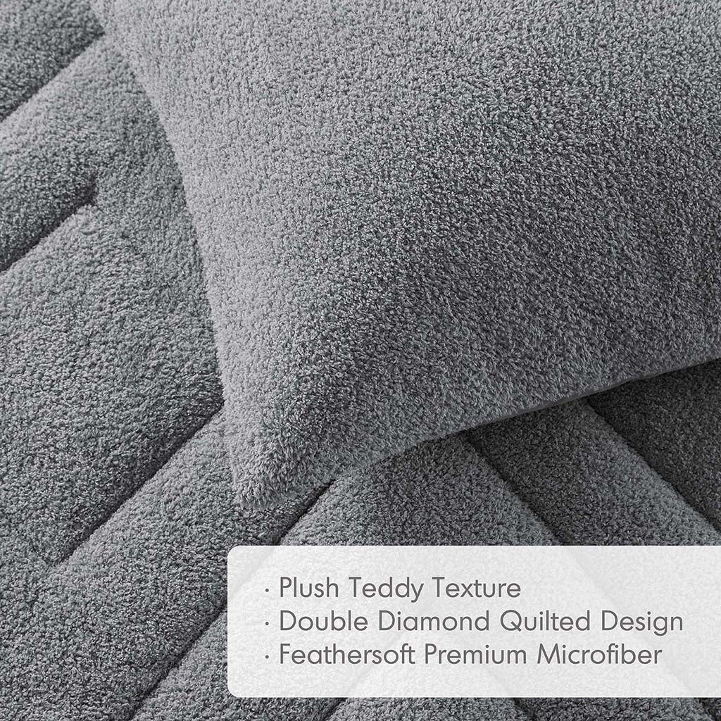 Wrap yourself in the cozy luxury of a plush teddy-textured comforter set, thoughtfully designed to blend timeless style with everyday comfort. The double diamond quilting adds subtle structure and visual interest, while the medium-weight microfiber reverse keeps warmth balanced for year-round use. Certified by Oeko-Tex, this set delivers softness that’s gentle on skin and made without harmful substances—perfect for restful nights and a polished bedroom look.