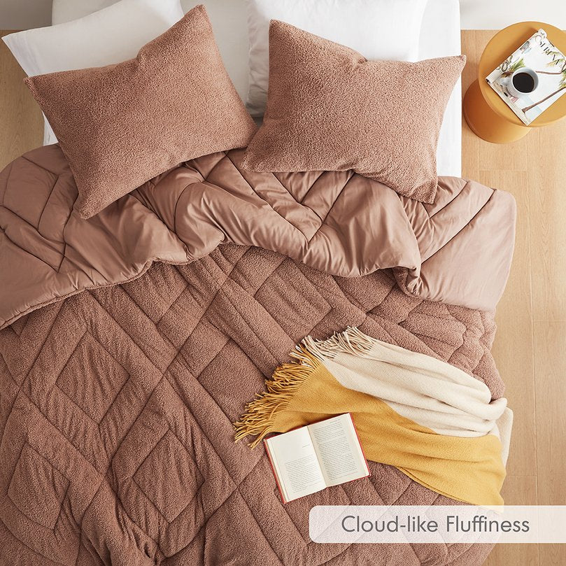 Wrap yourself in the cozy luxury of a plush teddy-textured comforter set, thoughtfully designed to blend timeless style with everyday comfort. The double diamond quilting adds subtle structure and visual interest, while the medium-weight microfiber reverse keeps warmth balanced for year-round use. Certified by Oeko-Tex, this set delivers softness that’s gentle on skin and made without harmful substances—perfect for restful nights and a polished bedroom look.