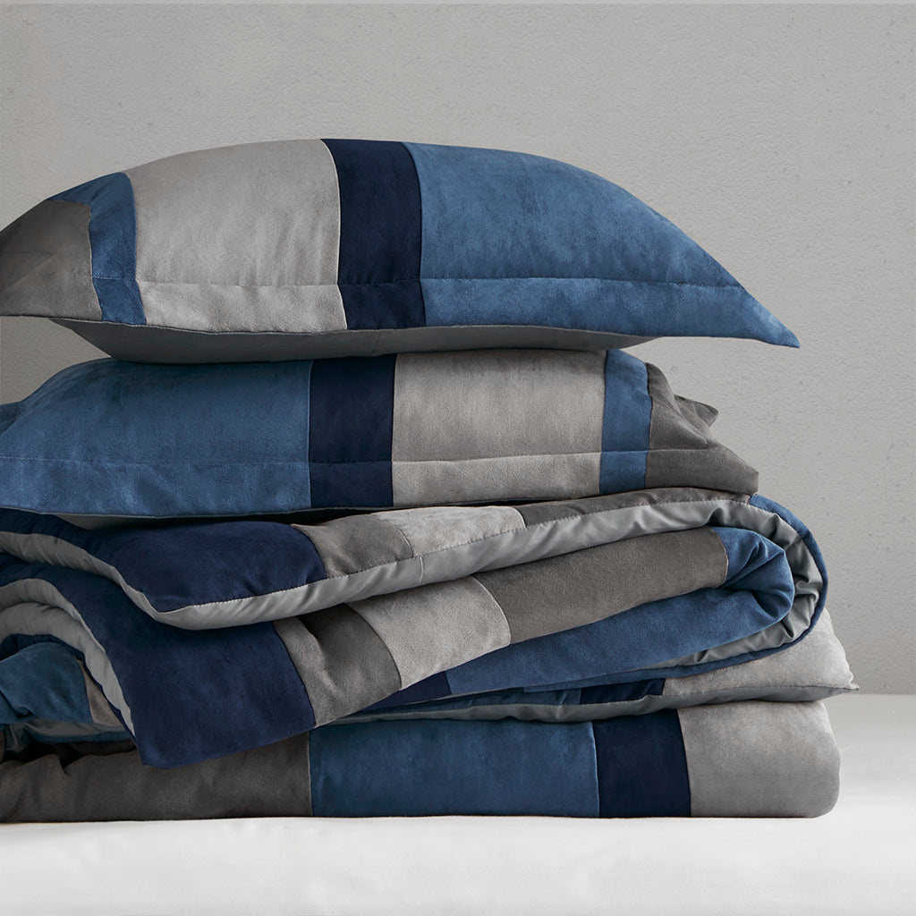 Indulge in a cozy, modern upgrade for your bedroom with this pieced faux suede comforter set. Designed to blend contemporary style with everyday comfort, the set features a soft, suede-like face and a smooth solid backing, delivering a plush feel and refined look that works across many décor styles. Lightweight yet warm, it’s constructed for year-round use and easy care.
