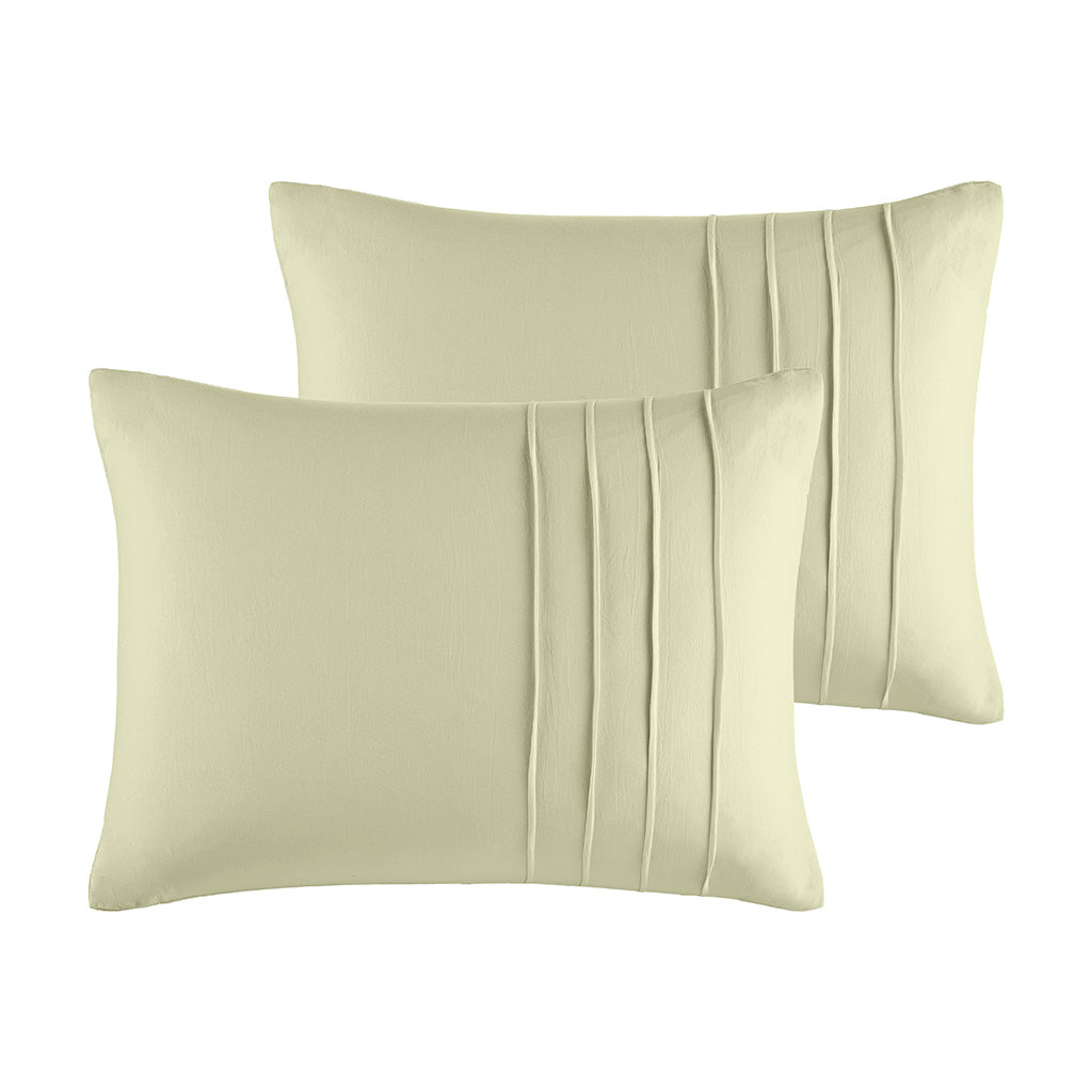Bring lasting comfort and understated elegance to your bedroom with this soft washed pinch-pleat comforter set. The refined grid pattern and lightweight loft make it versatile for year-round use — warm and cozy in cooler months, breathable and comfortable when temperatures rise. Its pre-washed microfiber finish enhances softness and texture while durable construction and easy-care materials keep your bedding looking fresh night after night.