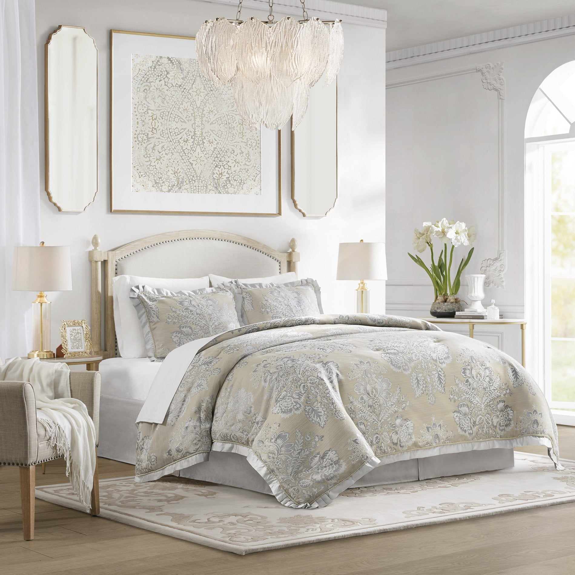 Bring timeless elegance to your bedroom with a refined comforter set inspired by 18th‑century Neoclassical design. This four‑piece ensemble combines harmonious motifs, sophisticated texture contrast, and subtle metallic accents to create a serene yet luxurious look that complements both traditional and transitional interiors.