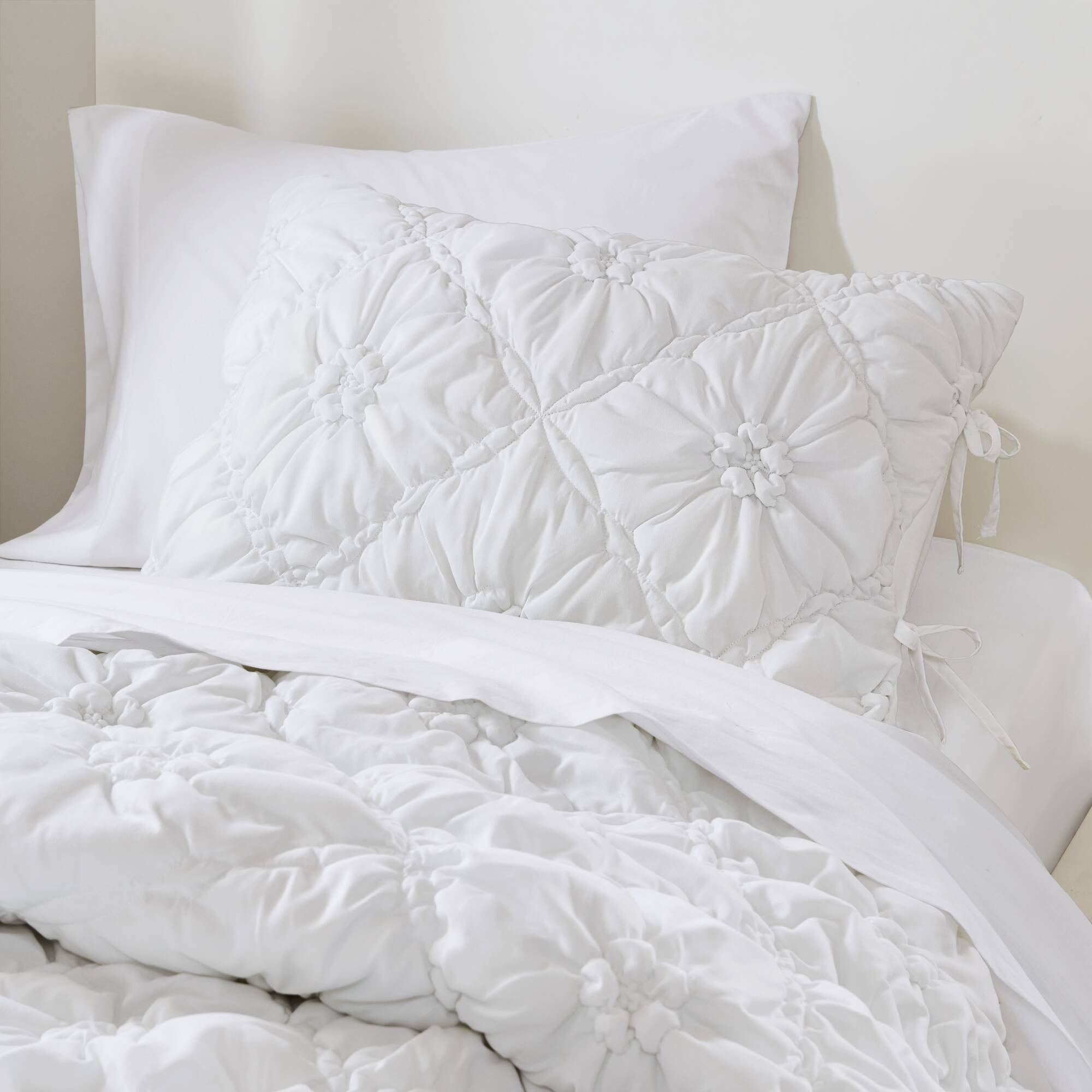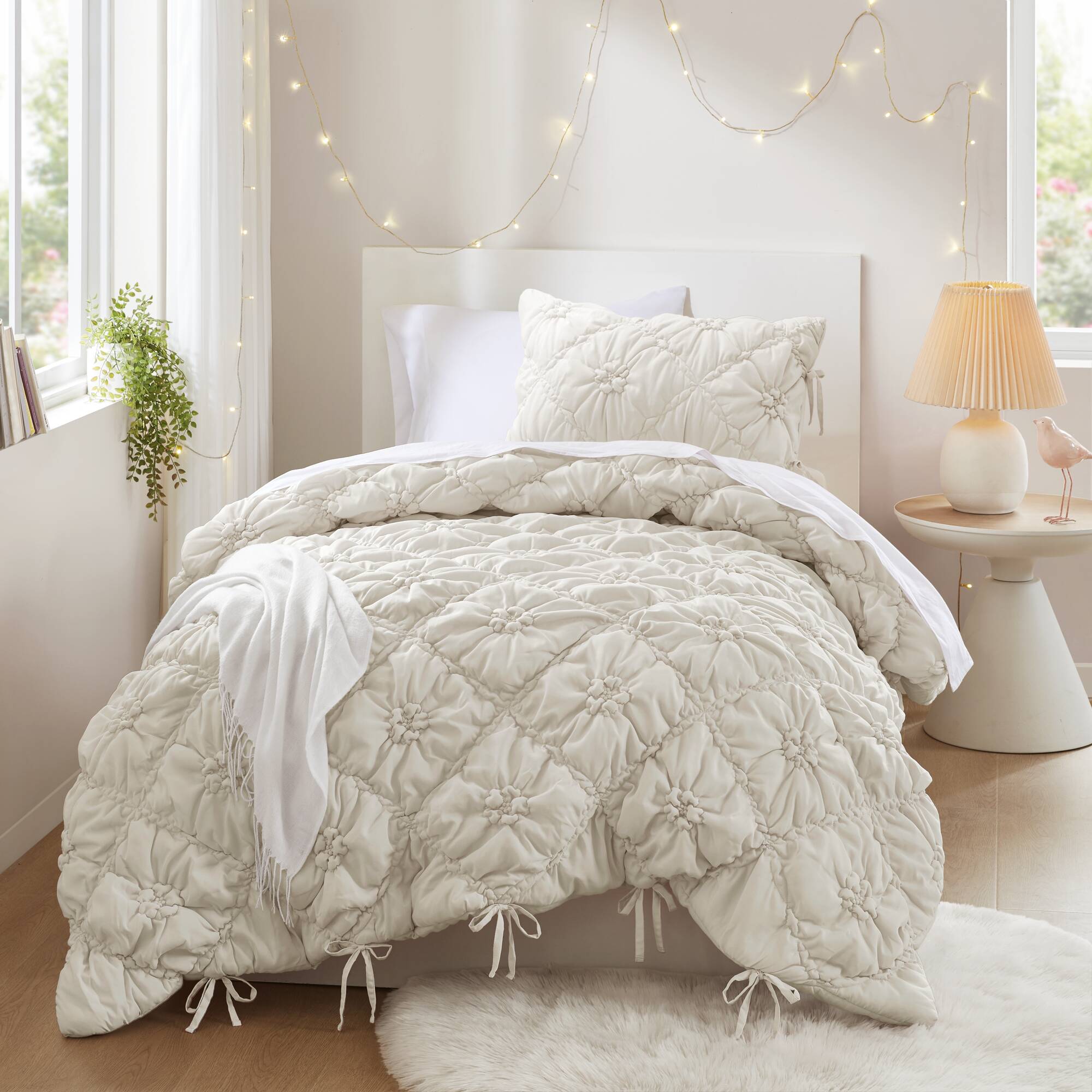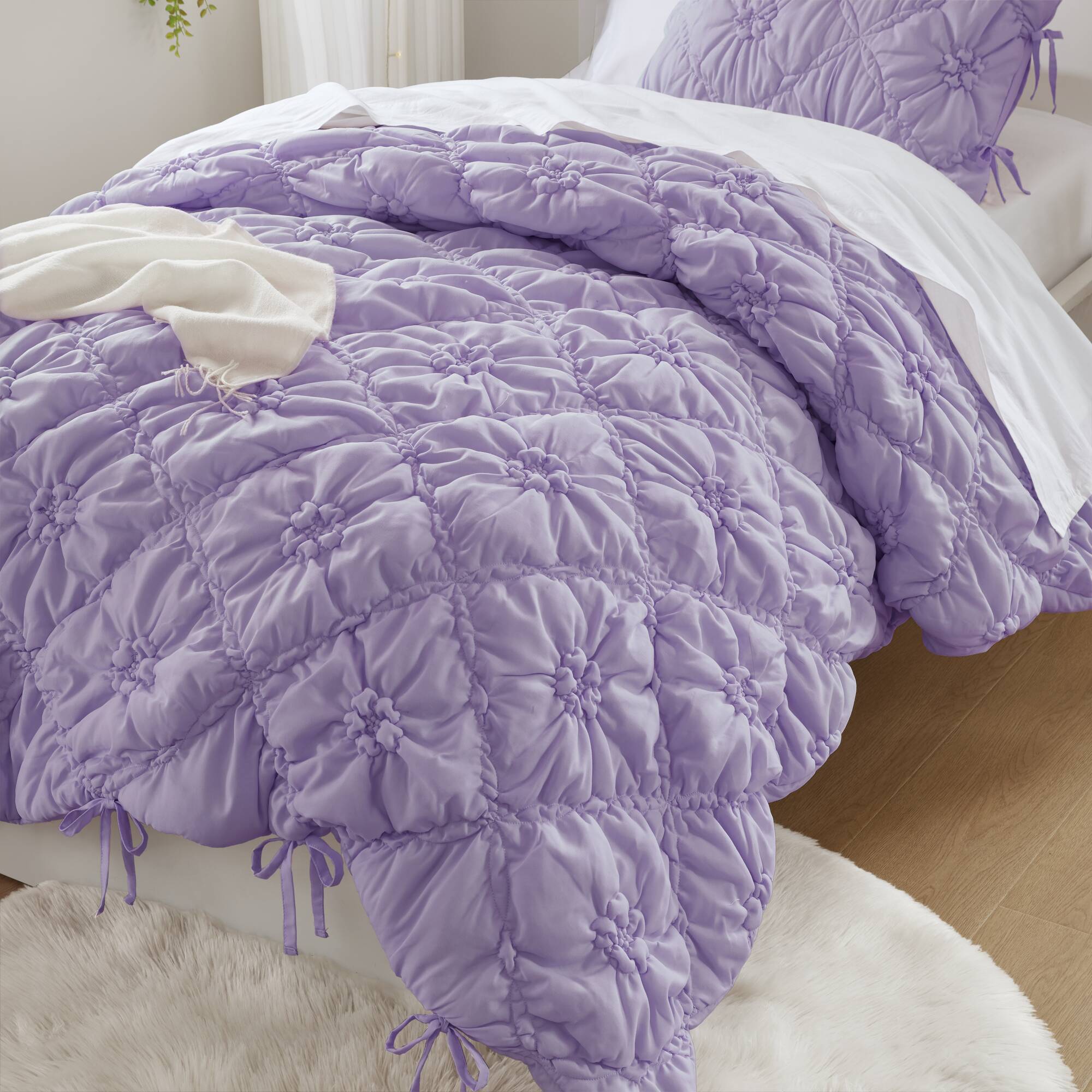 - Design & Aesthetic: Floral puffy quilting with delicate bow-tie accents and elastic ruching creates a romantic, textured appearance that complements cottage, farmhouse, and vintage-inspired décor.