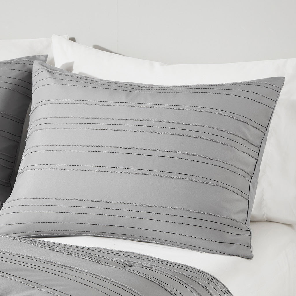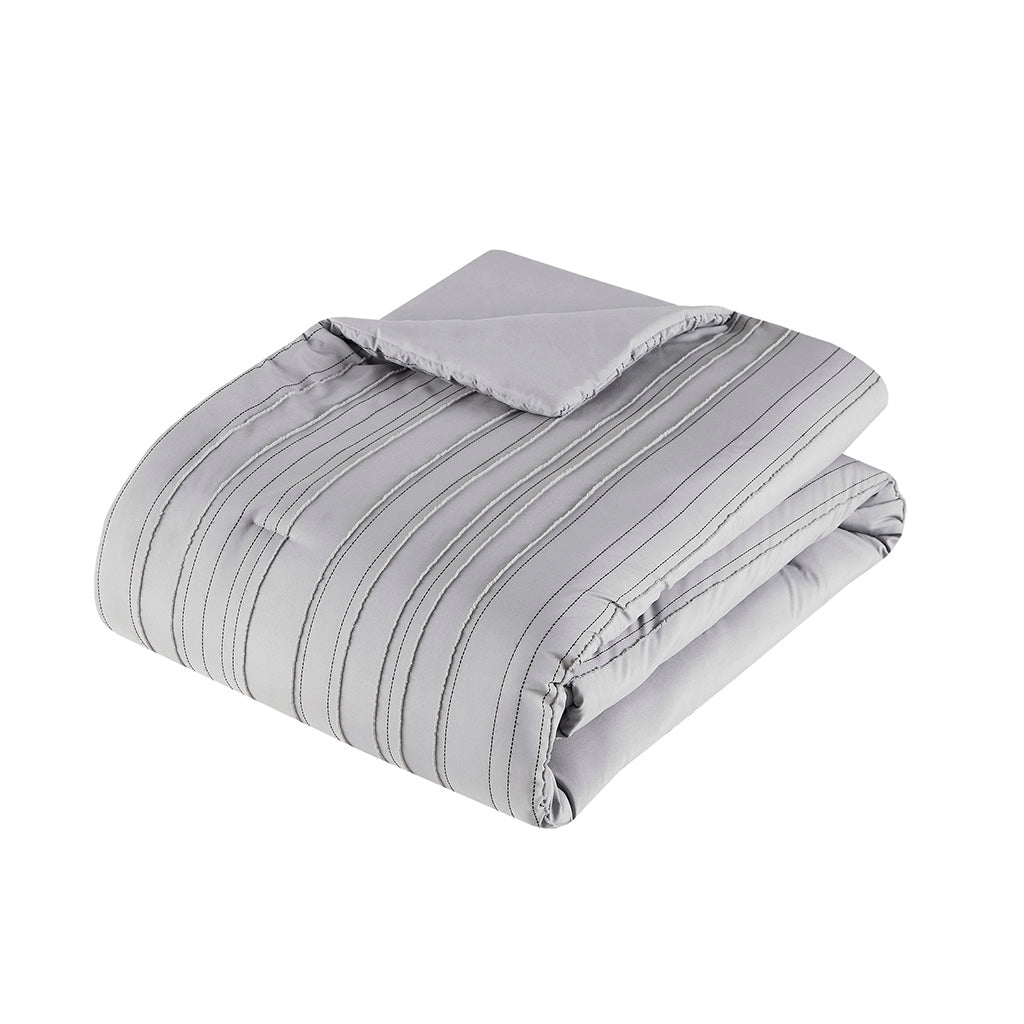 Give your bedroom a modern, casual refresh with this clip jacquard comforter set. Featuring a woven striped pattern and textured clip jacquard design, the set brings subtle depth and contemporary style while providing comfortable, hypoallergenic warmth. A coordinating square decorative pillow ties the look together for a polished, ready-made bedding ensemble.