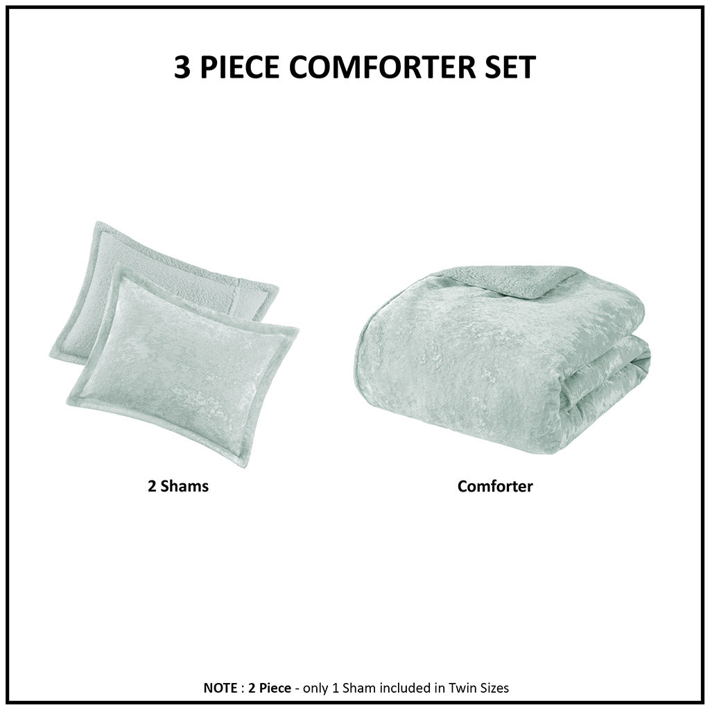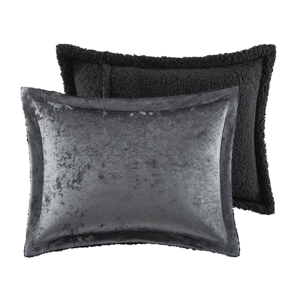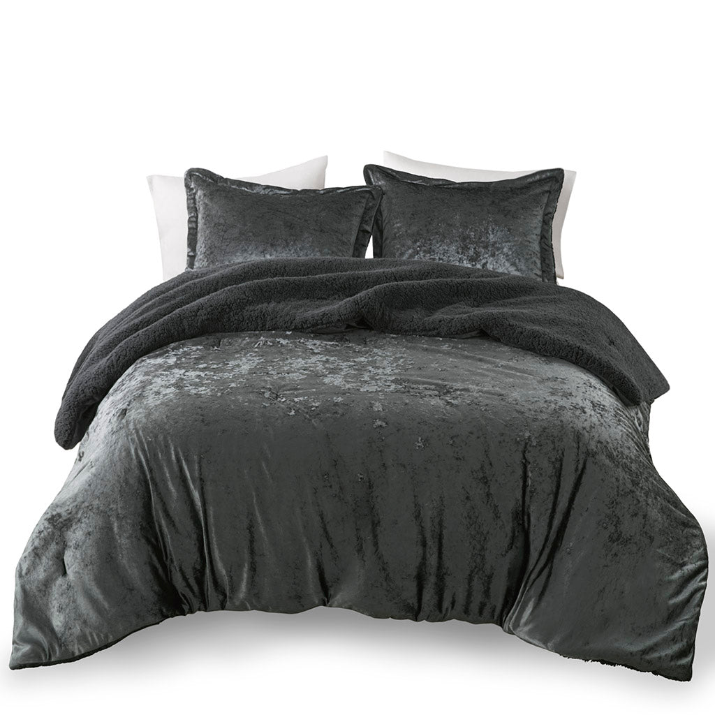 Wrap your bedroom in plush comfort and modern elegance with this reversible crushed velvet and sherpa comforter set. Designed for luxurious softness and practical everyday use, it combines a sumptuous velvet face with a cozy sherpa reverse to create a versatile look that’s warm, inviting, and easy to maintain.