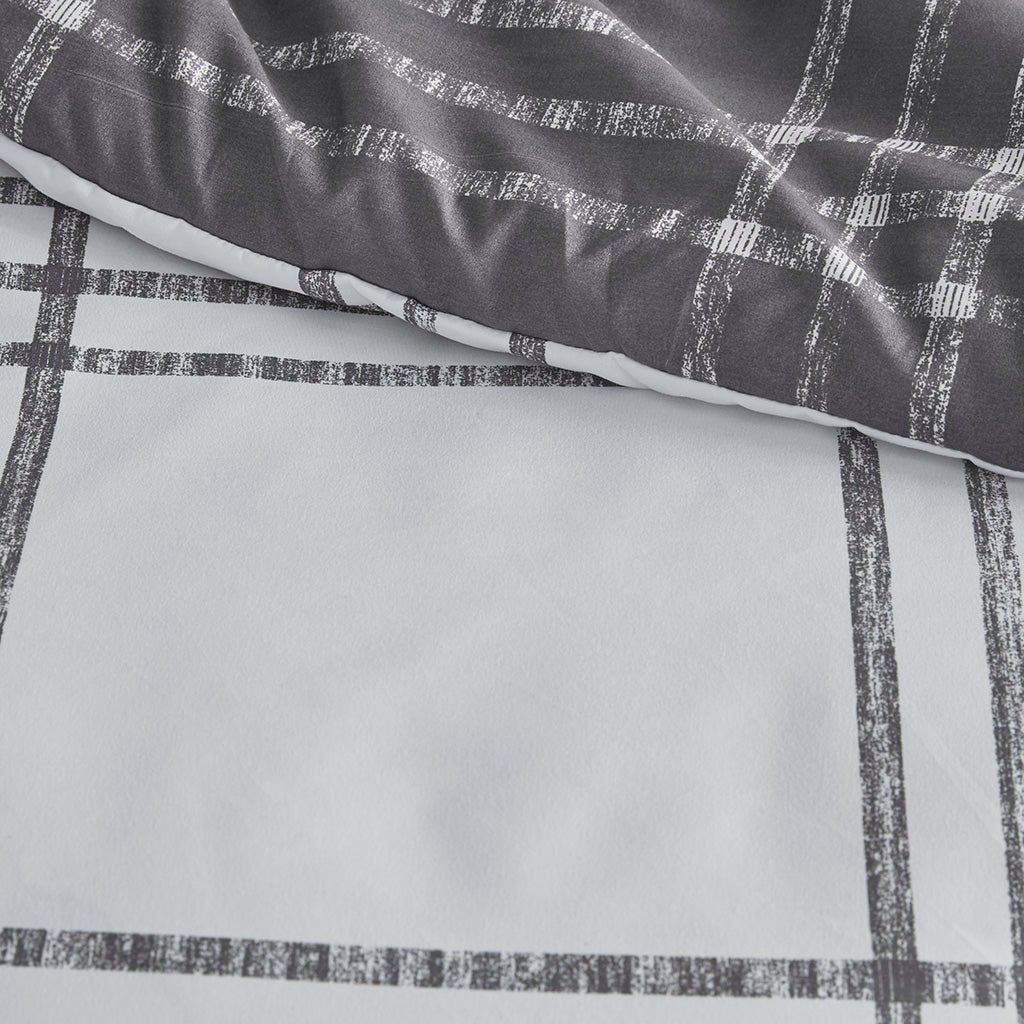 - Reversible design: White and gray windowpane plaid on one side with the color scheme flipped on the reverse for two contemporary looks.